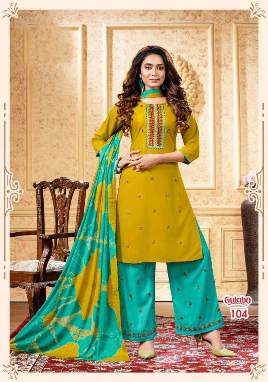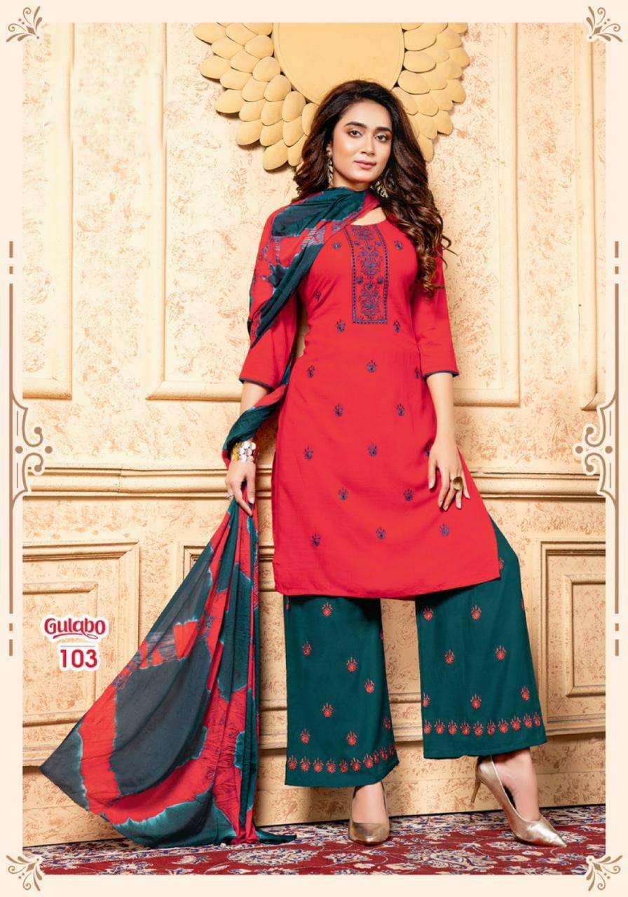 GULABO BY BEAUTY QUEEN HEAVY RAYON READYMADE SUIT CATALOG WHOLESALER BEST RATE