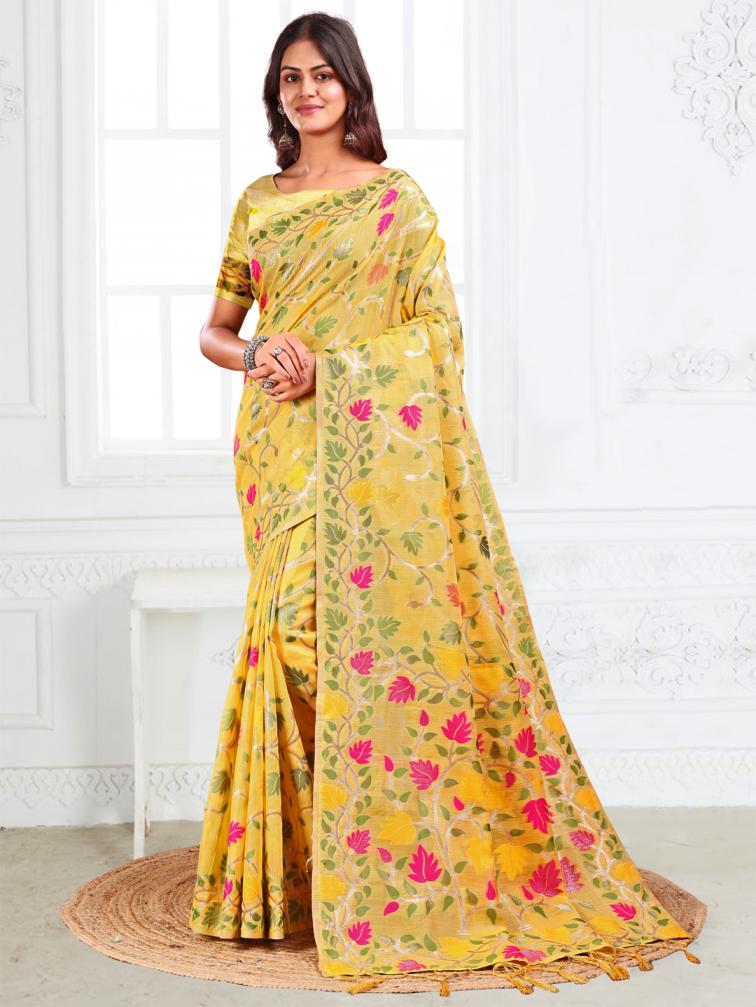 GULBAHAR by Astita fancy designer linen Cotton fabric saree wholesale with latkan
