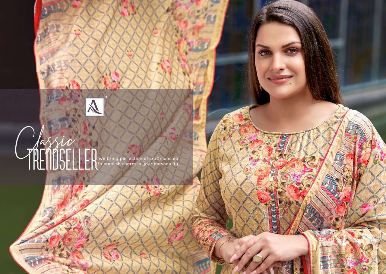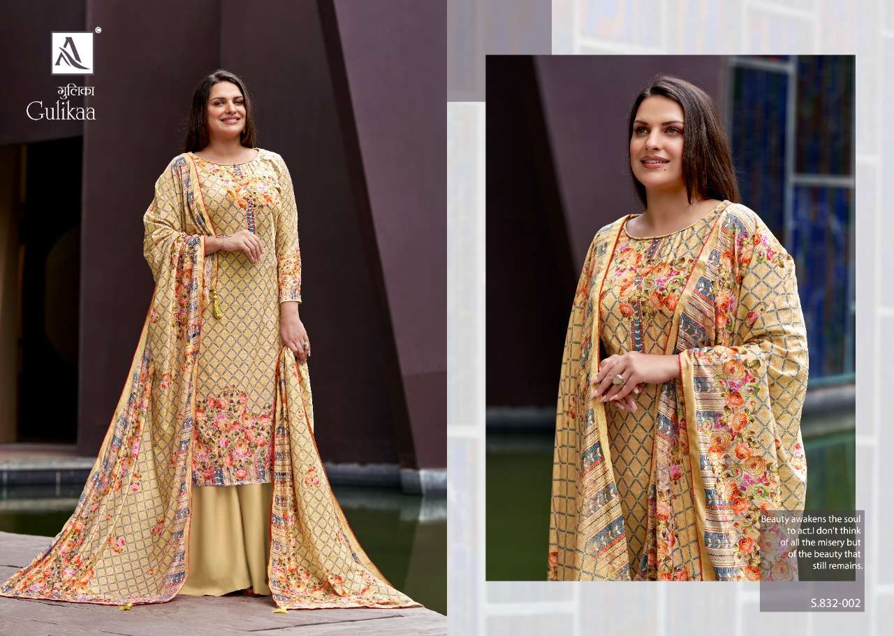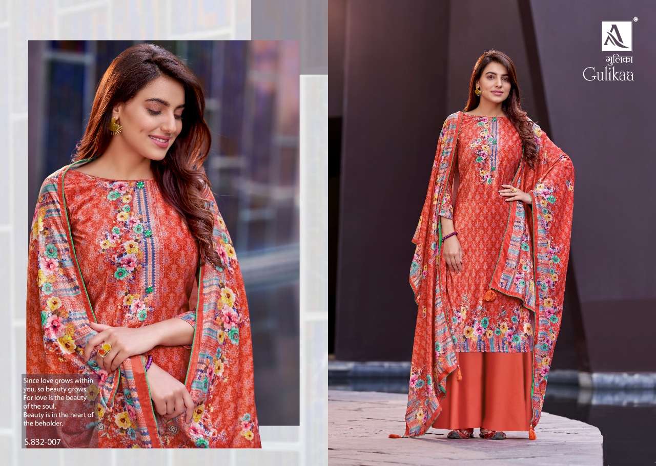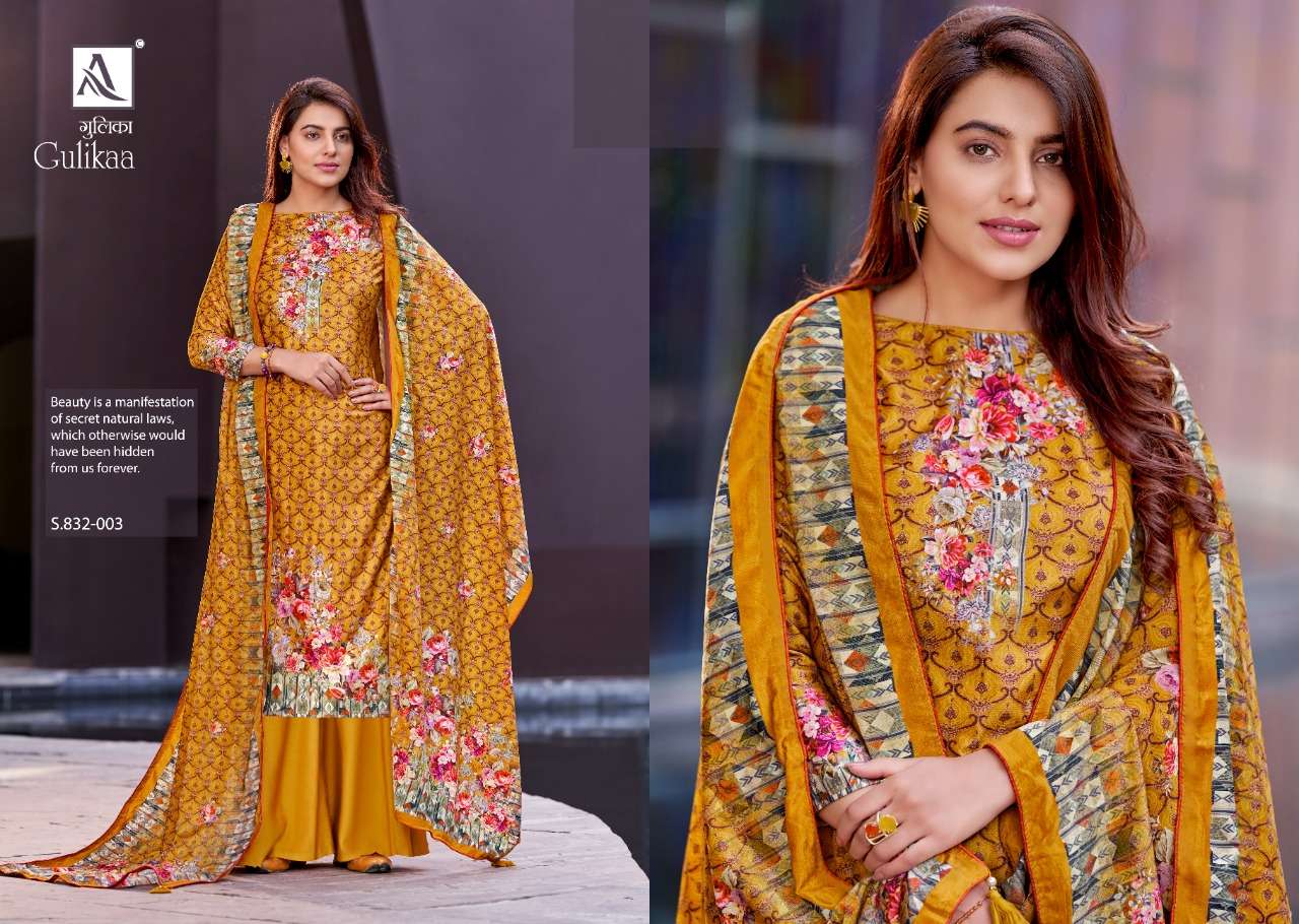 â¥YOUR FAVOURITE BRAND⥠Alok Suit - Make in India Launches its New Designer Suits : GULIKAA Fabric Details Top: Pure Viscose Velvet Digital Print with Swarovski Diamond Bottom: Pure Wool Pashmina Solid Dupatta: Pure Viscose Velvet Digital Box Pallu Print Dup with Four Side Piping Lace RATE: 1149 + 5%GST 8 Pcs |