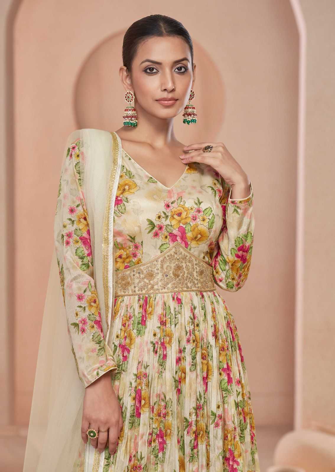 gulkayra designer sajni elegance position print fully stitch 3pcs flair gown set