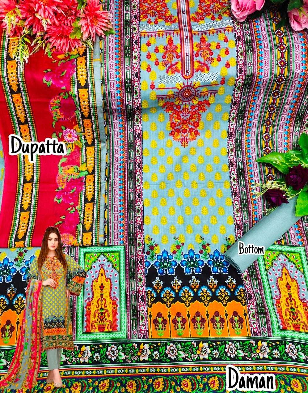 Pure lawn collection with mal mal duppata 👗Top : Pure Lawn (cut 2/35 approx ) 👖Bottom : pure cotten (cut approx 2.00mtr) 💥Dupatta: Pure Cotton Mal Mal (cut 2.25 mtr) PRICE 420 READY STOCK🔴 |