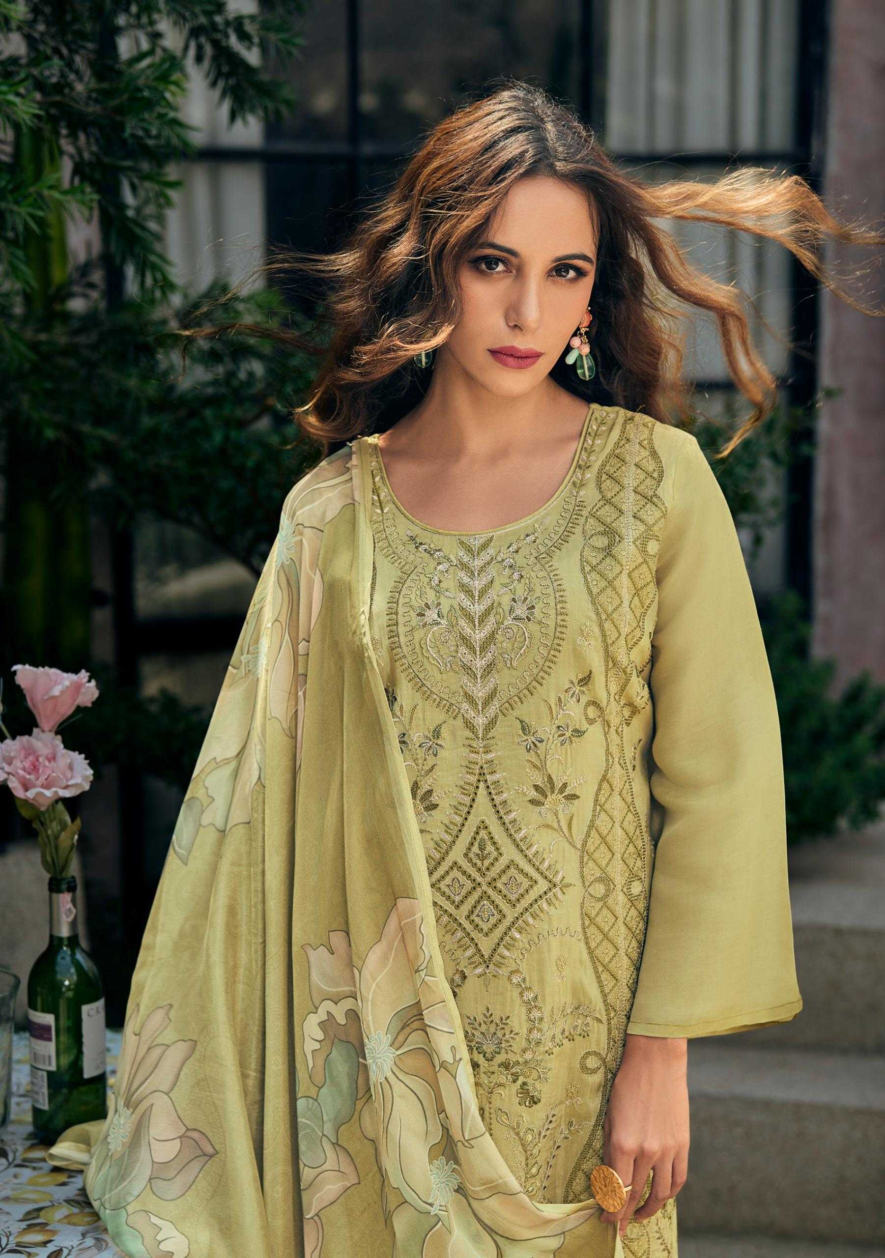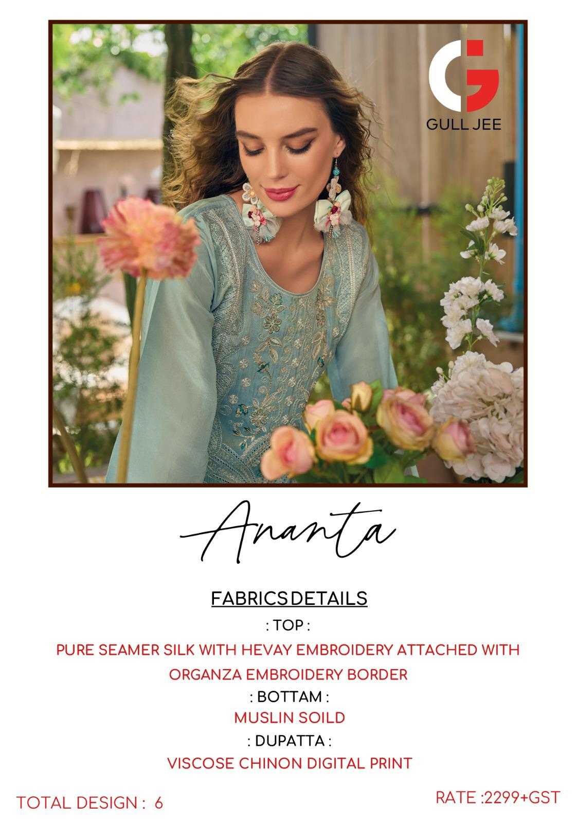 GULL JEE presents our new catlouge ANANTA Top - Pure Seamer silk with Hevay embroidery attached with organza border Bot- viscose muslin solid SIK Dup -viscose chinon digital print *Rate - 2299+Gst Gull Jee a product by Deepsy Suits |