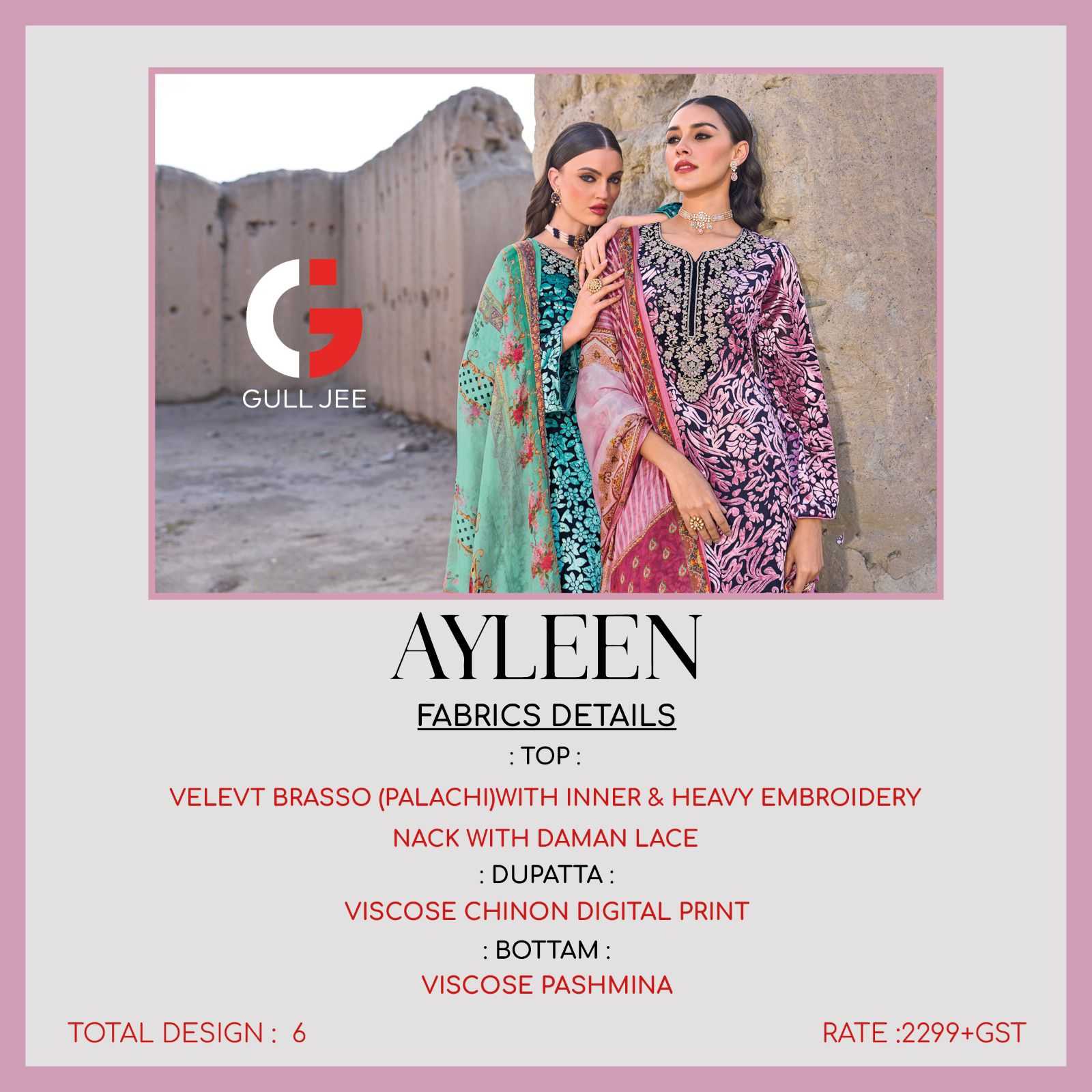 GULL JEE presents our new catlouge AYLEEN Top -Velevt Brasso (palachi ) with inner & heavy nack line with Daman border Bot- Viscose pasmina Dup - Viscose Chinon digital print *Rate - 2299+Gst Gull Jee a product by Deepsy Suits |
