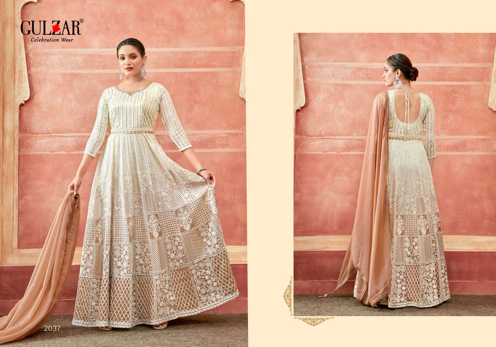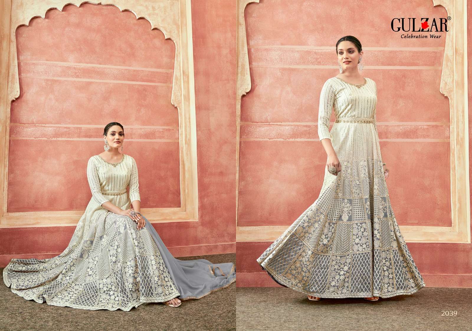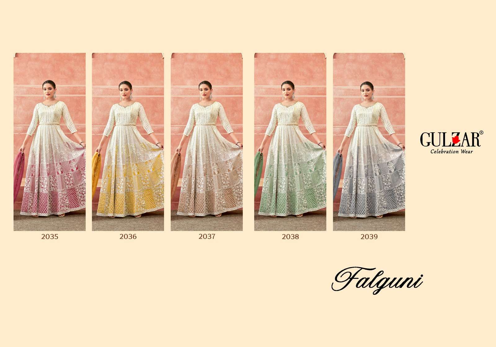 gulzar falguni 2035-2039 readymade digital print designer gown with organza dupatta