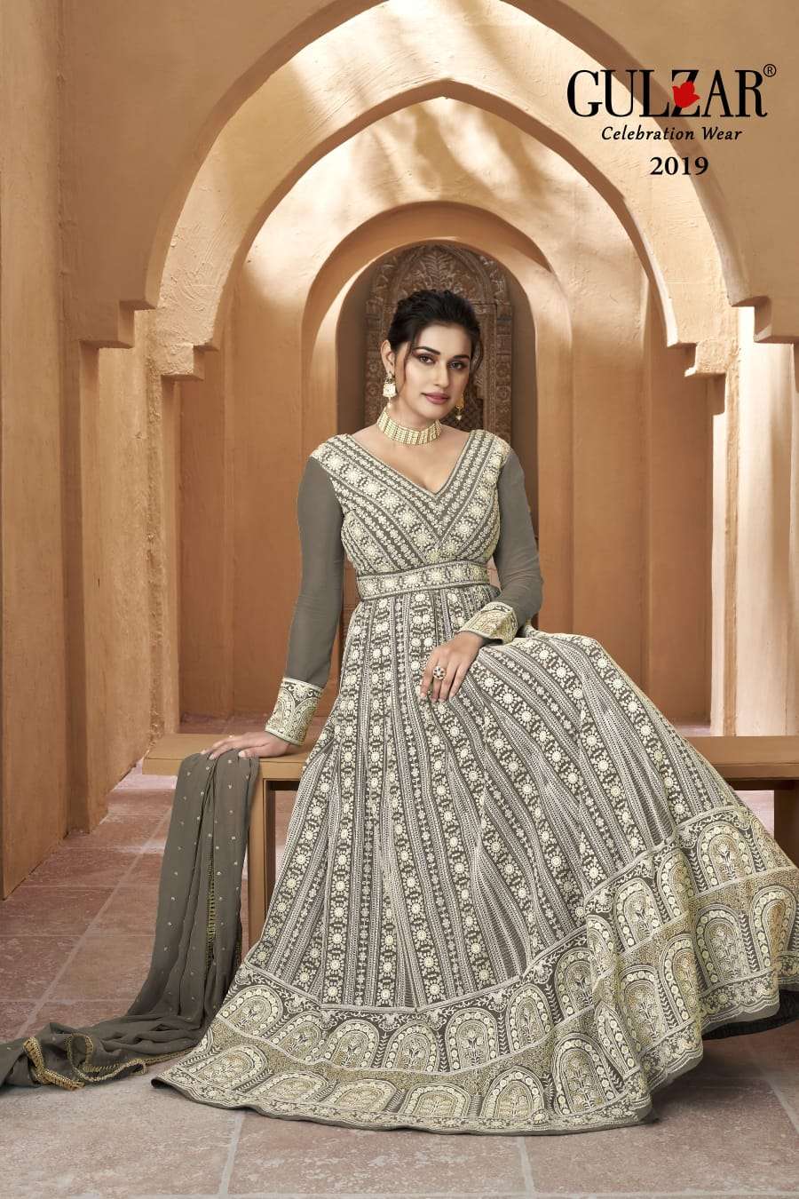 gulzar presents resham readymade designer lucknowi anarkali suit