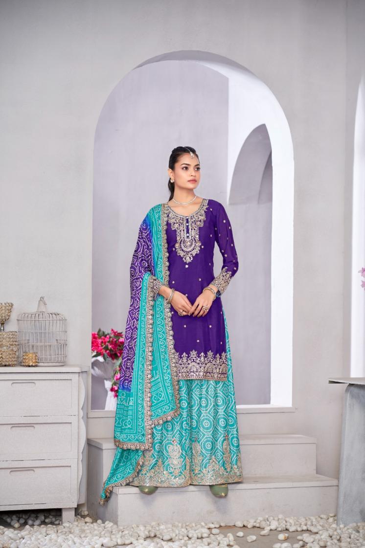 gulzar suroor chinon embroidery readymade party wear plazzo suits