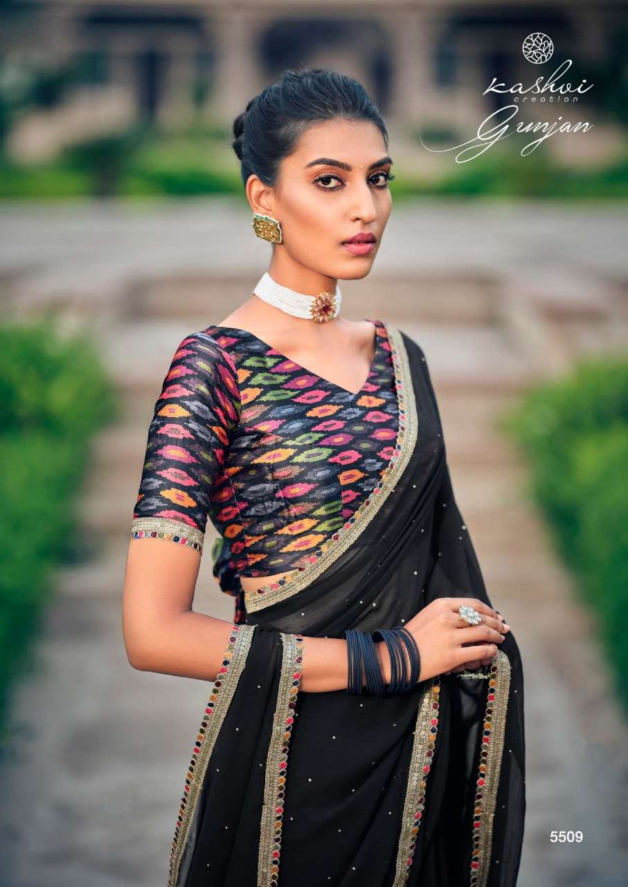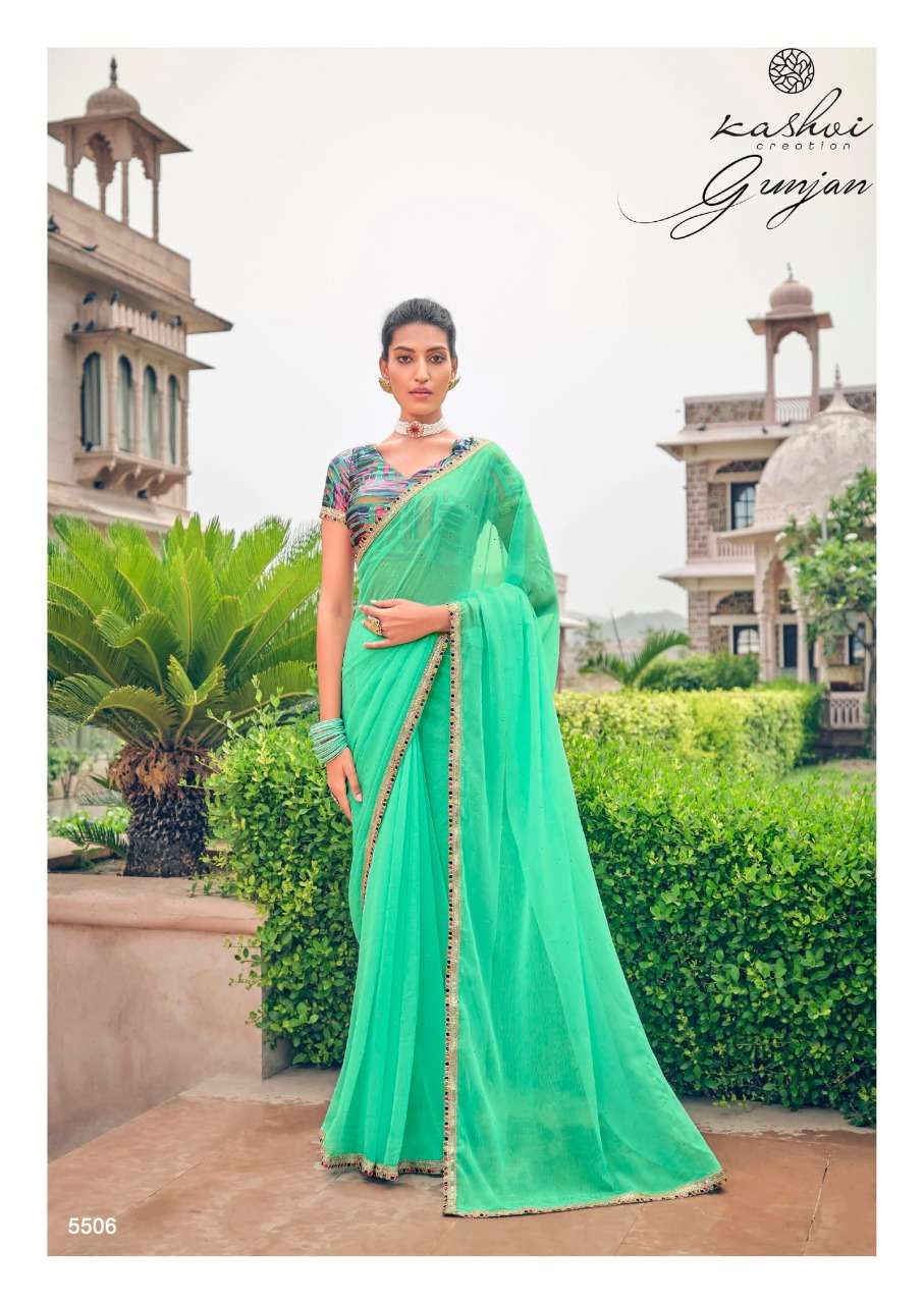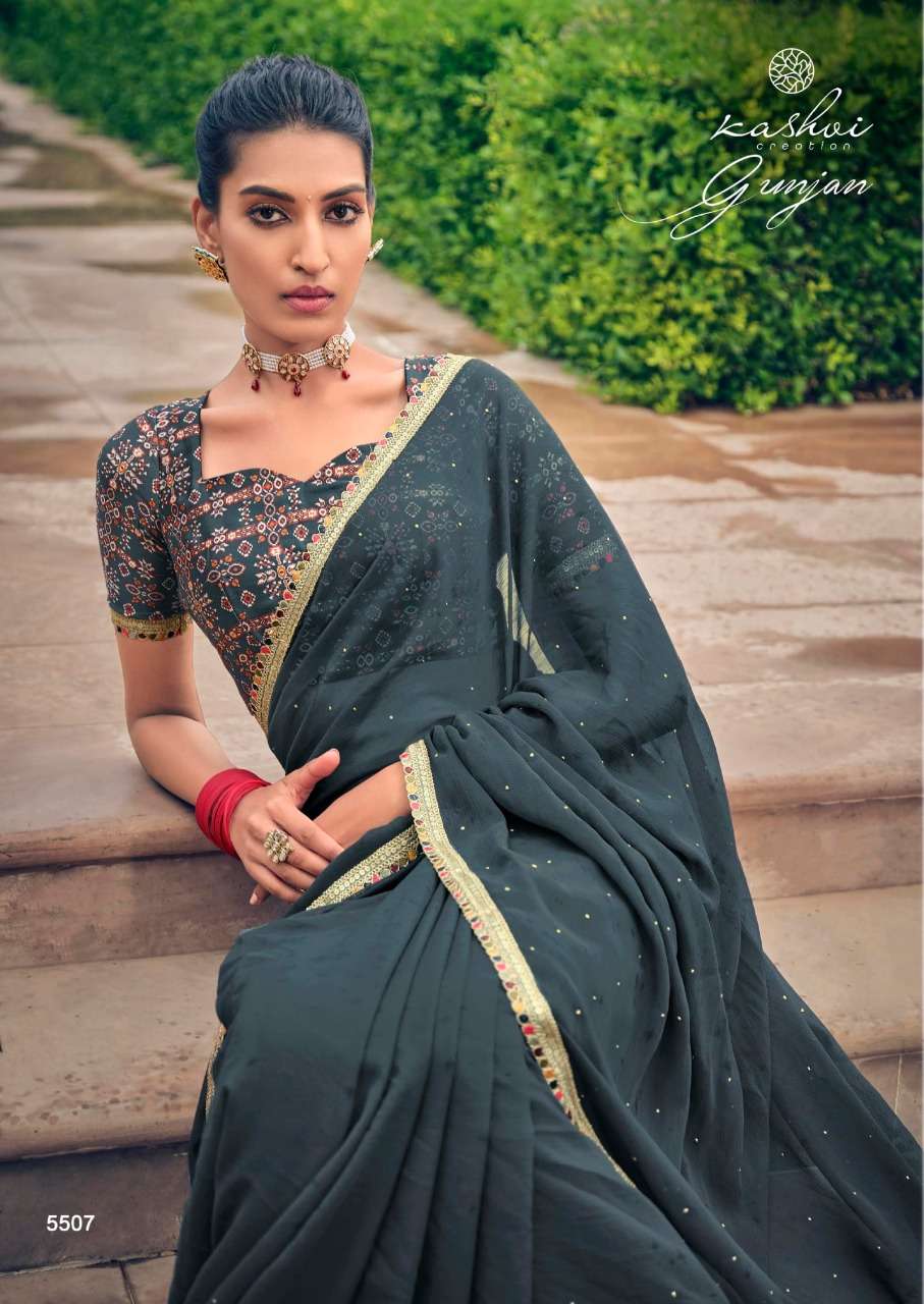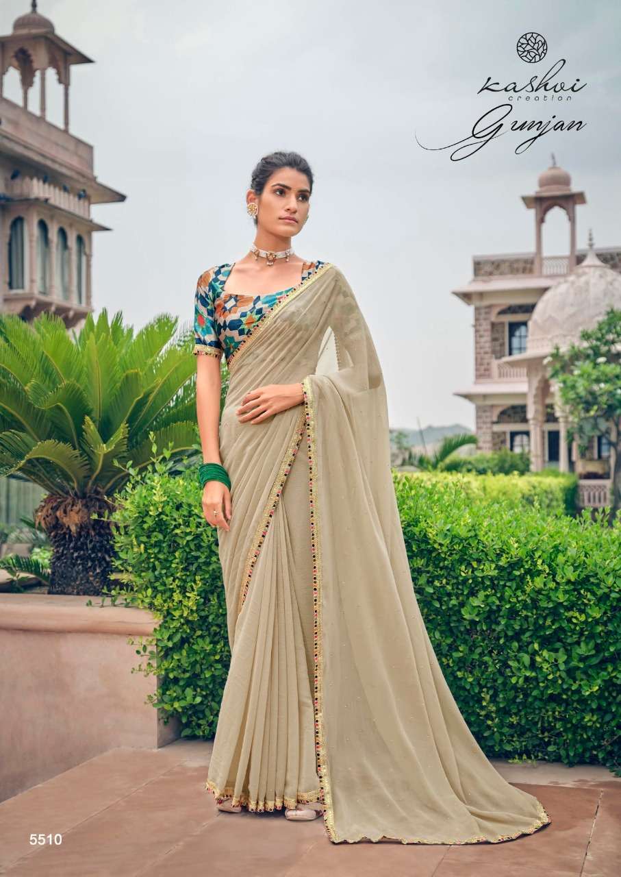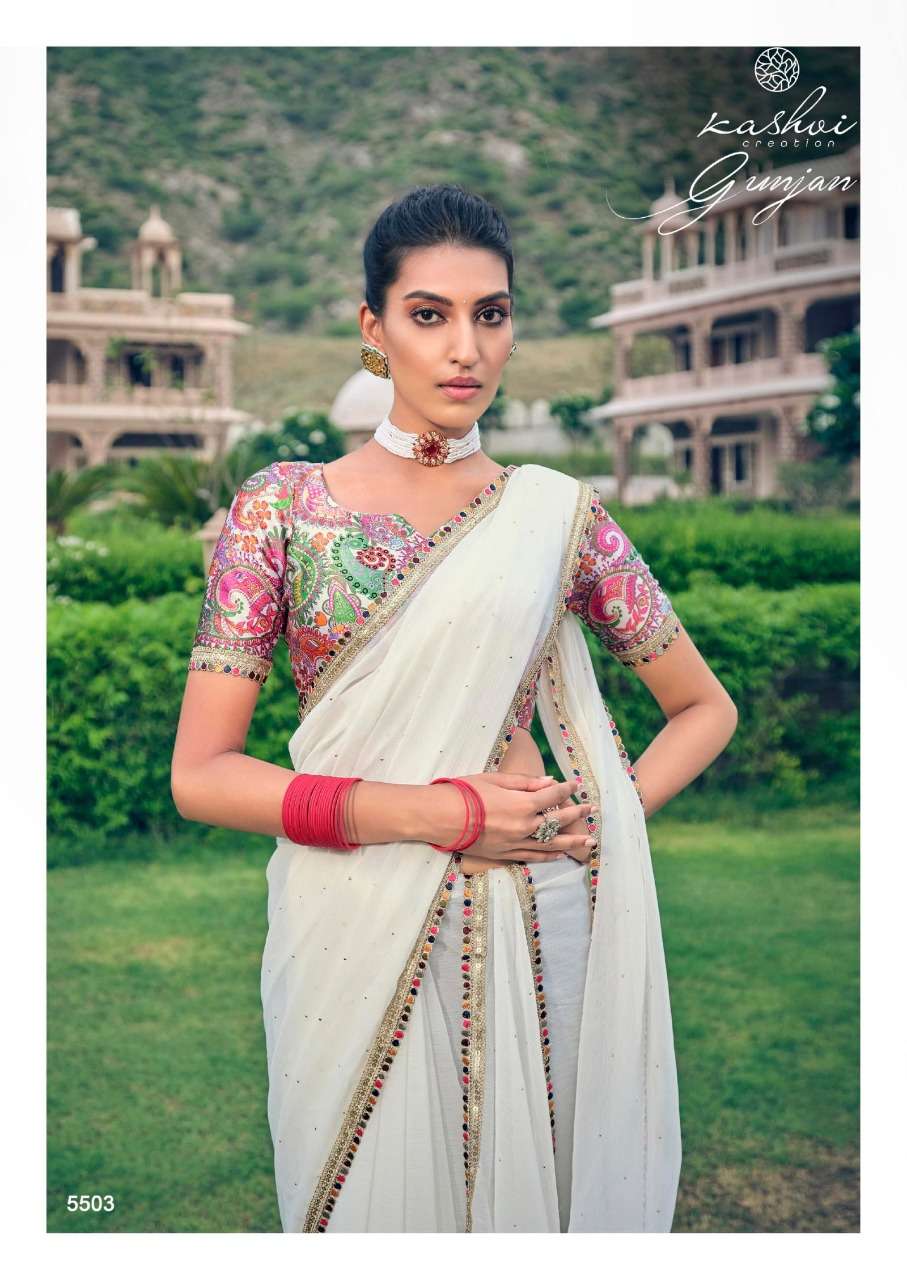 gunjan by kashvi chiffon printed saree with diamond