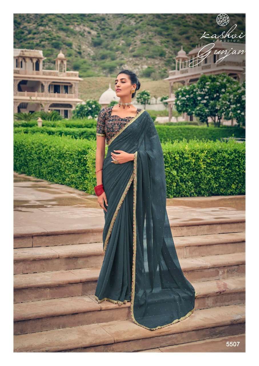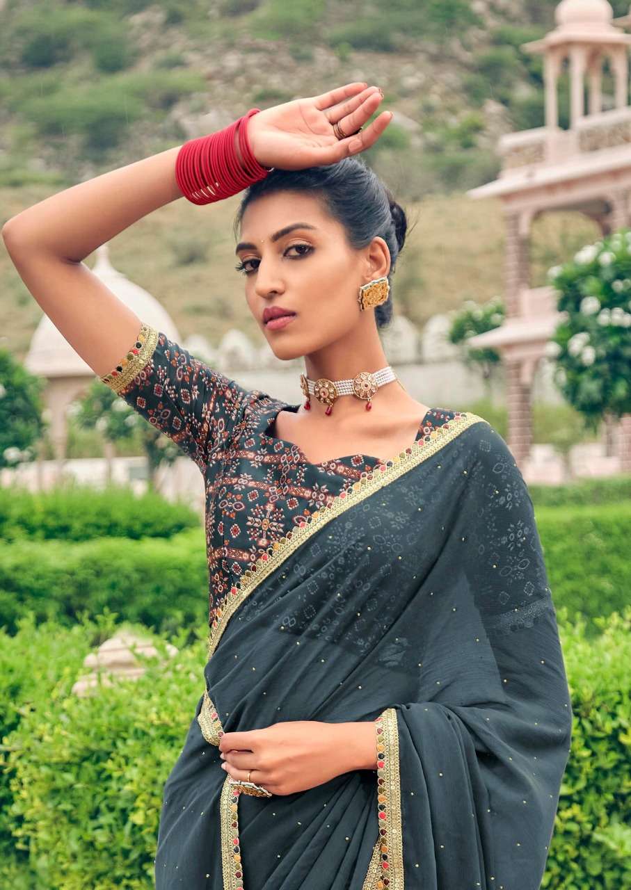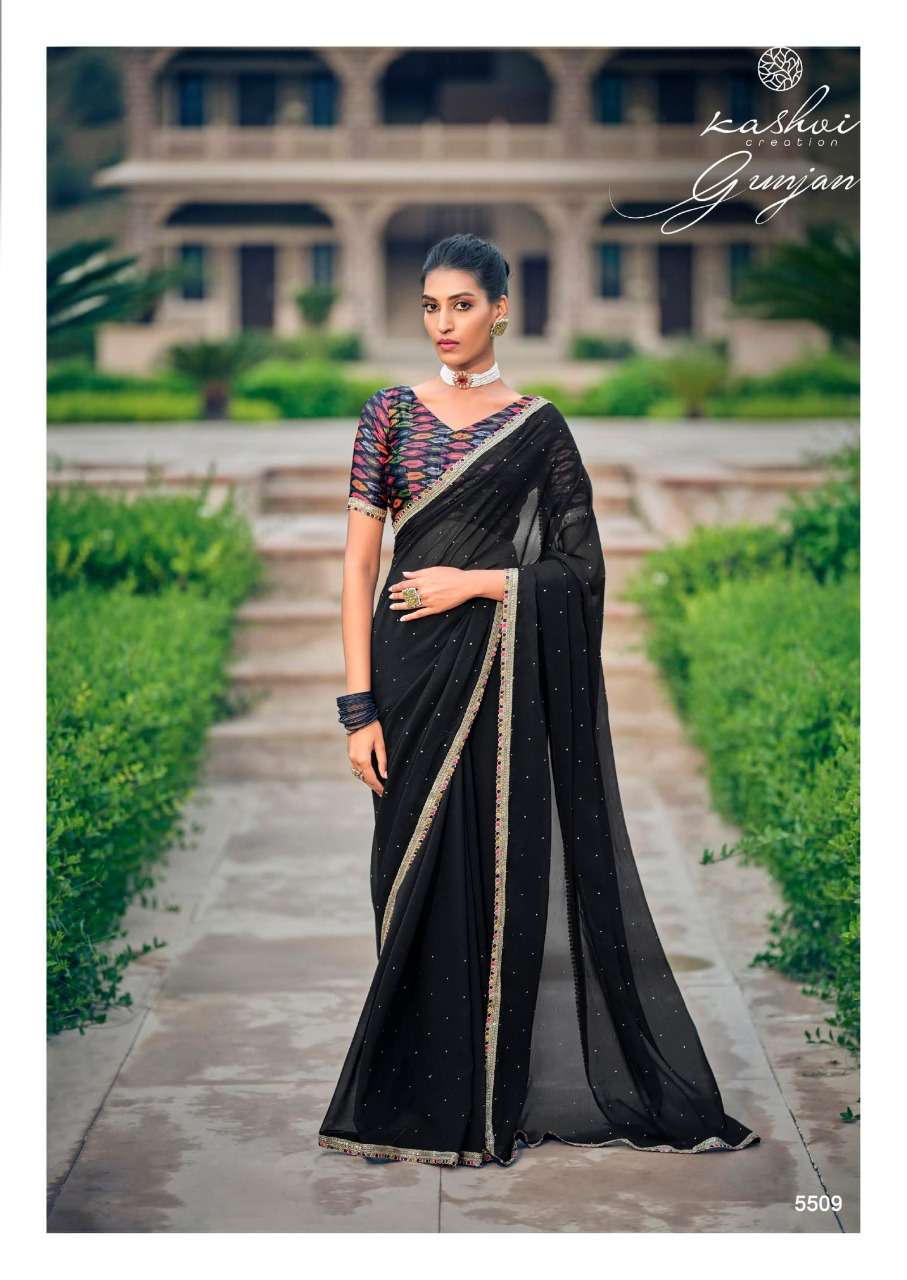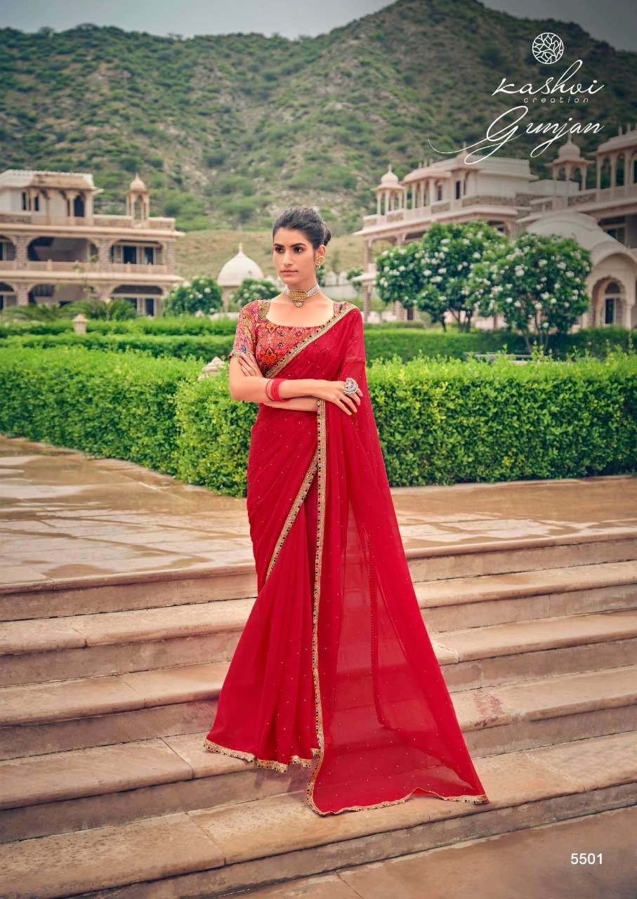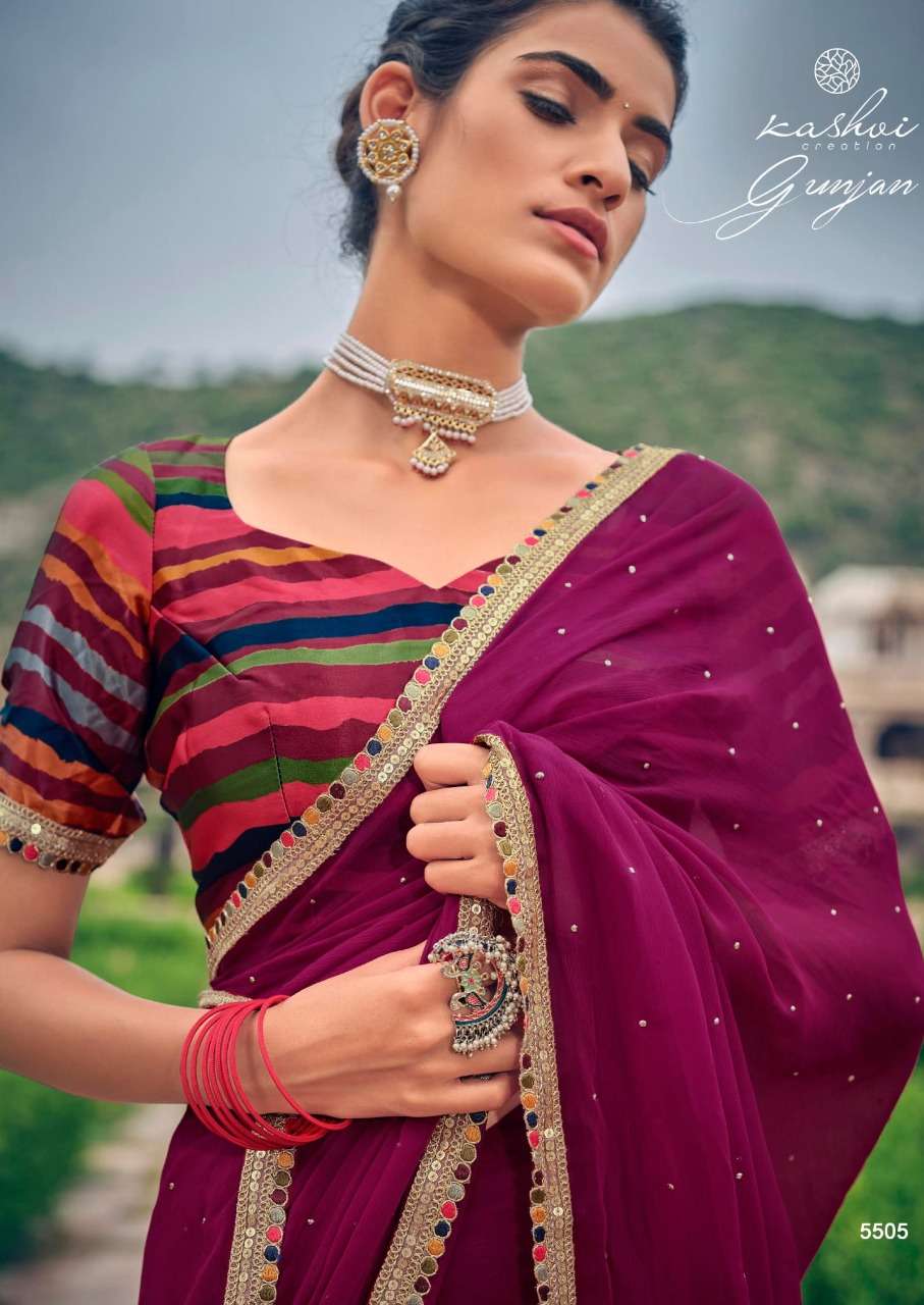 gunjan by kashvi chiffon printed saree with diamond