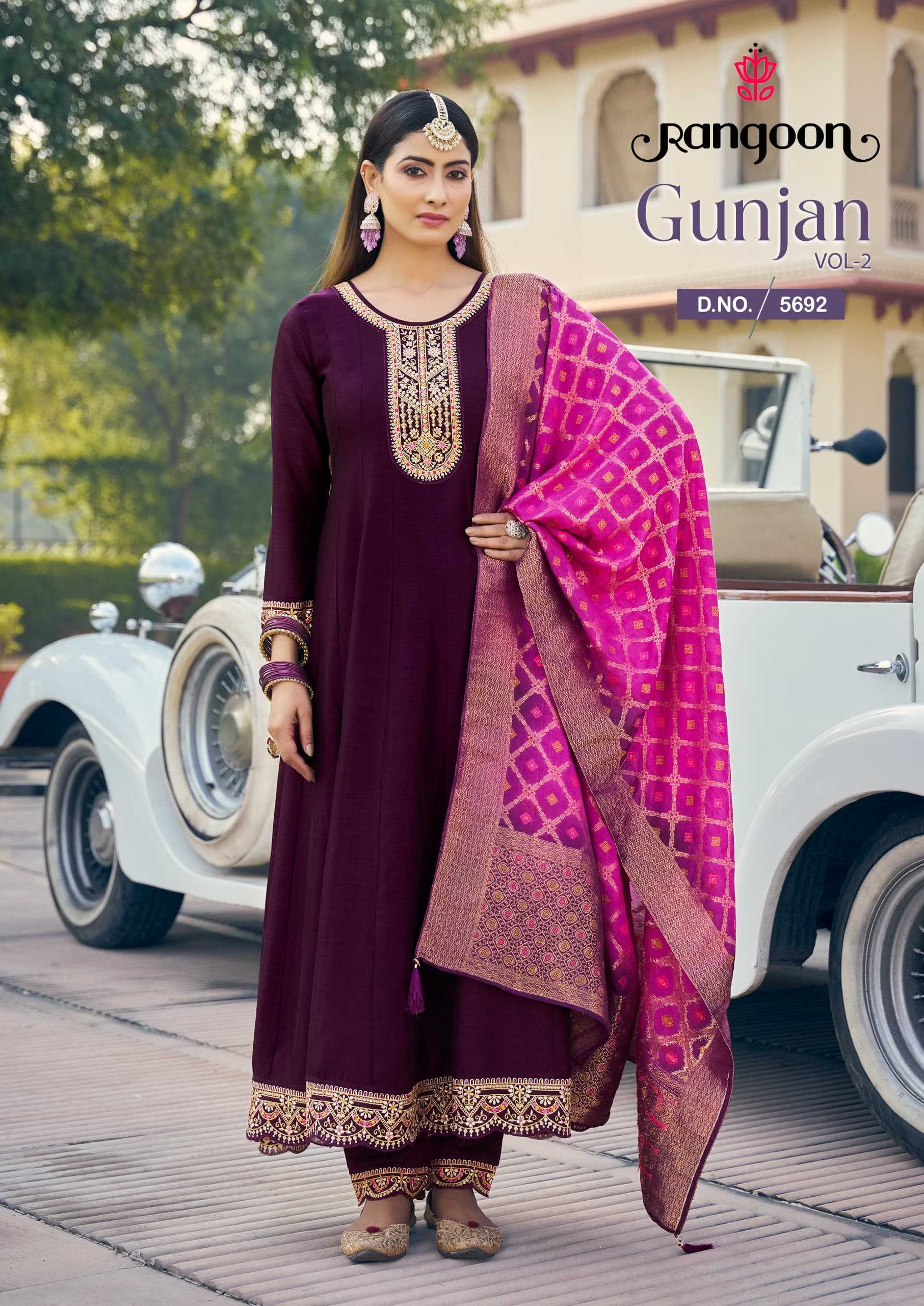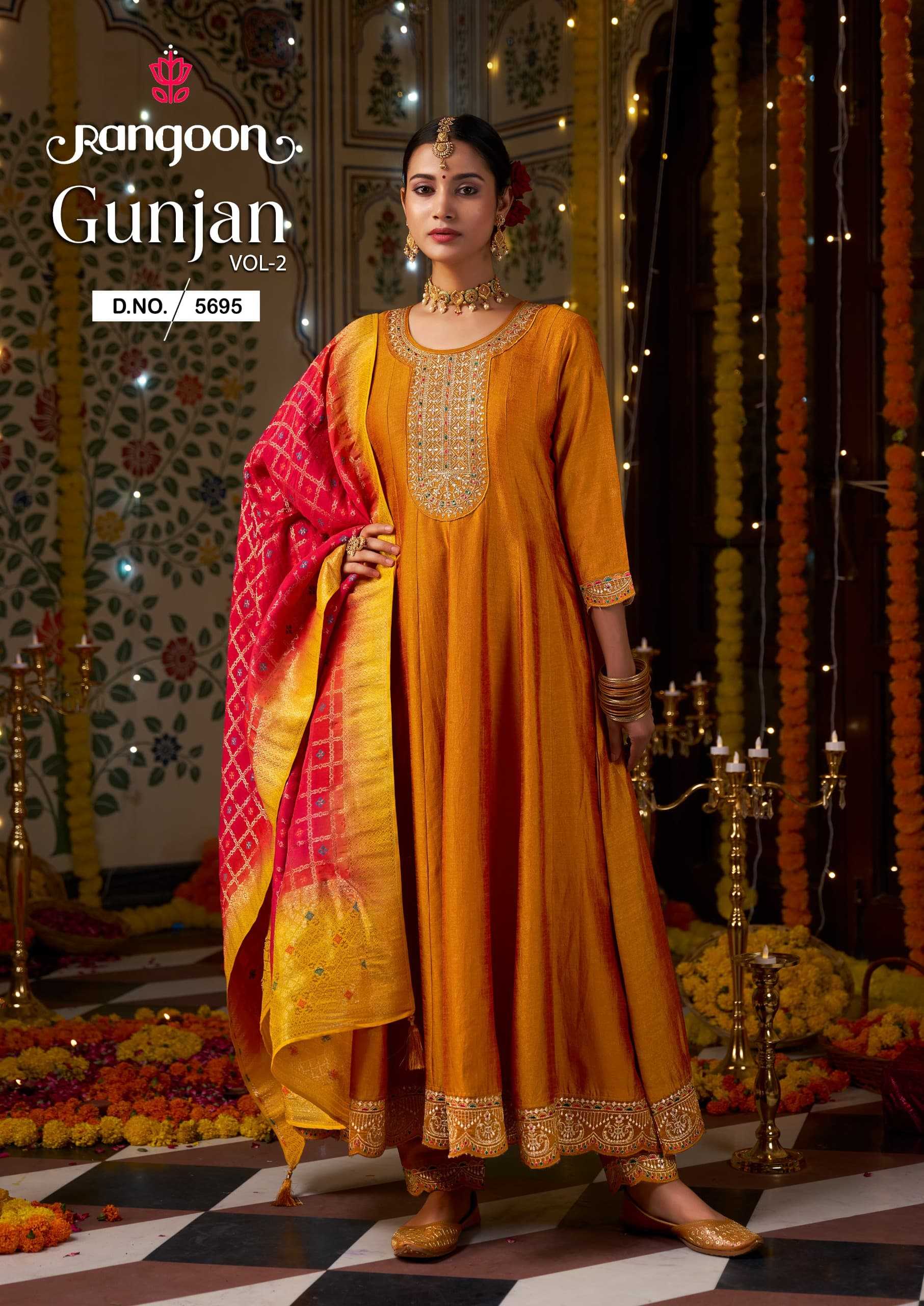 gunjan vol 2 by rangoon silk anarkali style fully stitch stylish 3pcs dress