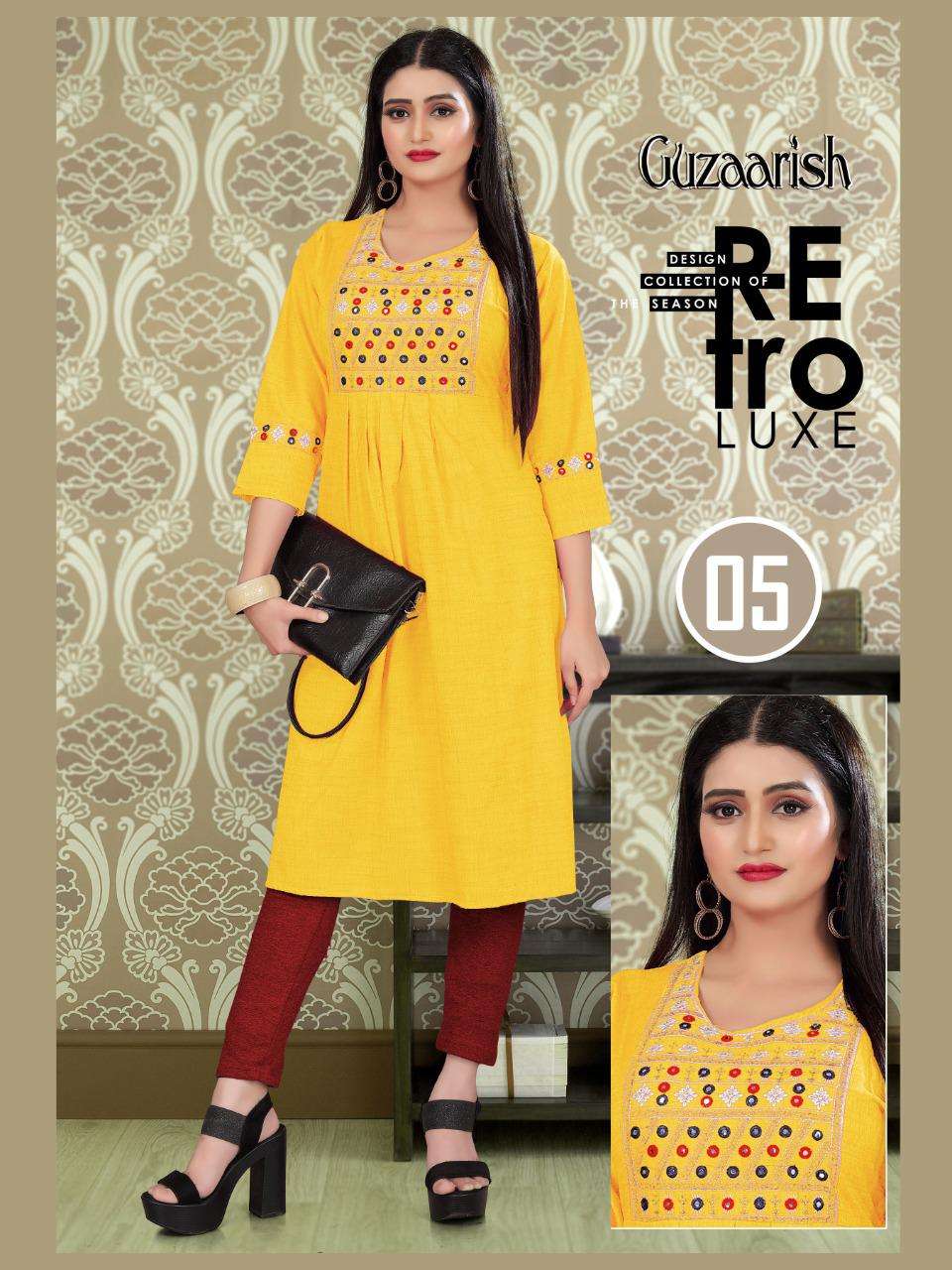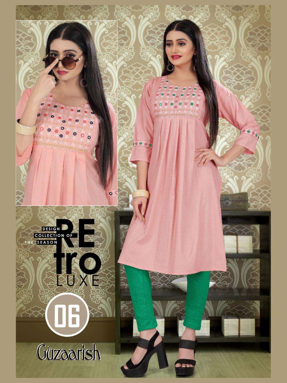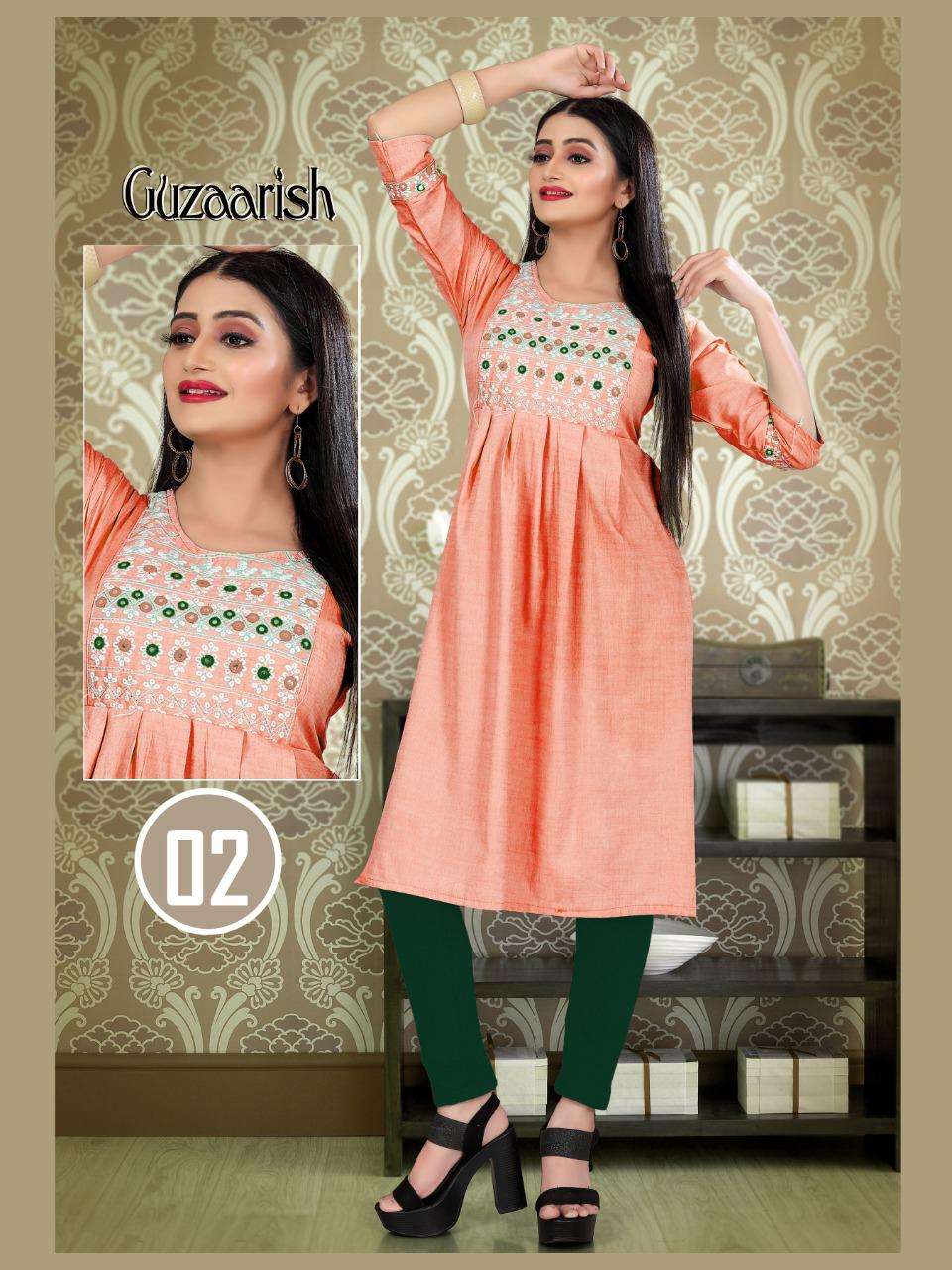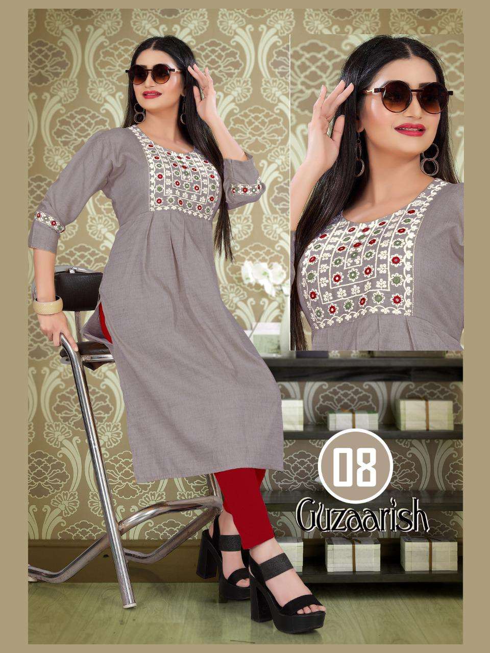 GUZAARISH VOL.3 HEAVY Rayon Two Tone Heavy Tikka Work Embroidered Kurti with Sleeve Work KURTI CATALOG WHOLESALER BEST RATE