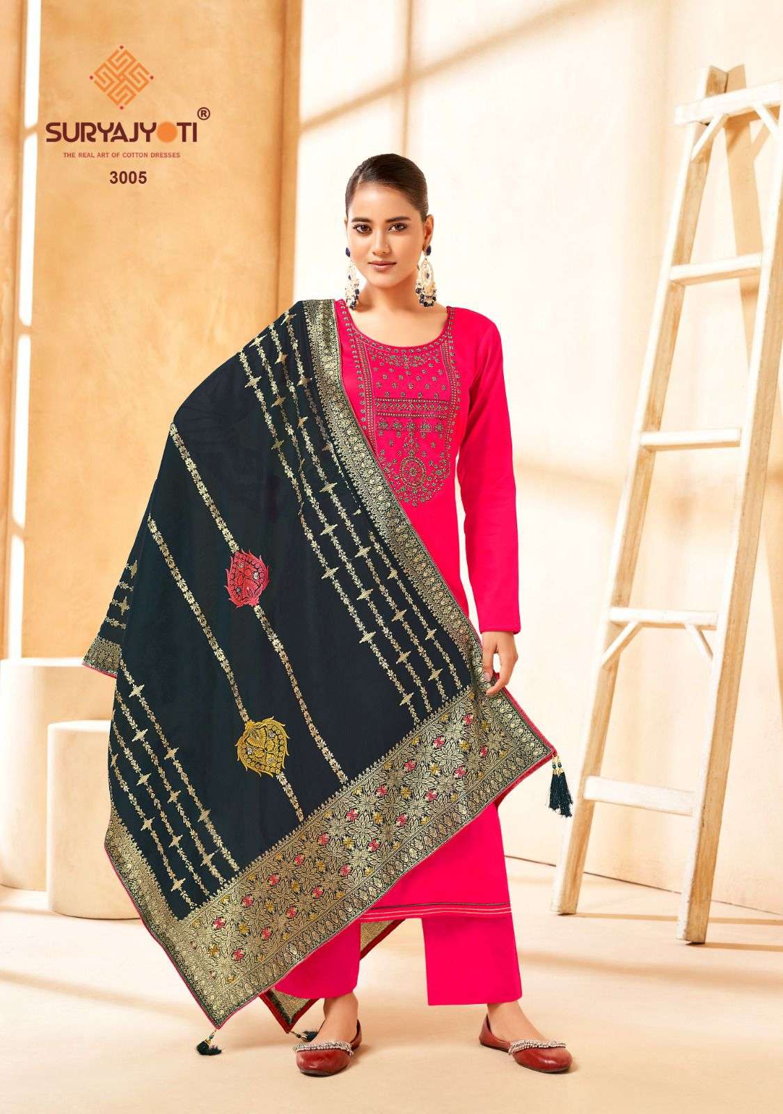 Suryajyoti Cotton Presents Latest Collection Launched on 28-11-2023. Presenting Beautiful collection of 6 PCS with Unstitched .