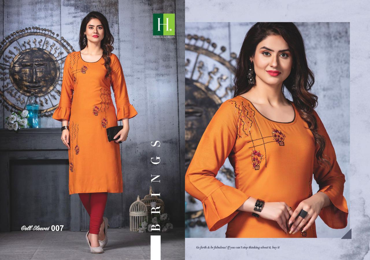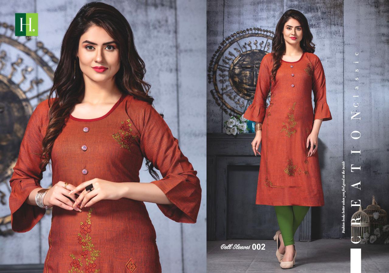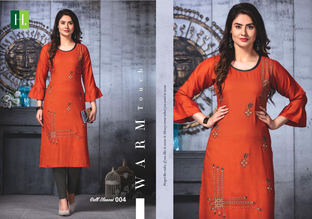 H DOT the kurti brand from Hirwa has launched its new long kurti catalog for trendy girls with bell sleeves and embroidery