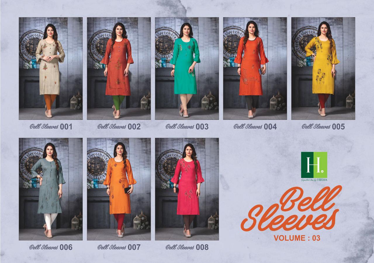 H Dot By Hirwa Launch Bell Sleeves Vol 3 Fancy Rayon Long Kurti Collection