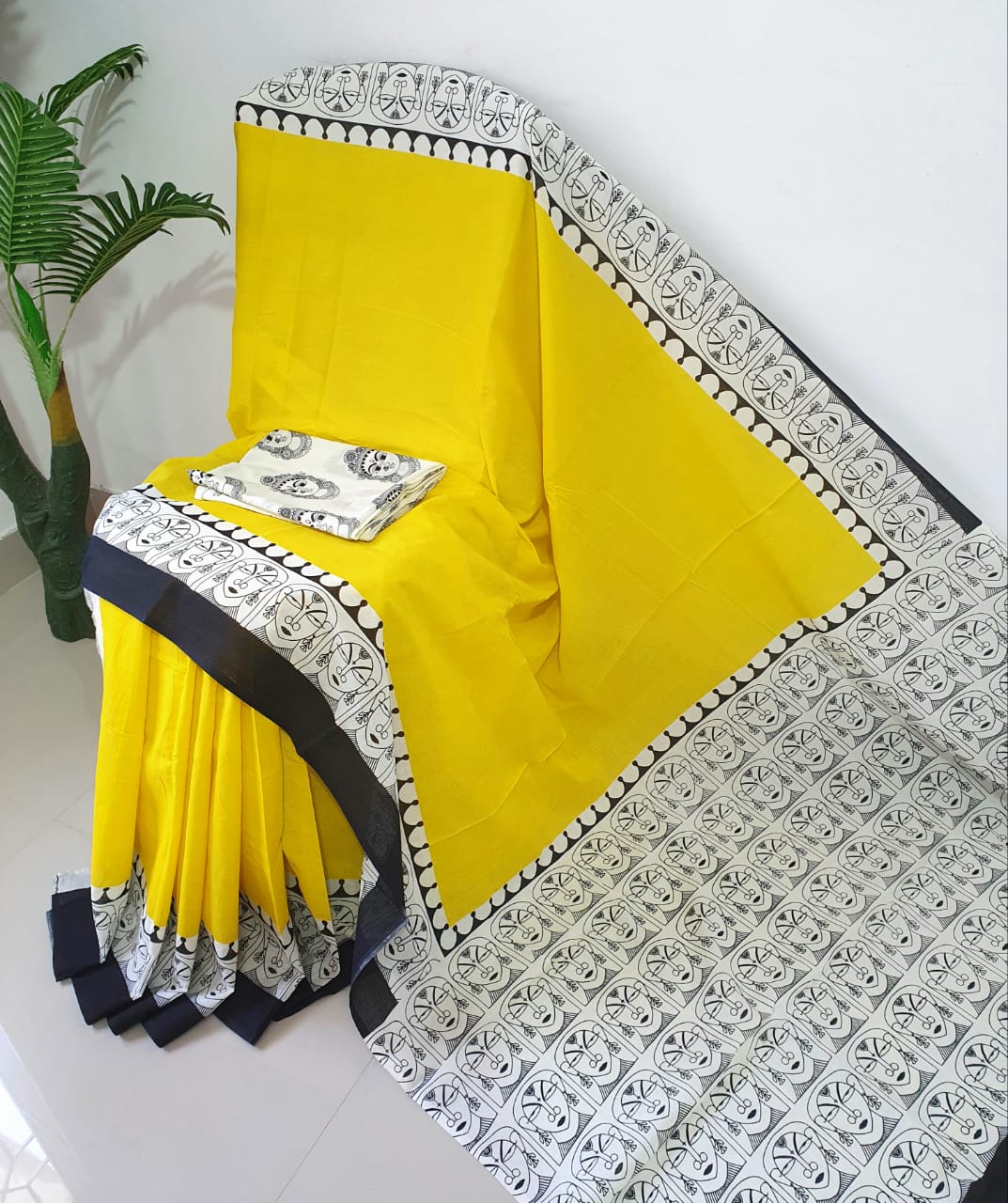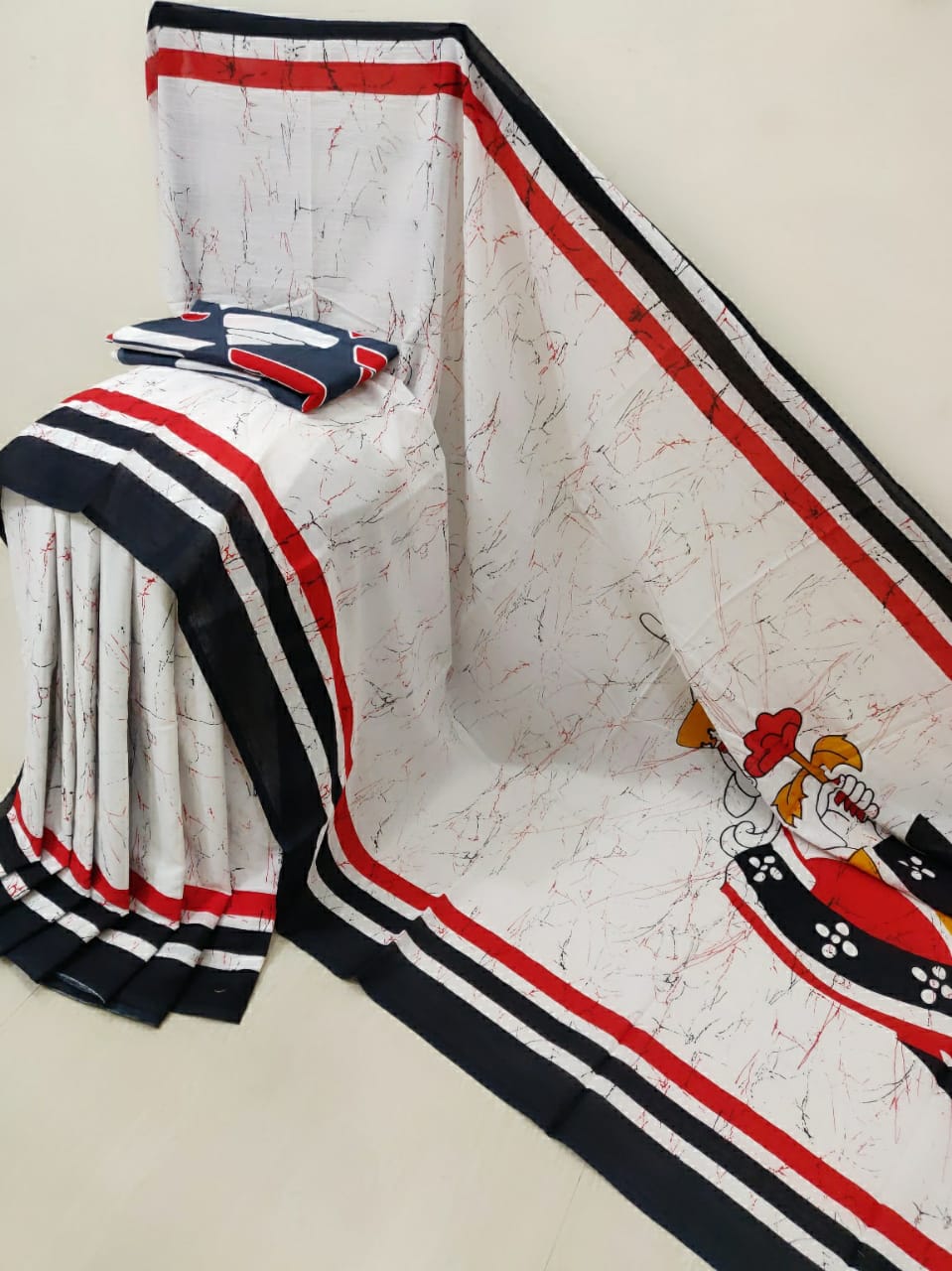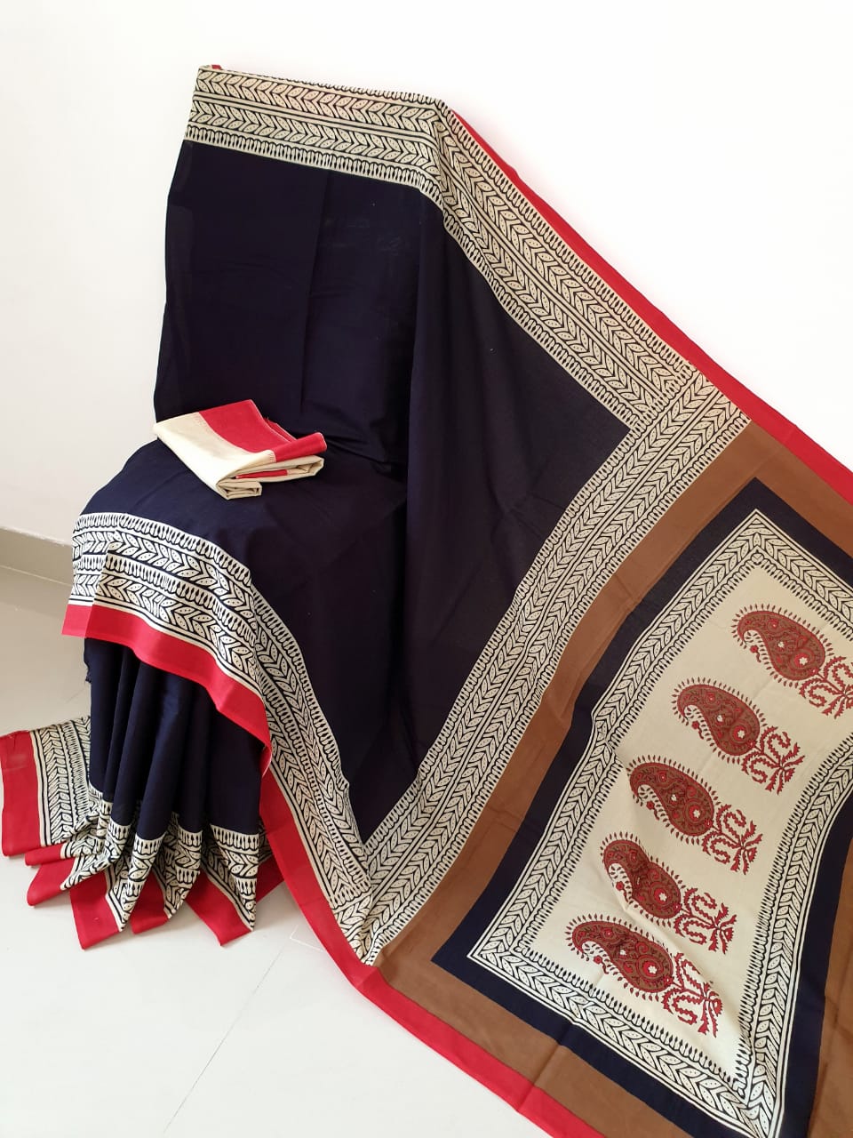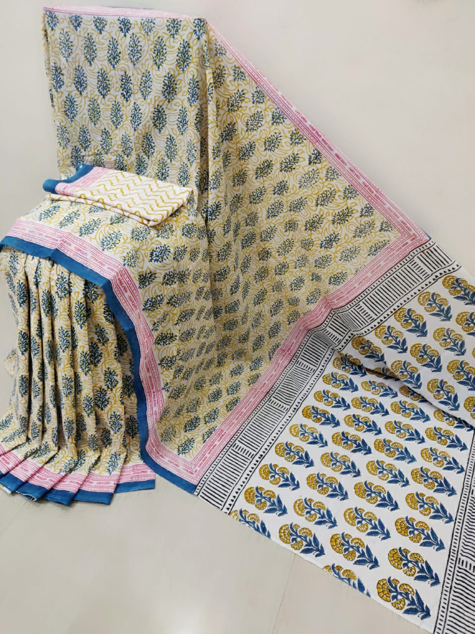 Hand Block Printed Pure Cotton Mul Saris With Blouse Pc Buy Online At Best Rates