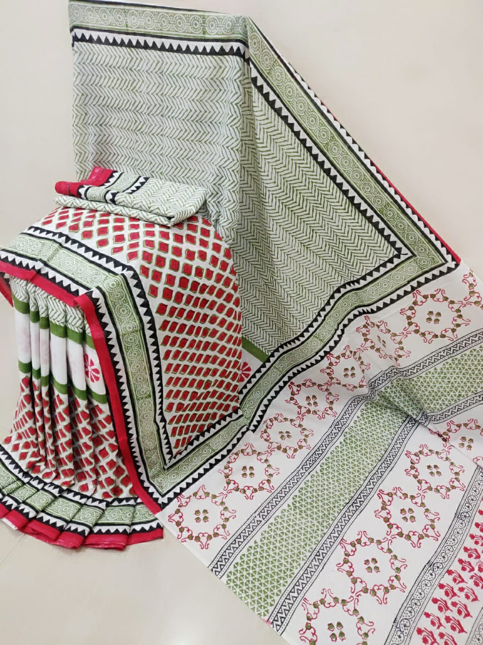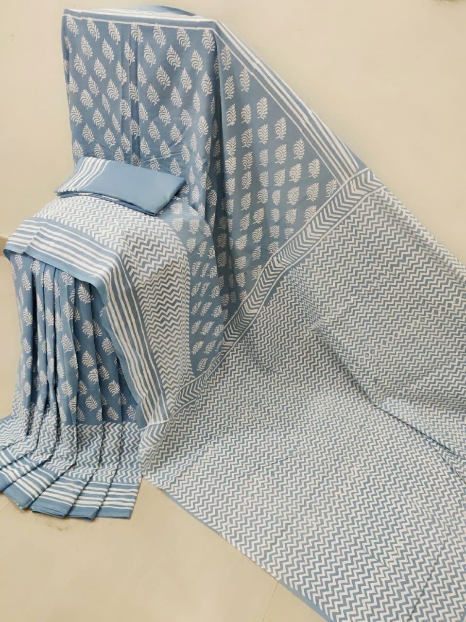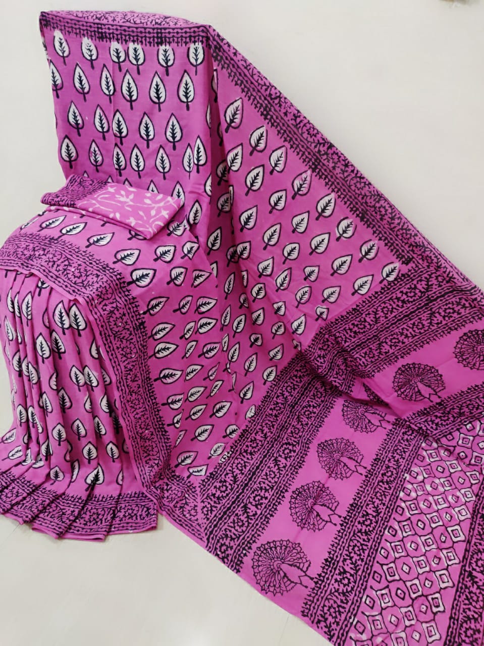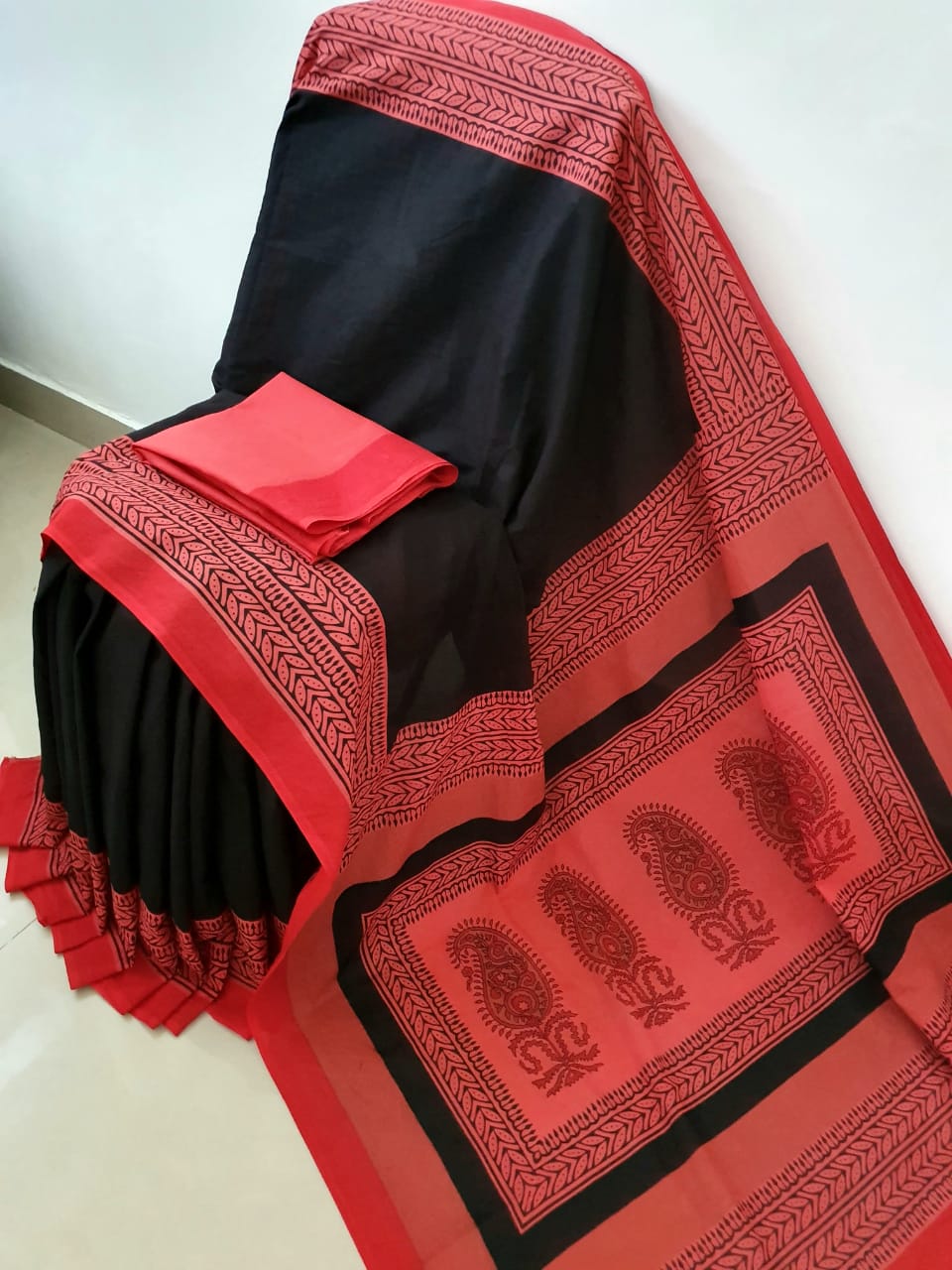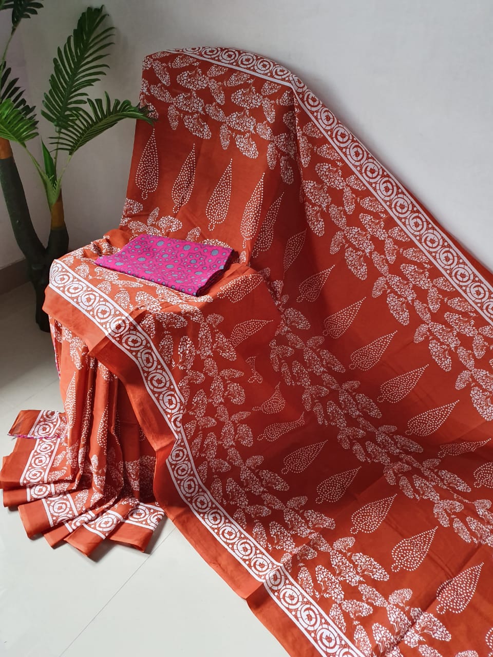 BP - SAREE PART 1 New arrival hand block printed pure cotton mul sarees available with the same blouse pc Rate - 750/- plus gst 6.3 mtr apro min 30 pcs order |