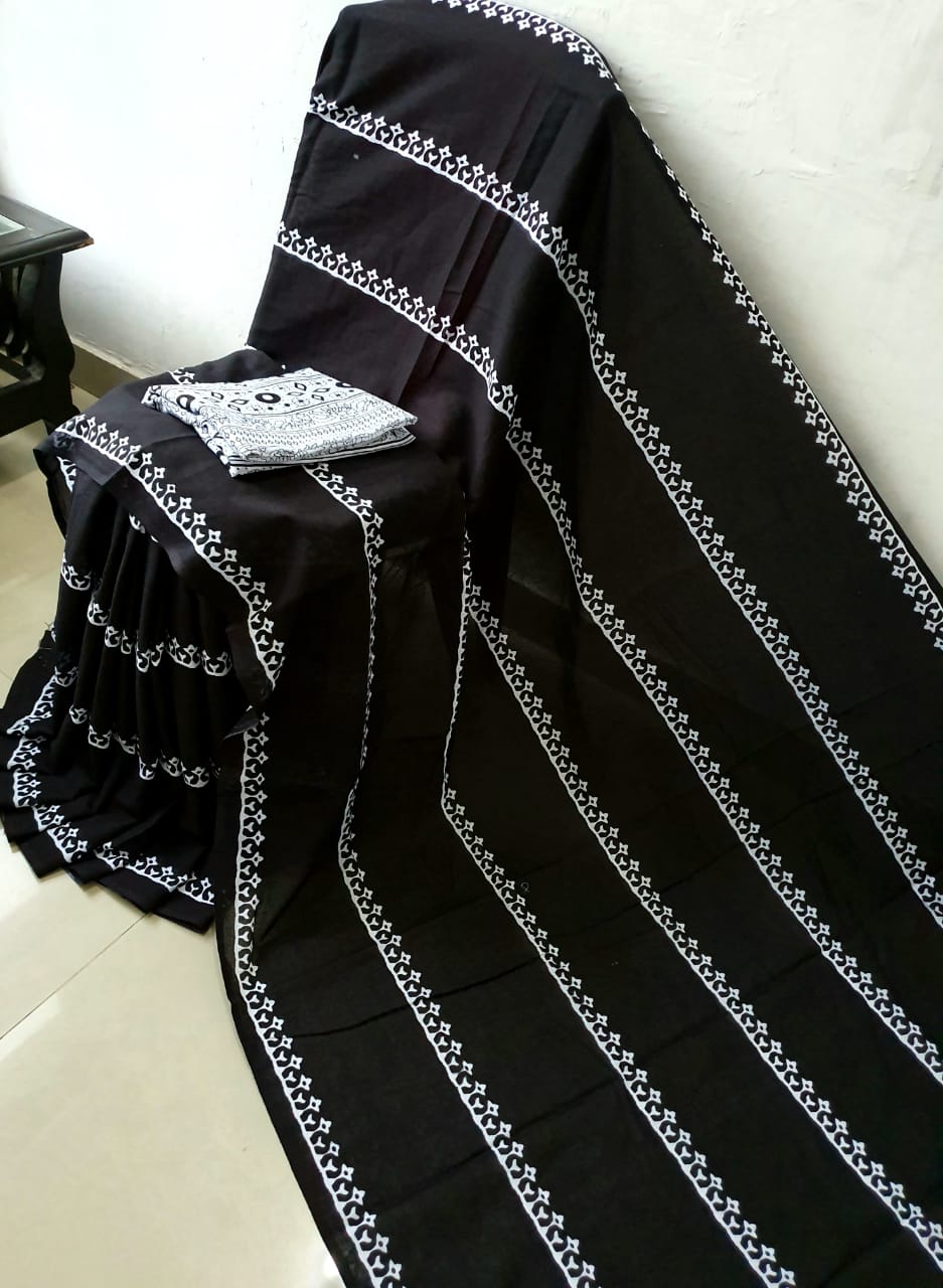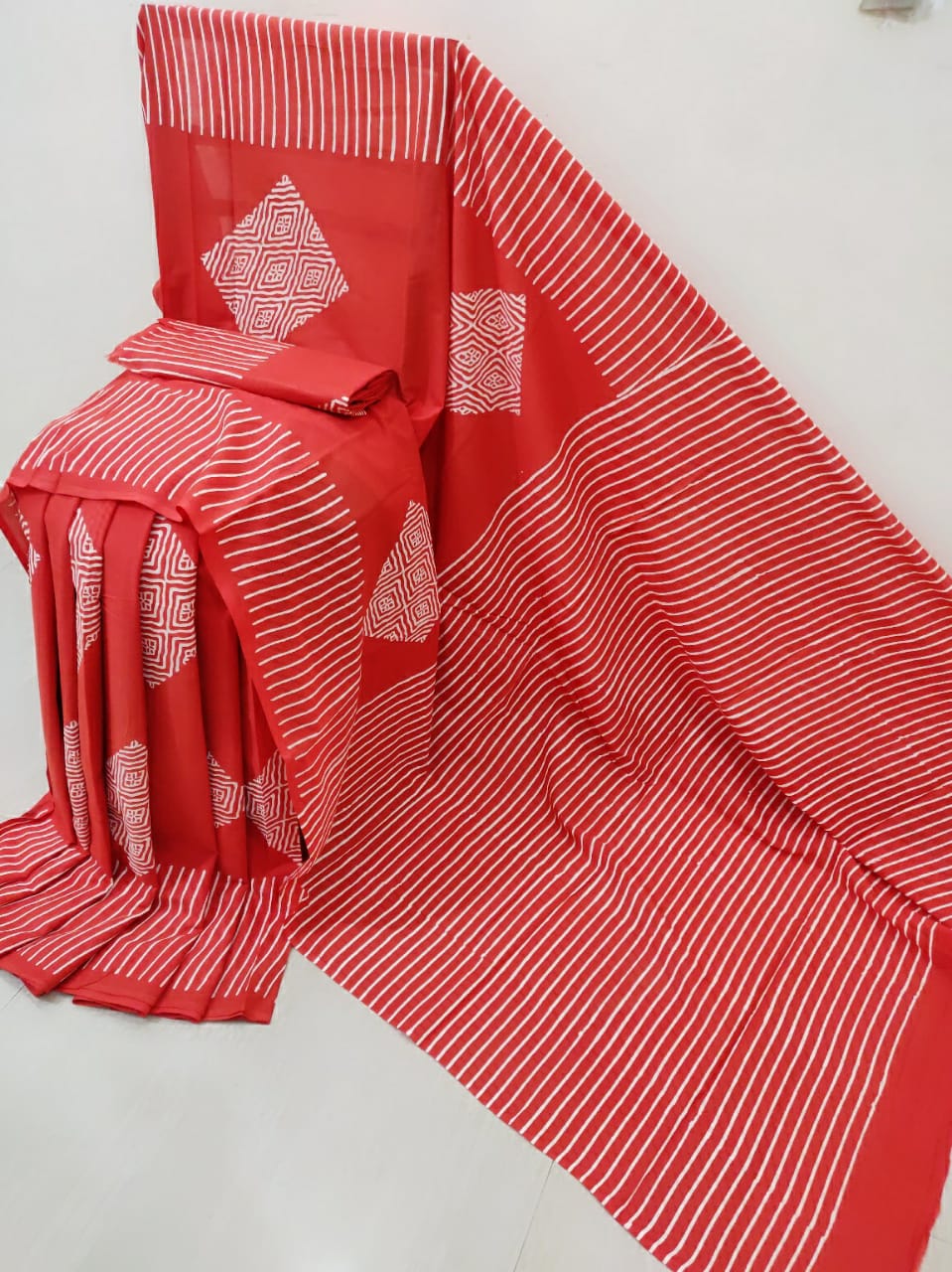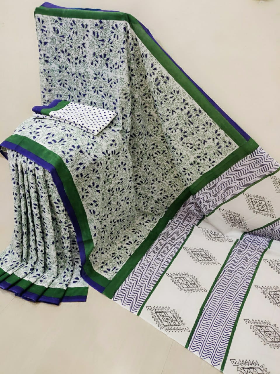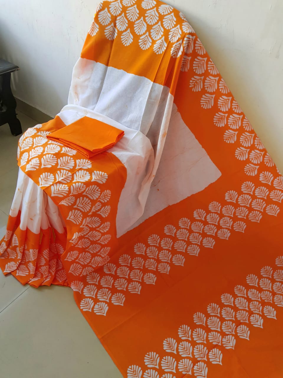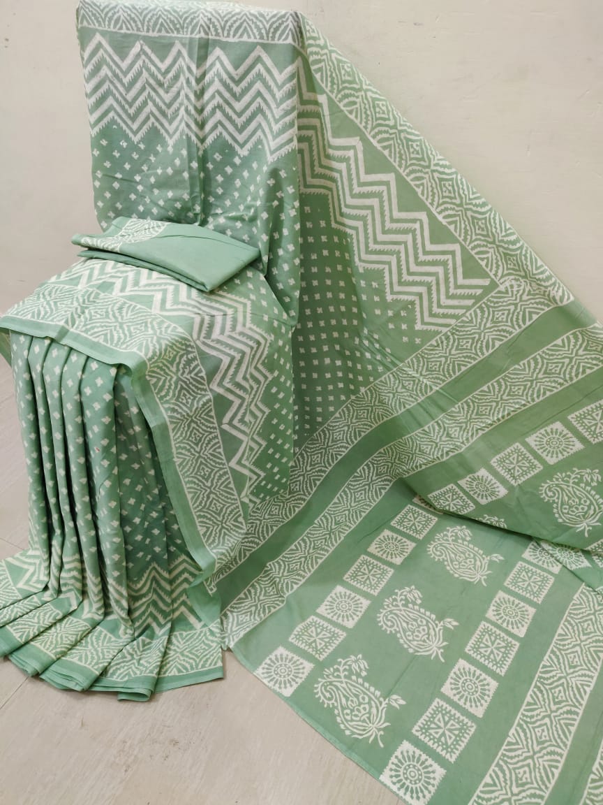 BP - SAREE PART 1 New arrival hand block printed pure cotton mul sarees available with the same blouse pc Rate - 750/- plus gst 6.3 mtr apro min 30 pcs order |