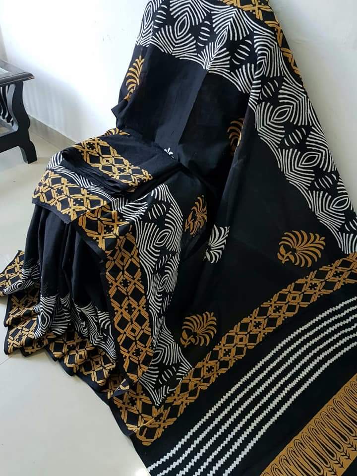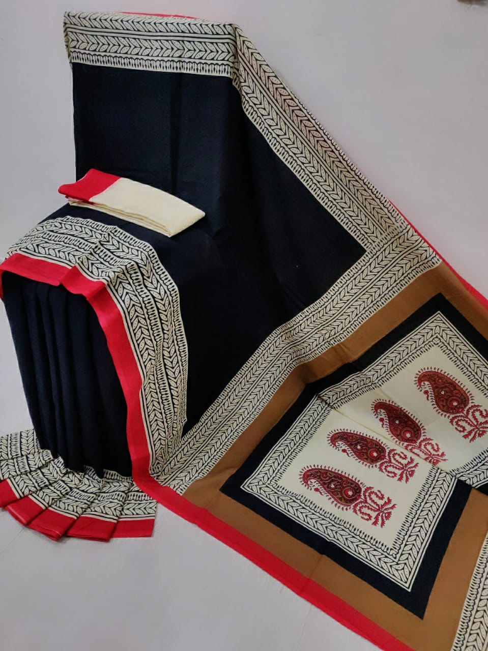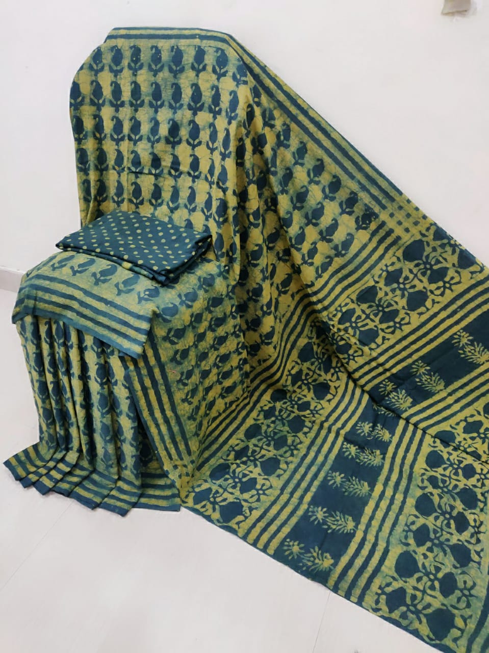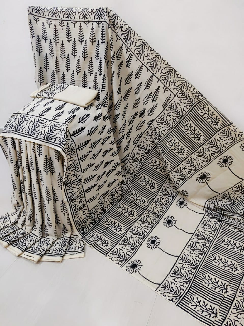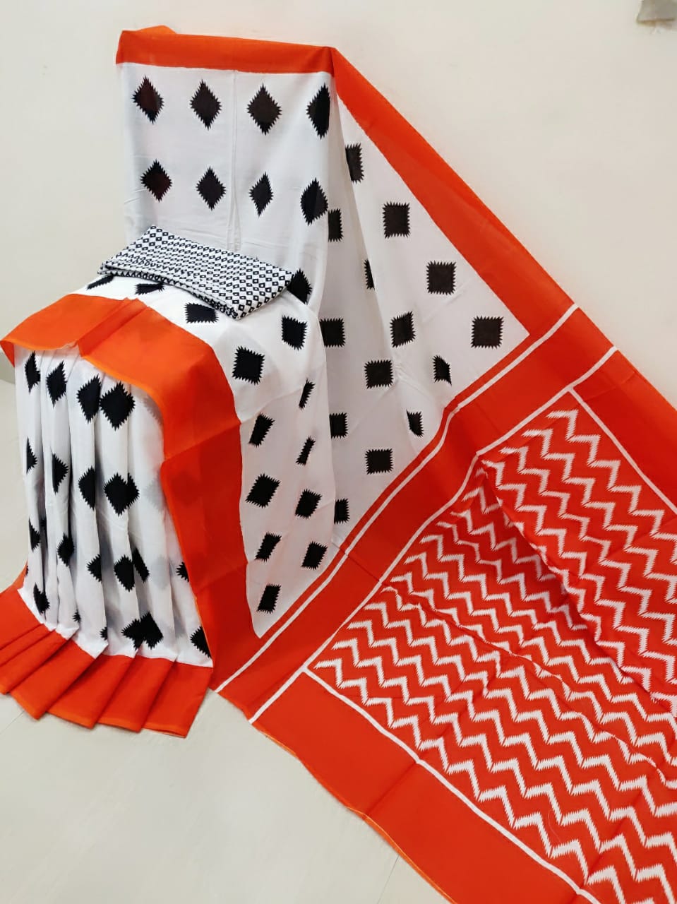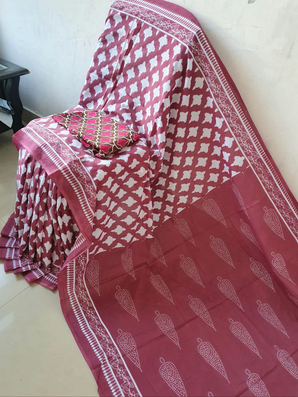BP - SAREE PART 1 New arrival hand block printed pure cotton mul sarees available with the same blouse pc Rate - 750/- plus gst 6.3 mtr apro min 30 pcs order |