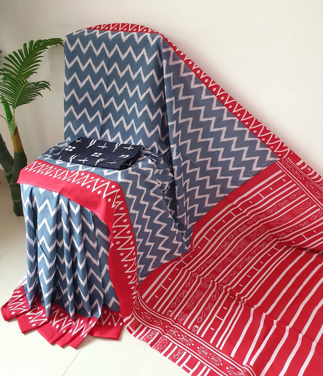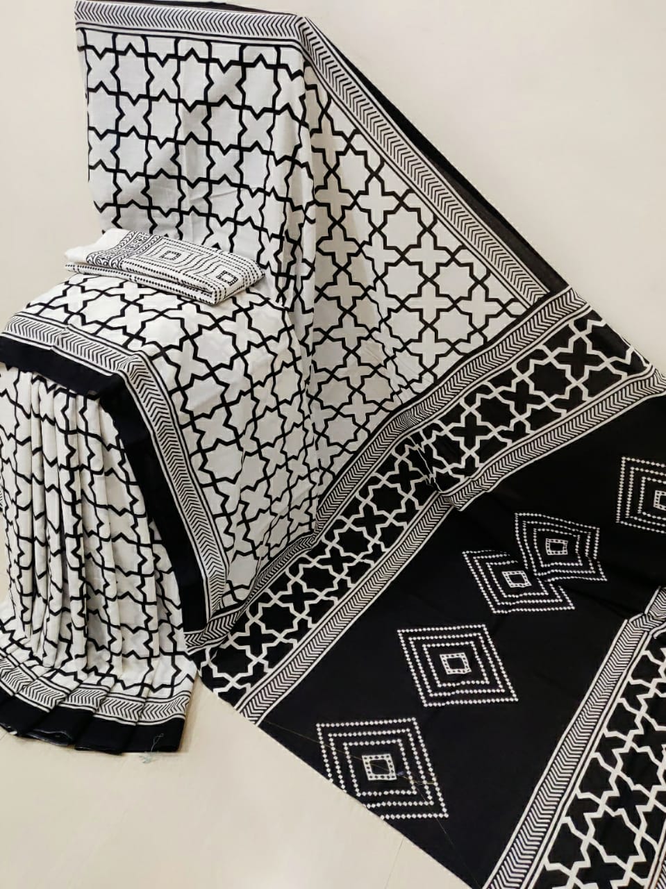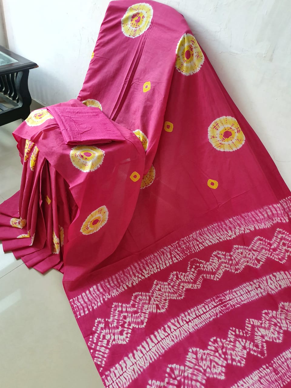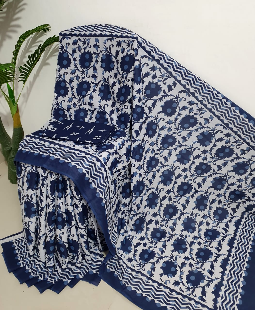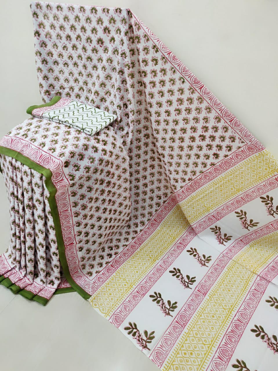 BP - SAREE PART 1 New arrival hand block printed pure cotton mul sarees available with the same blouse pc Rate - 750/- plus gst 6.3 mtr apro min 30 pcs order |