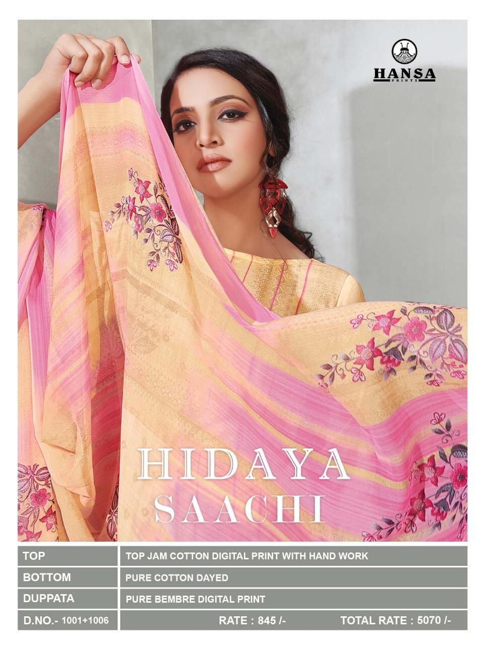 Hansa Hidaya Saachi Jam Cotton Digitally Printed Ladies Suits Wholesaler