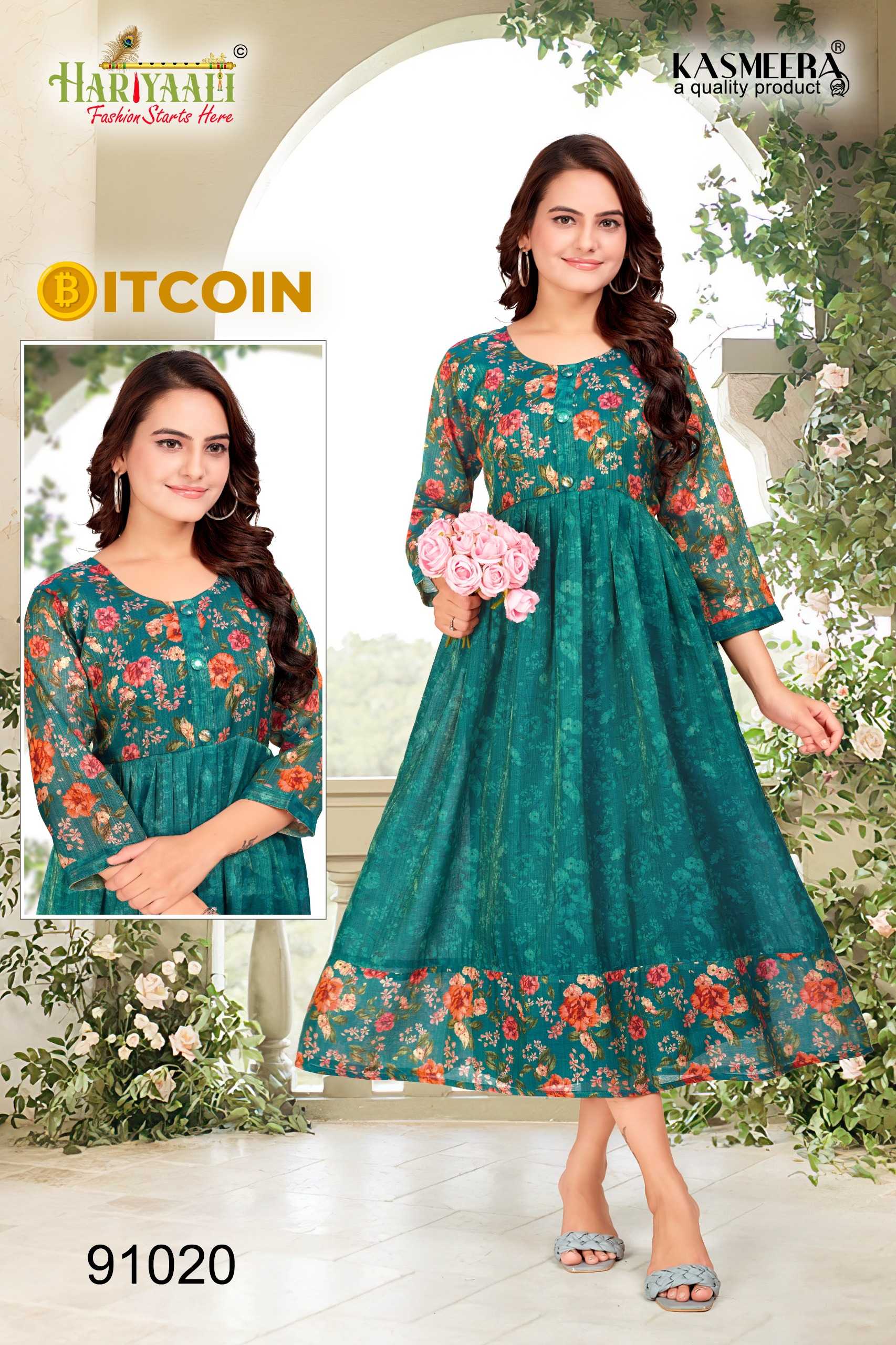 hariyaali bitcoin vol 2 latest wear readymade tissu silk kurti combo set