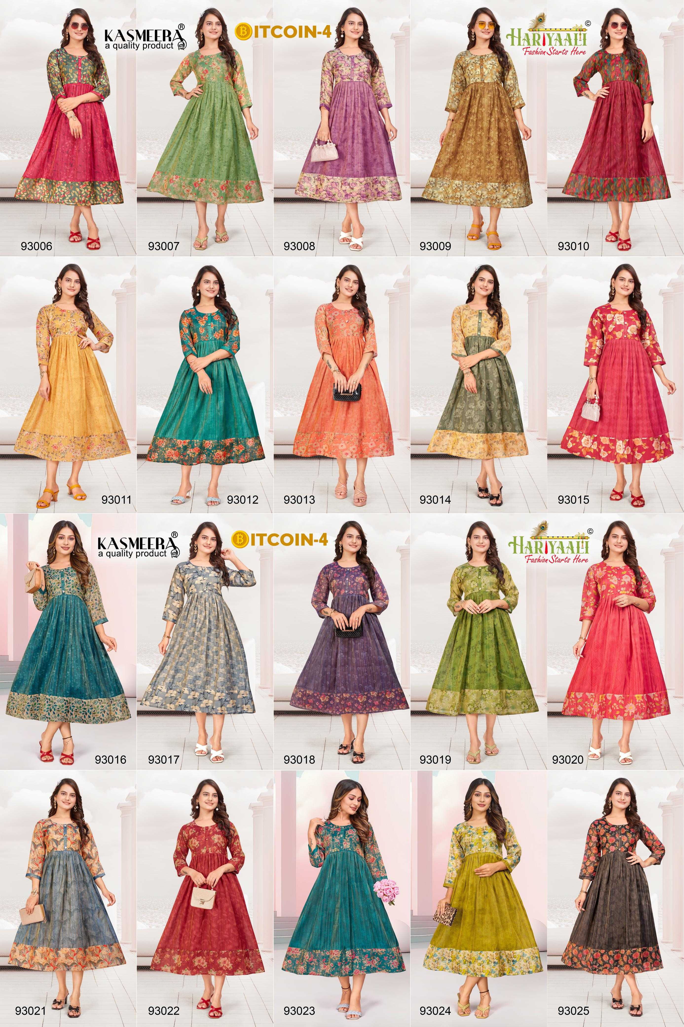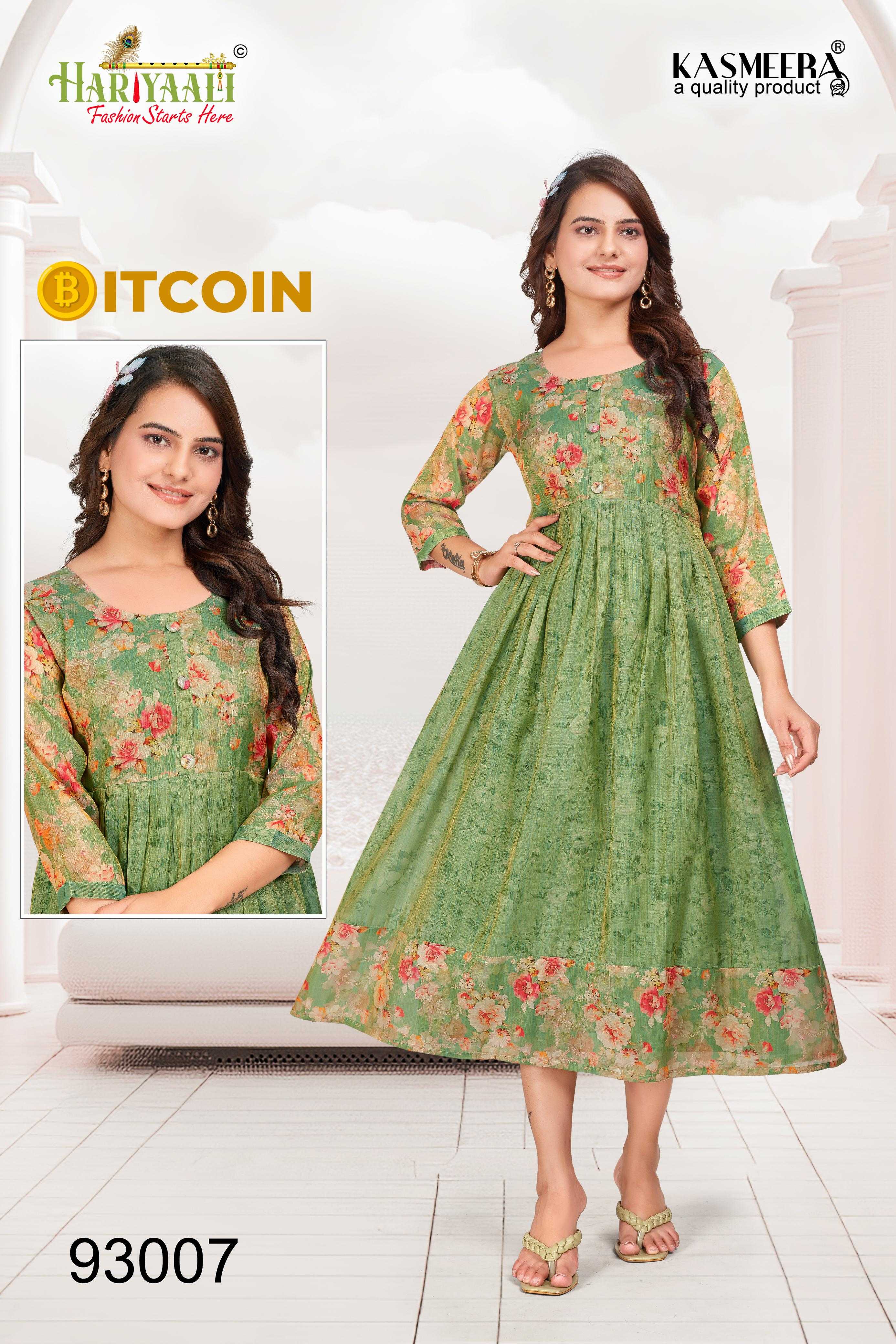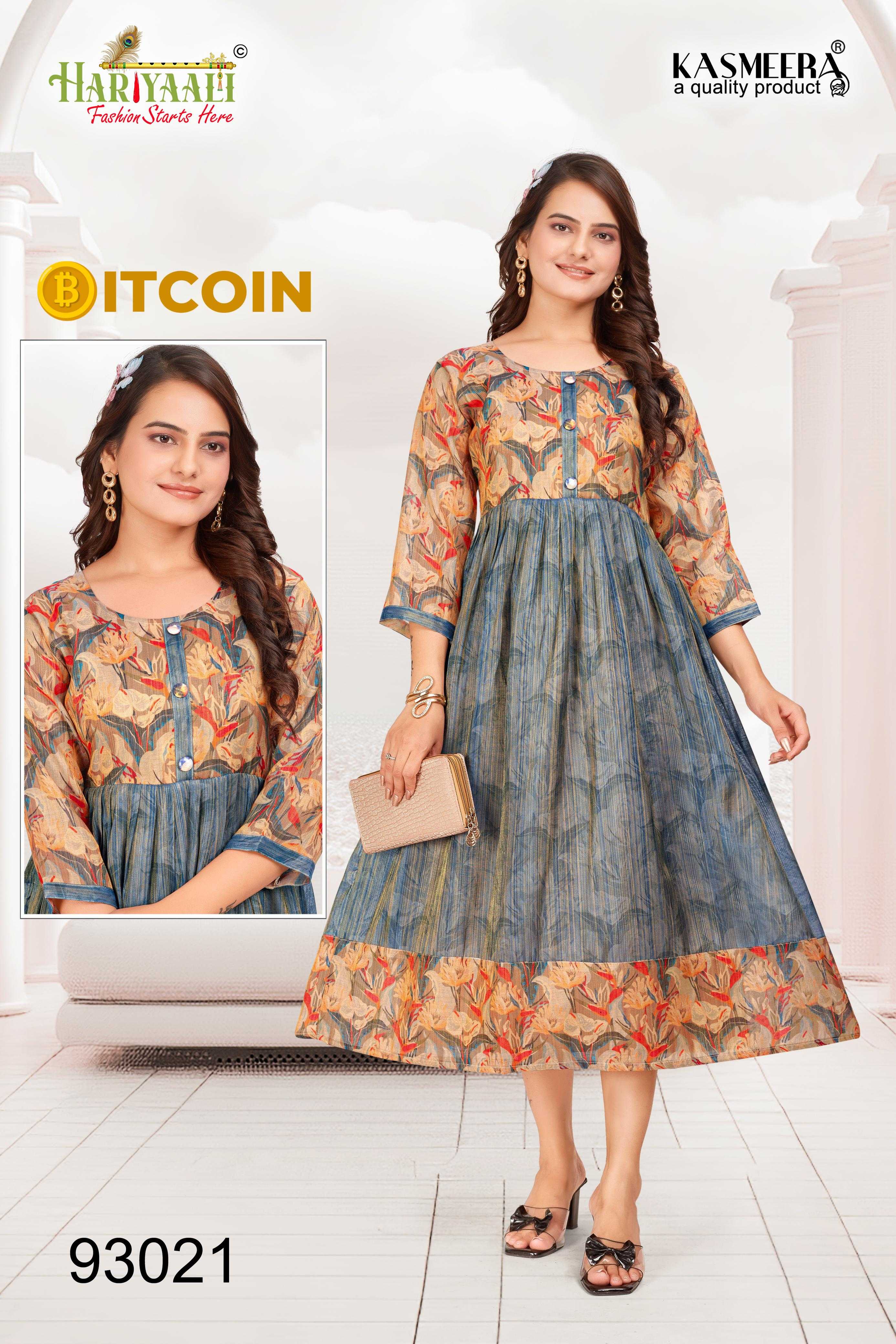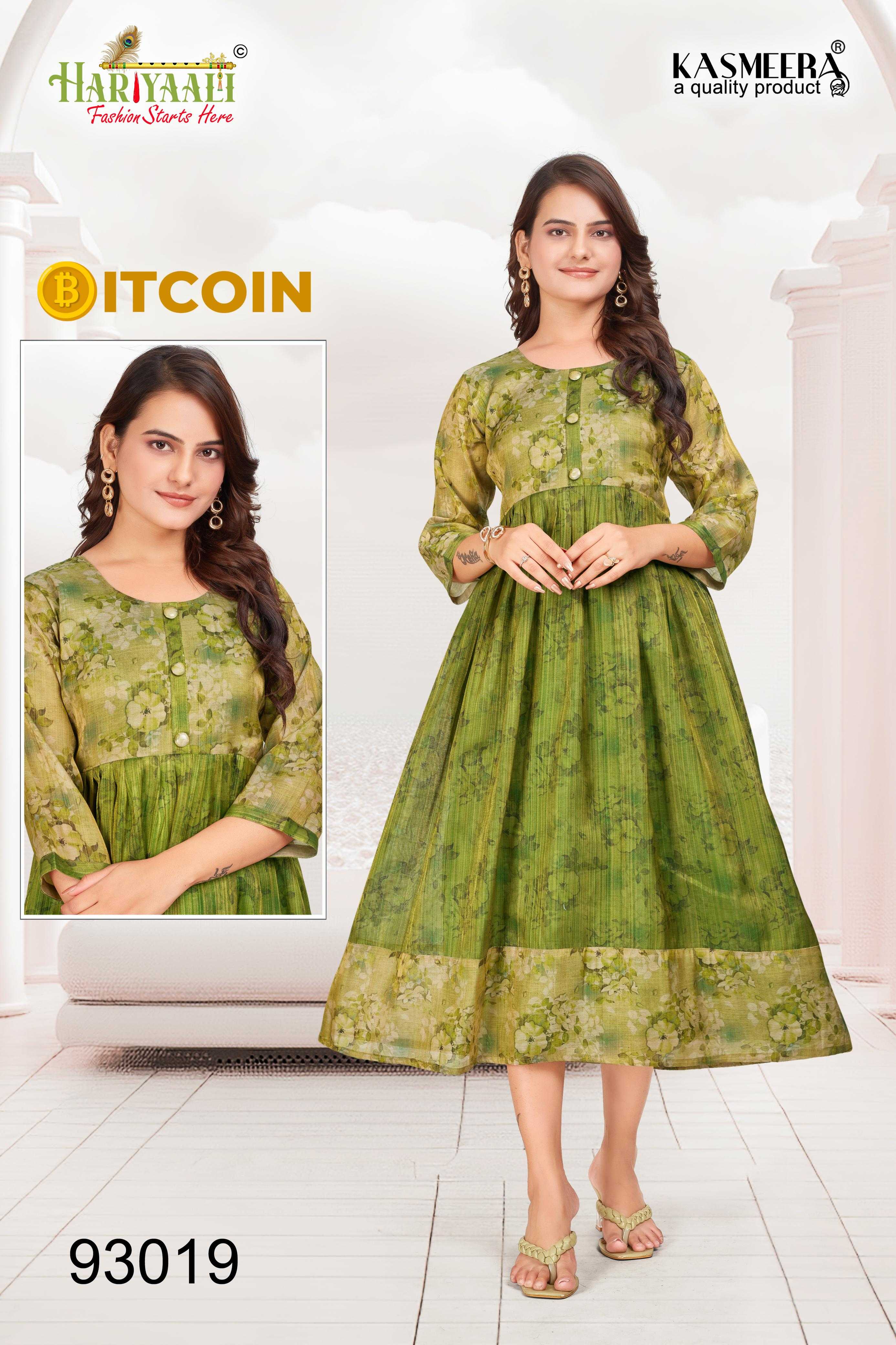 hariyaali presents bitcoin vol fashionable tissu erode silk full stitch combo set frock style kurti