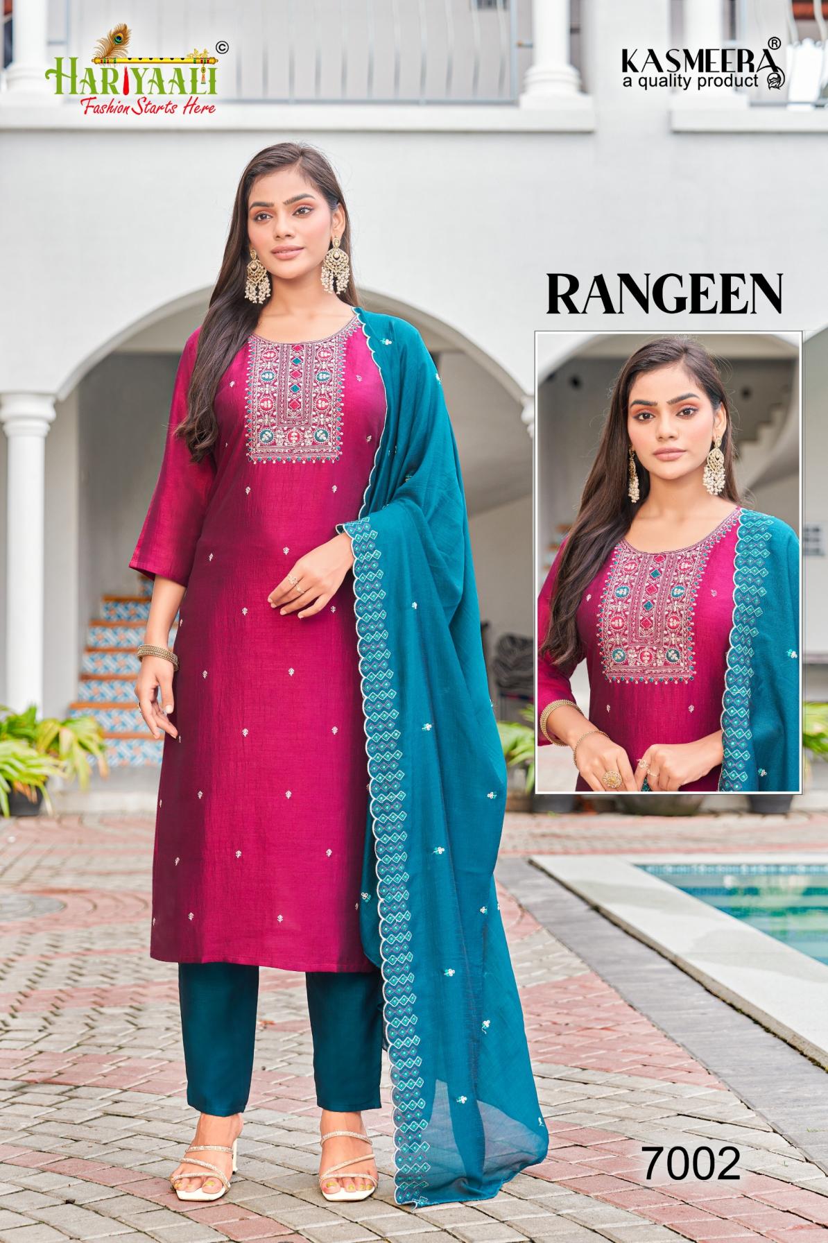 hariyaali rangeen vol 7 fully stitch vichitra blooming silk combo 3pcs dress