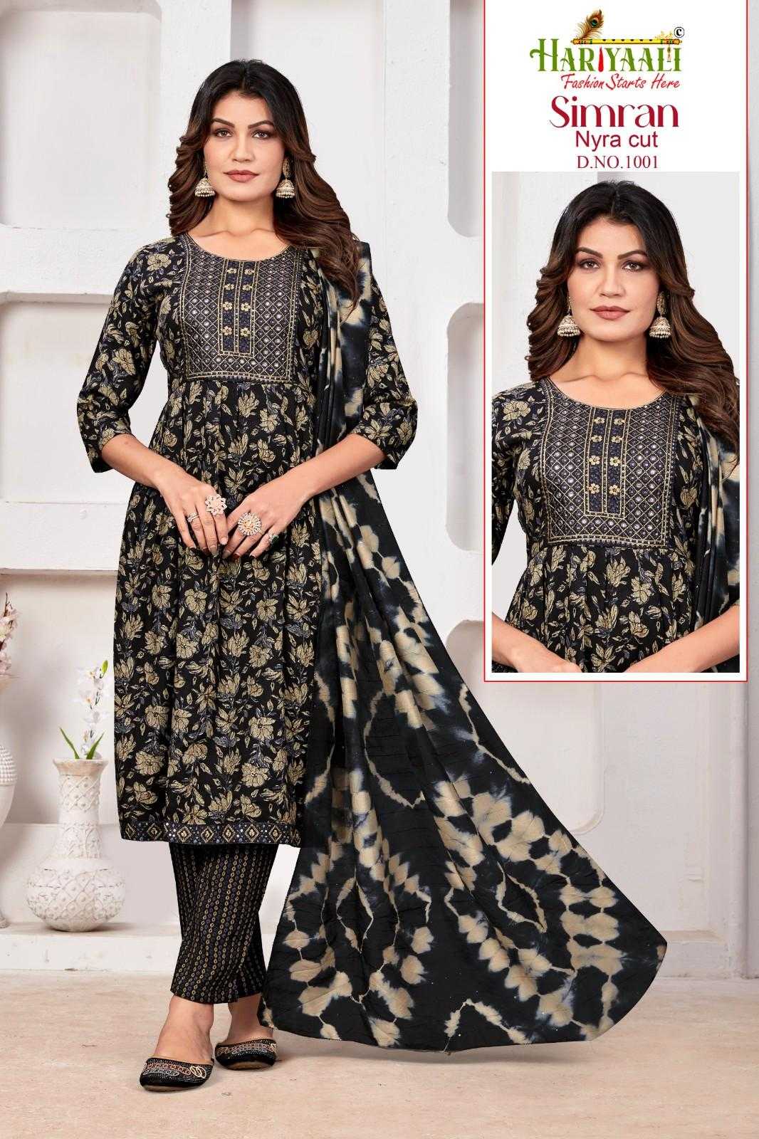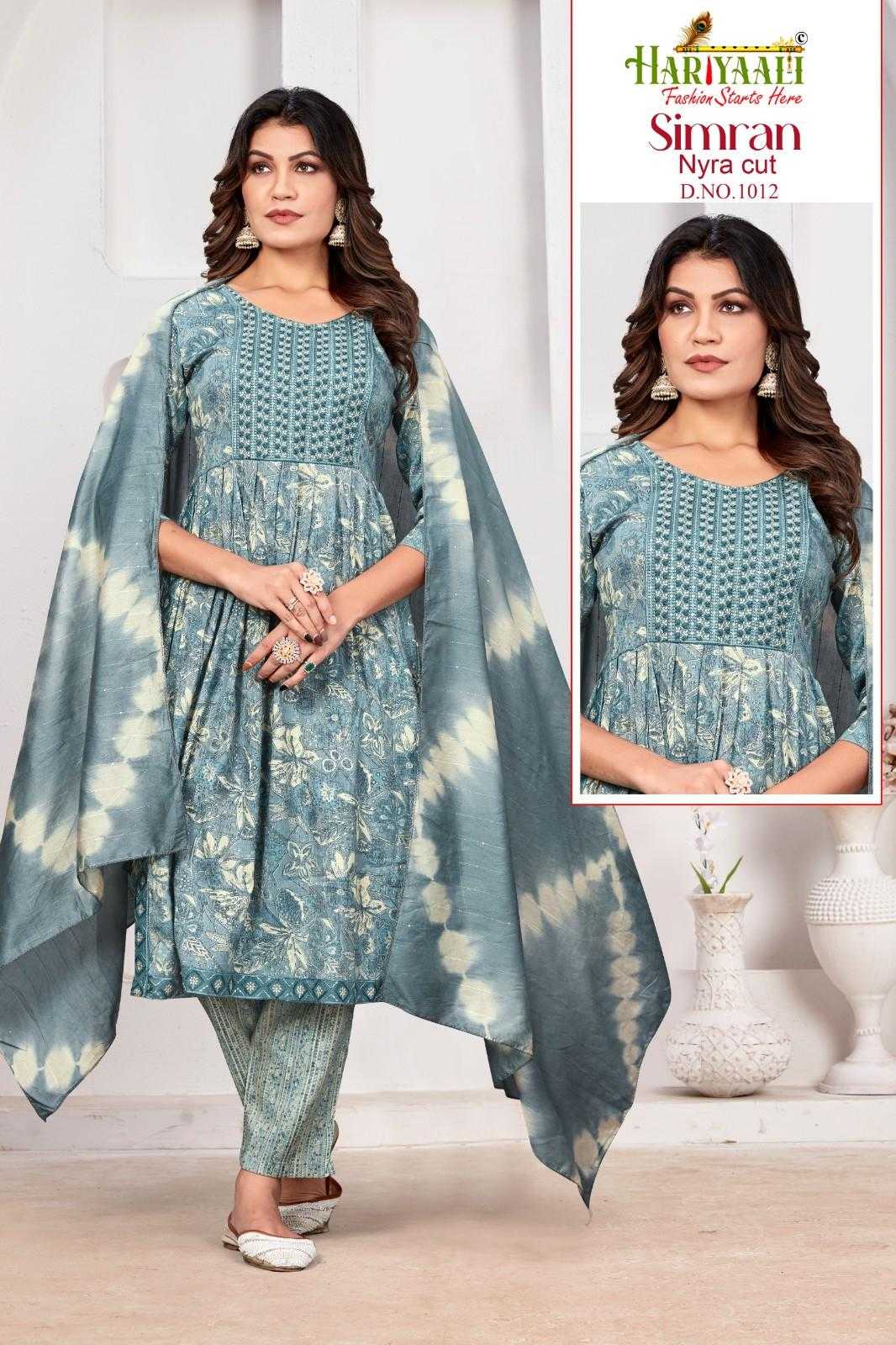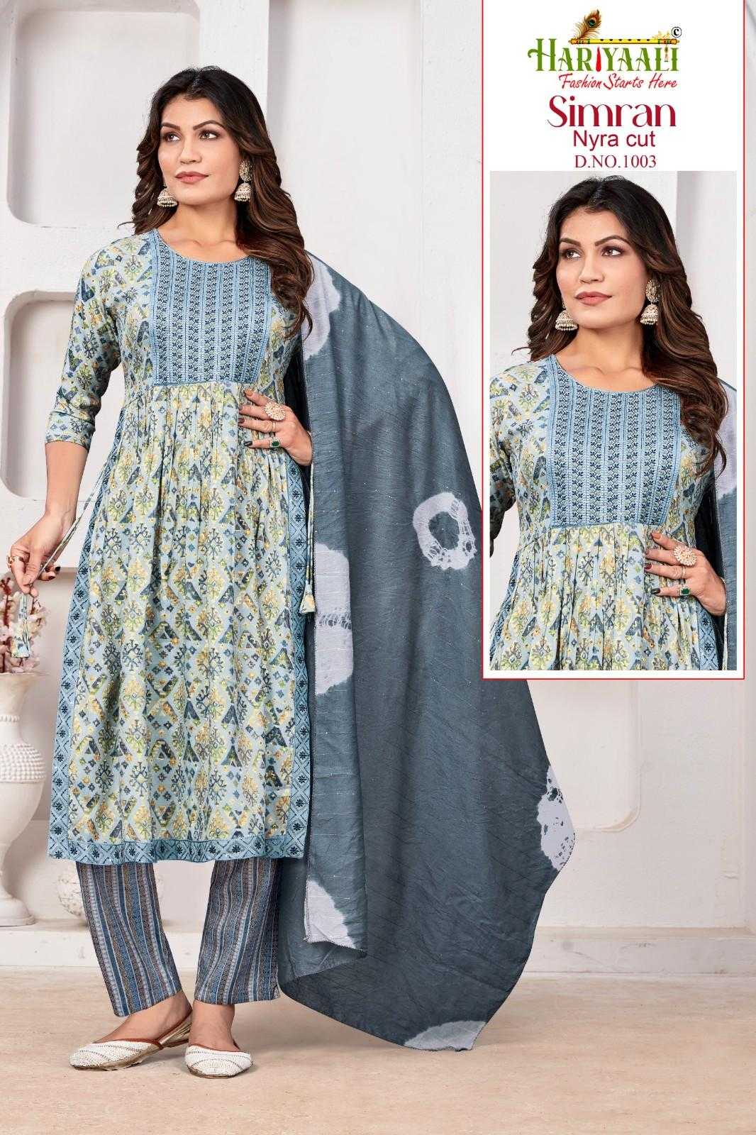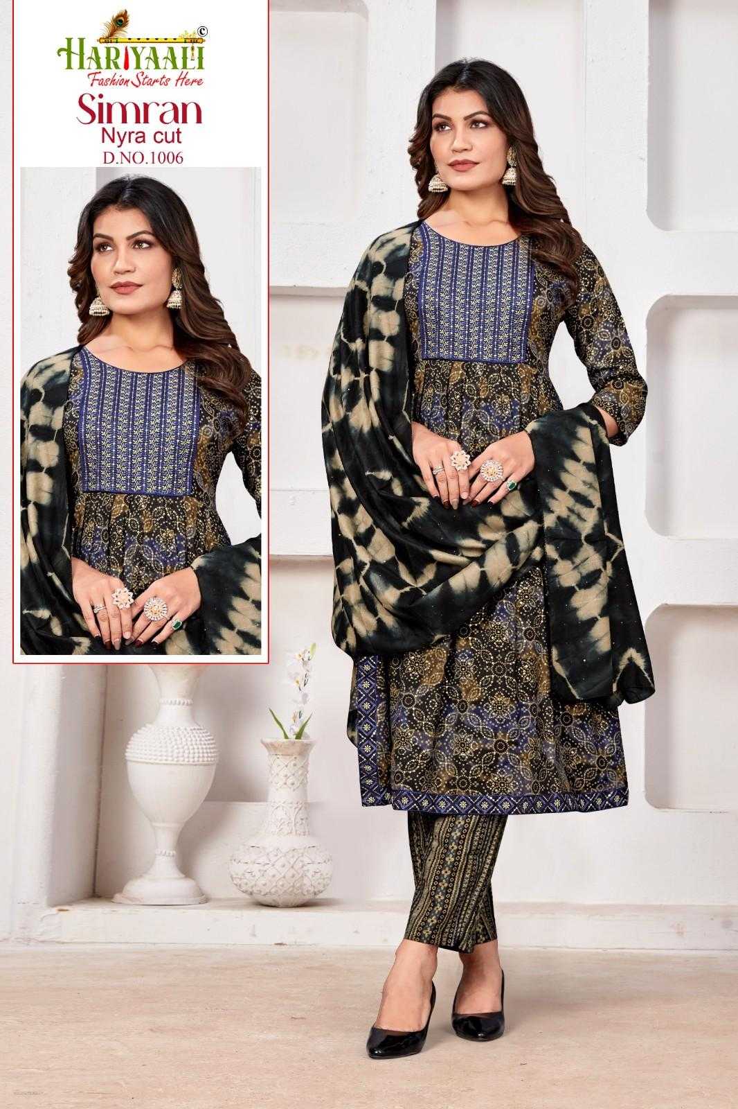 hariyaali simran rayon nyra cut style classic look full stitch combo set salwar suit