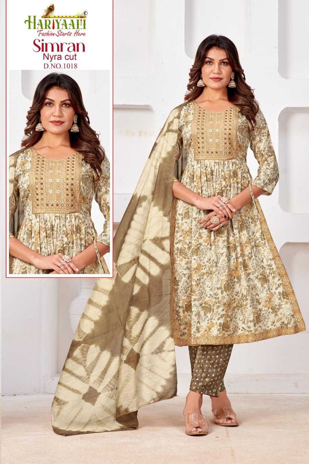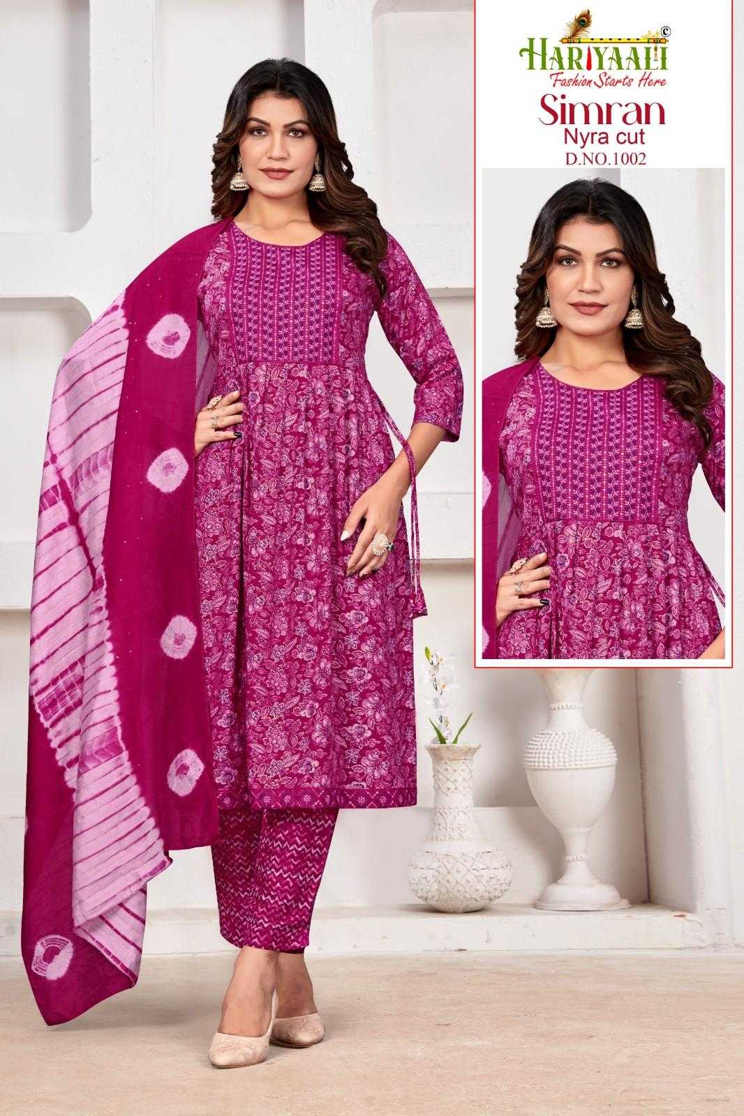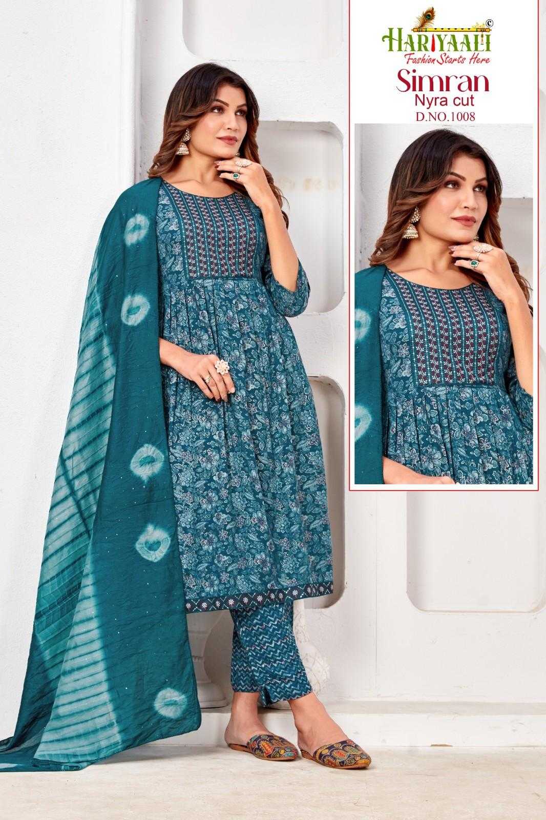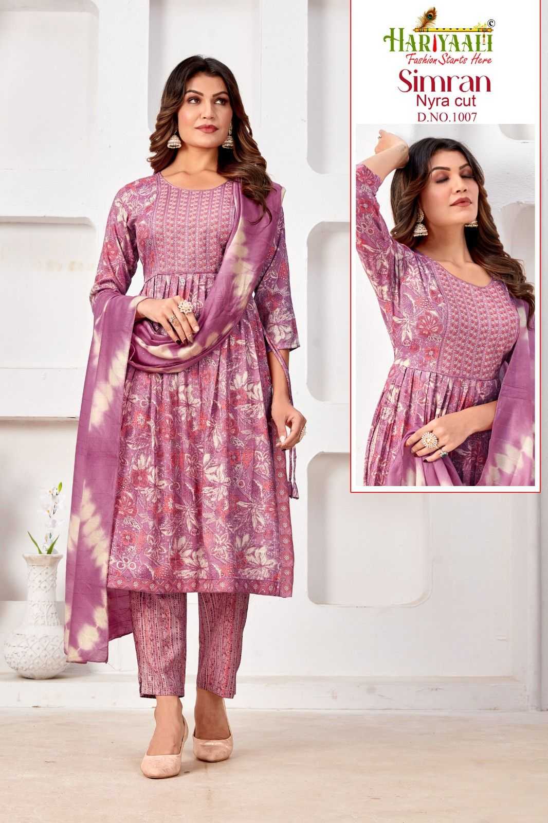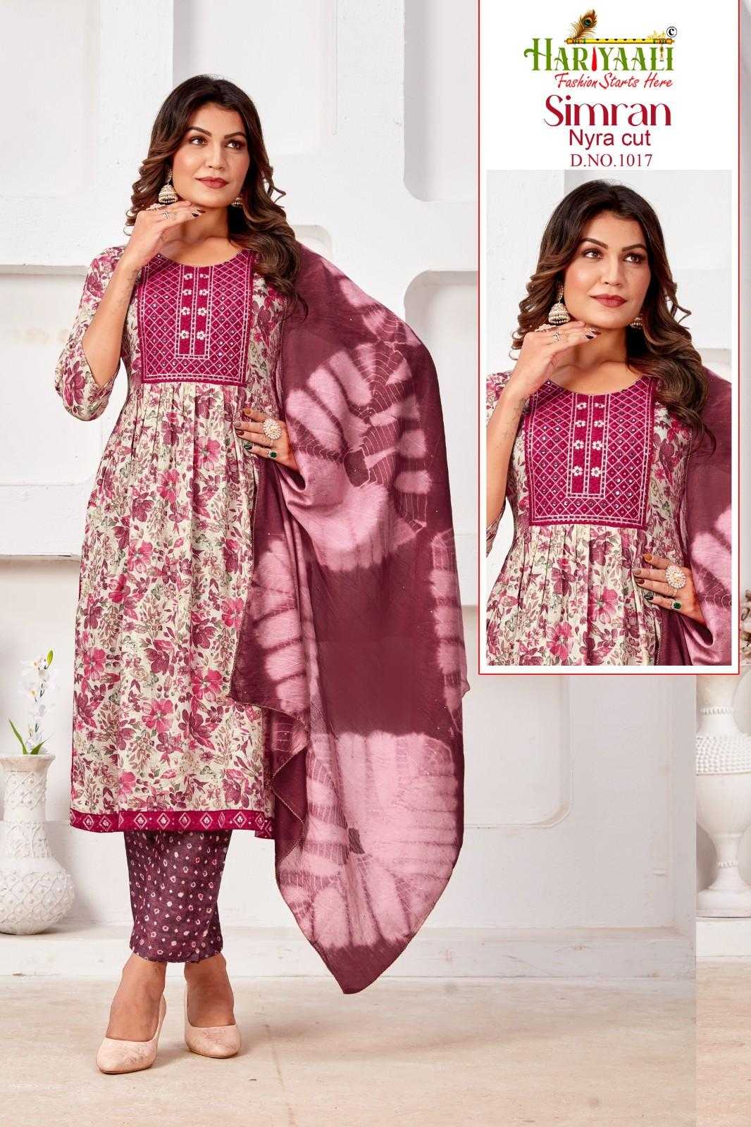 hariyaali simran rayon nyra cut style classic look full stitch combo set salwar suit