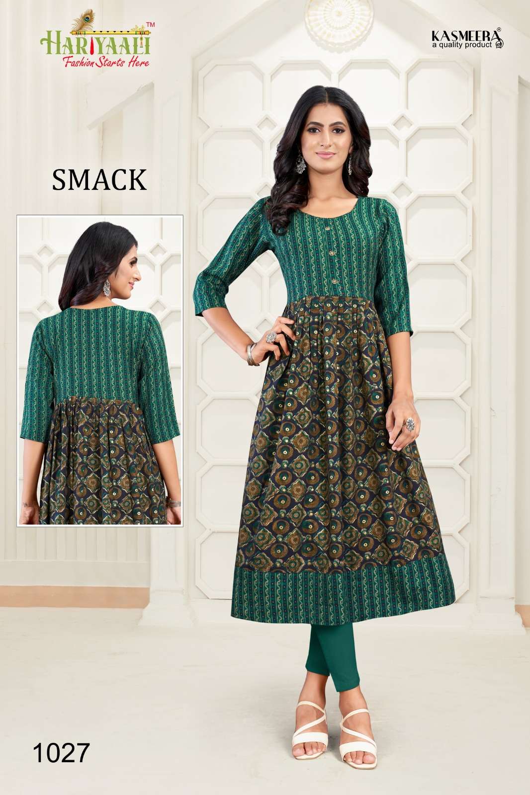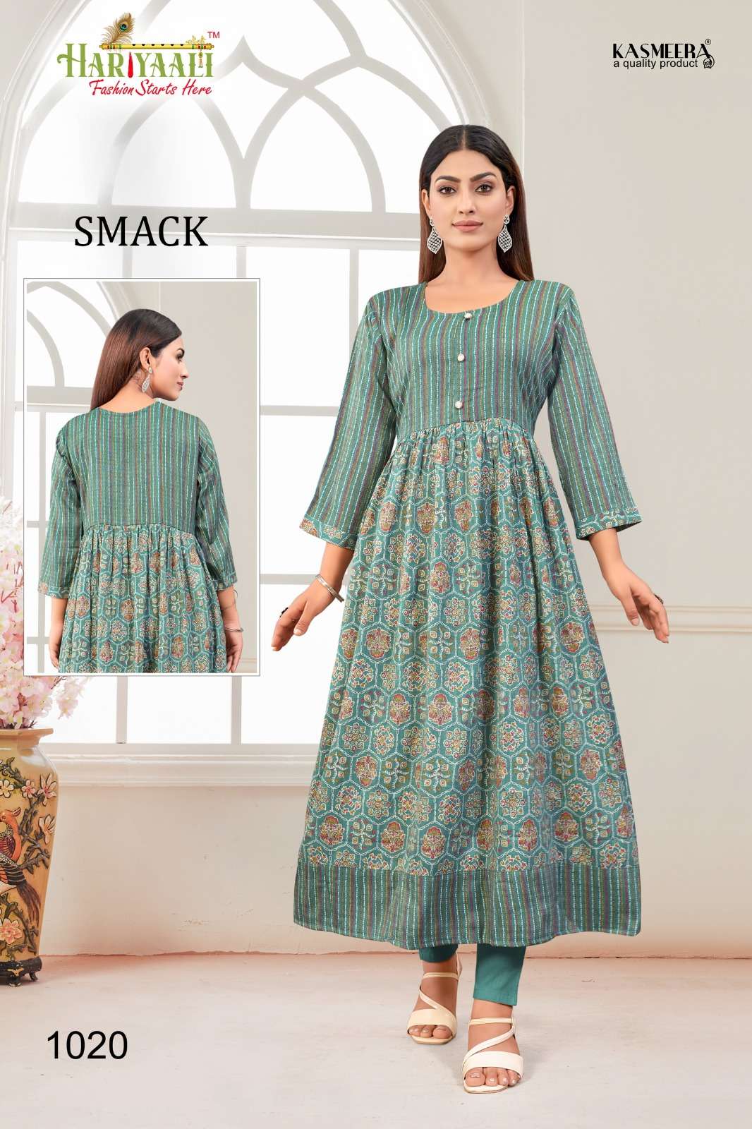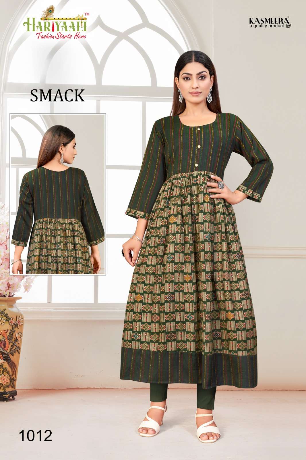 hariyaali smack vol 10 flair pattern anarkali kurti combo set