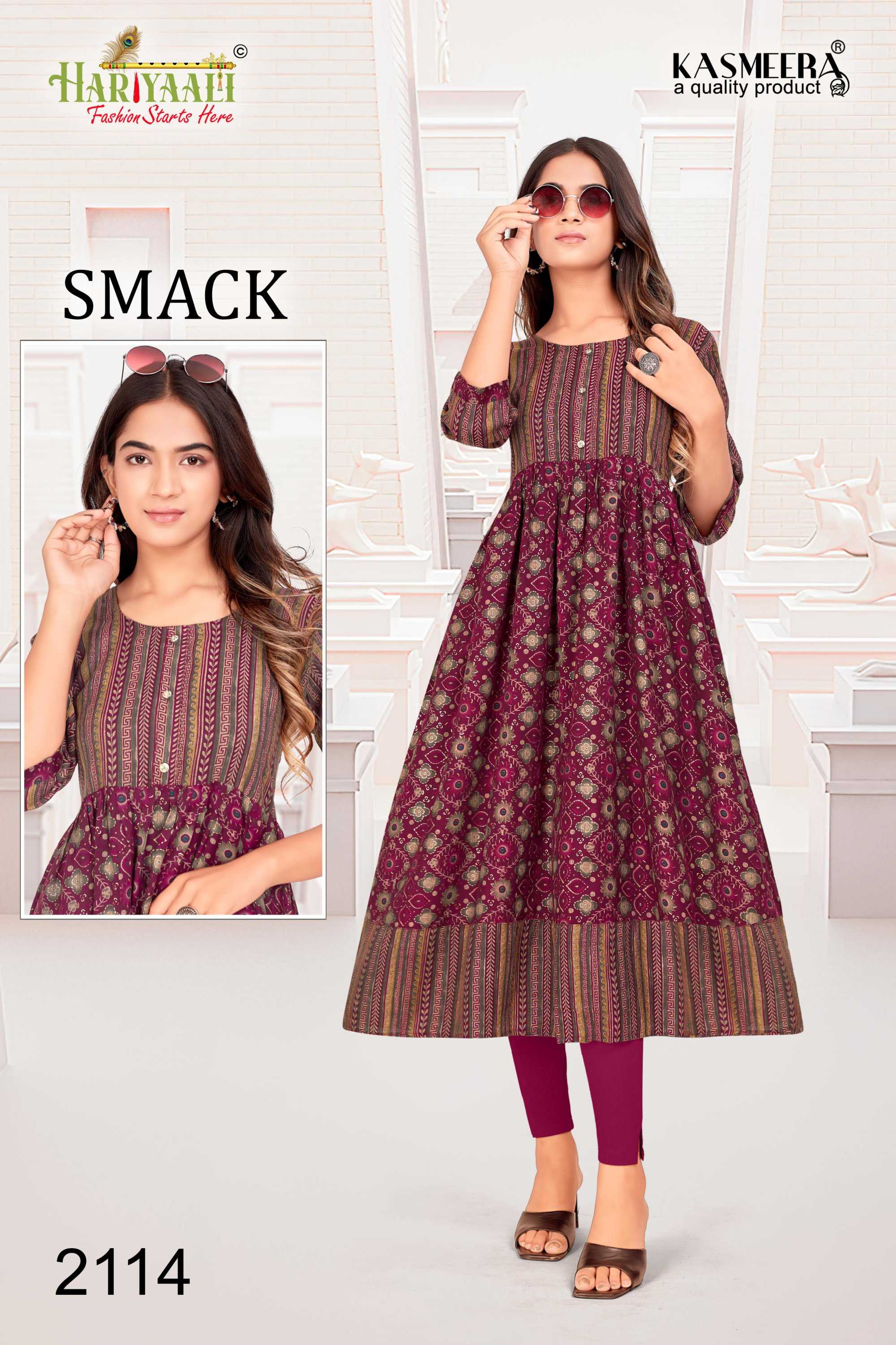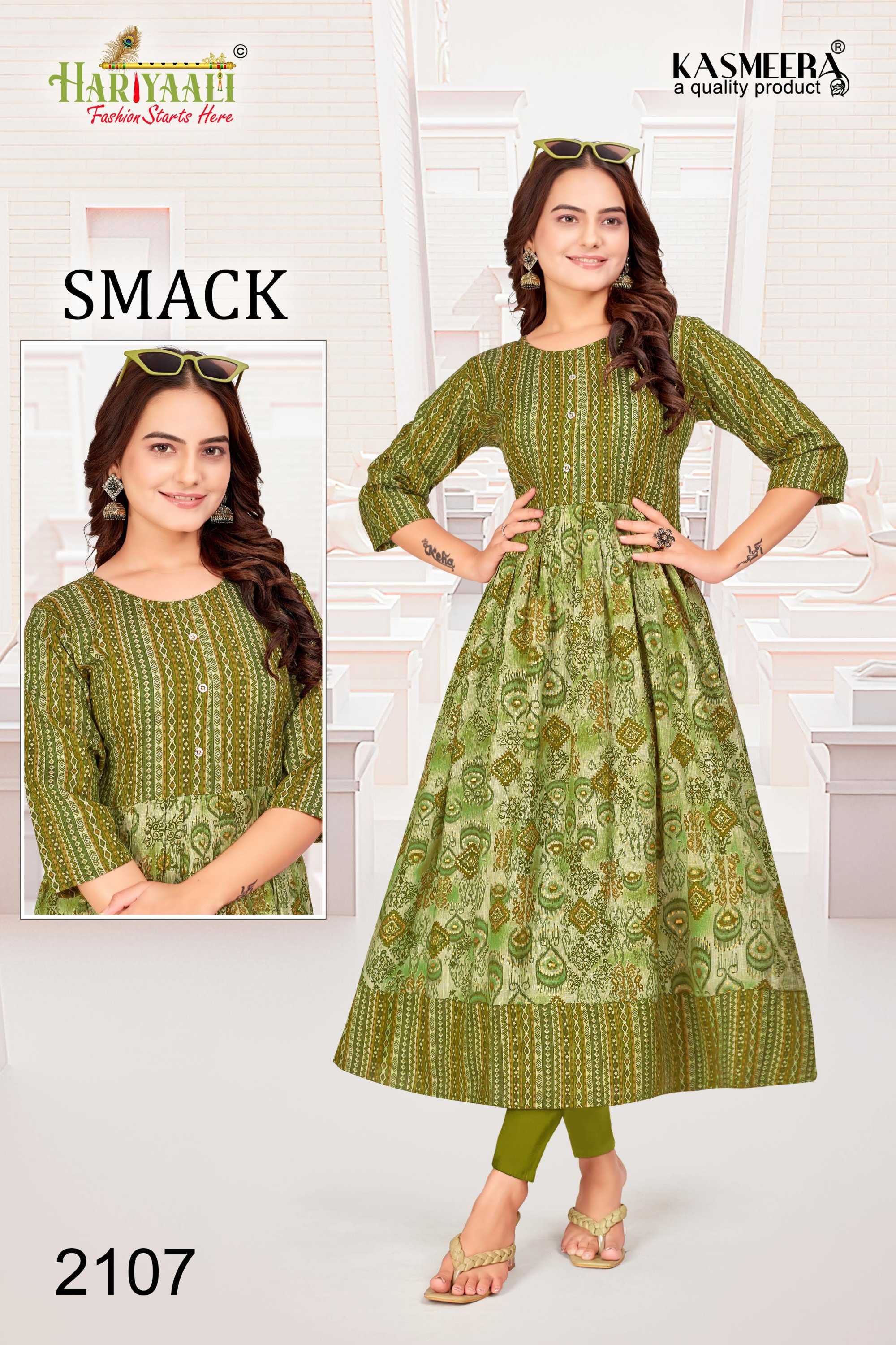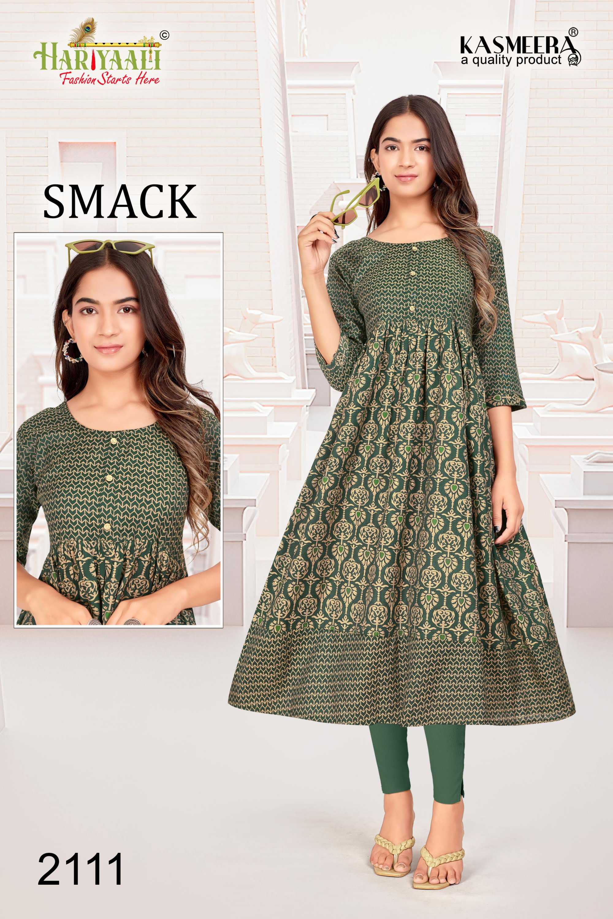 hariyaali smack vol 21 trendy design capsual foil print long kurti combo set