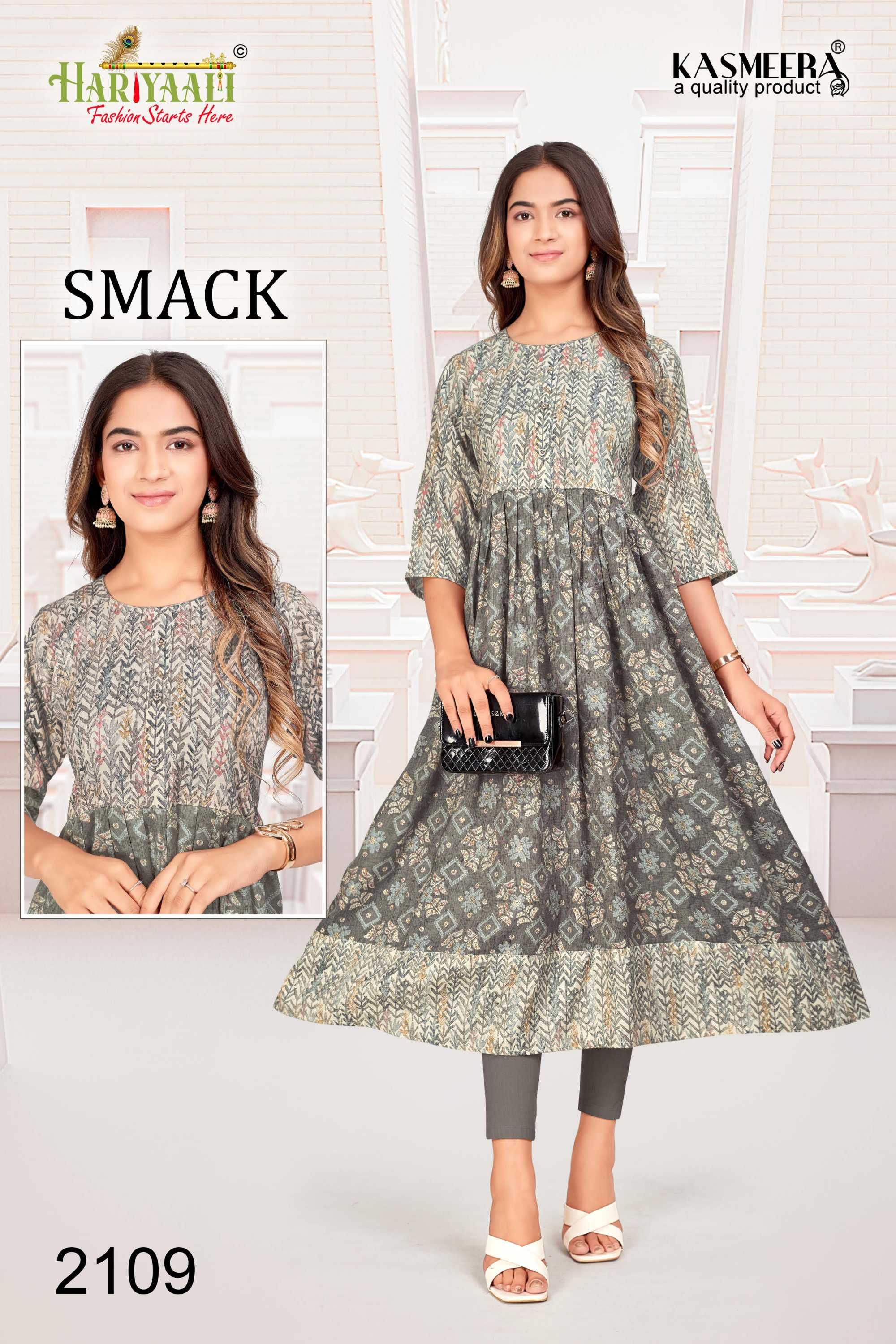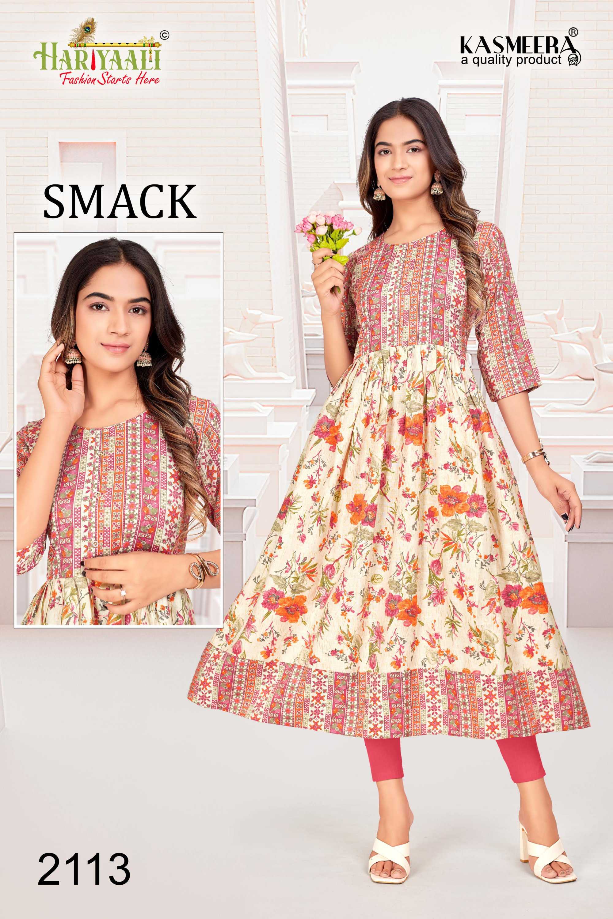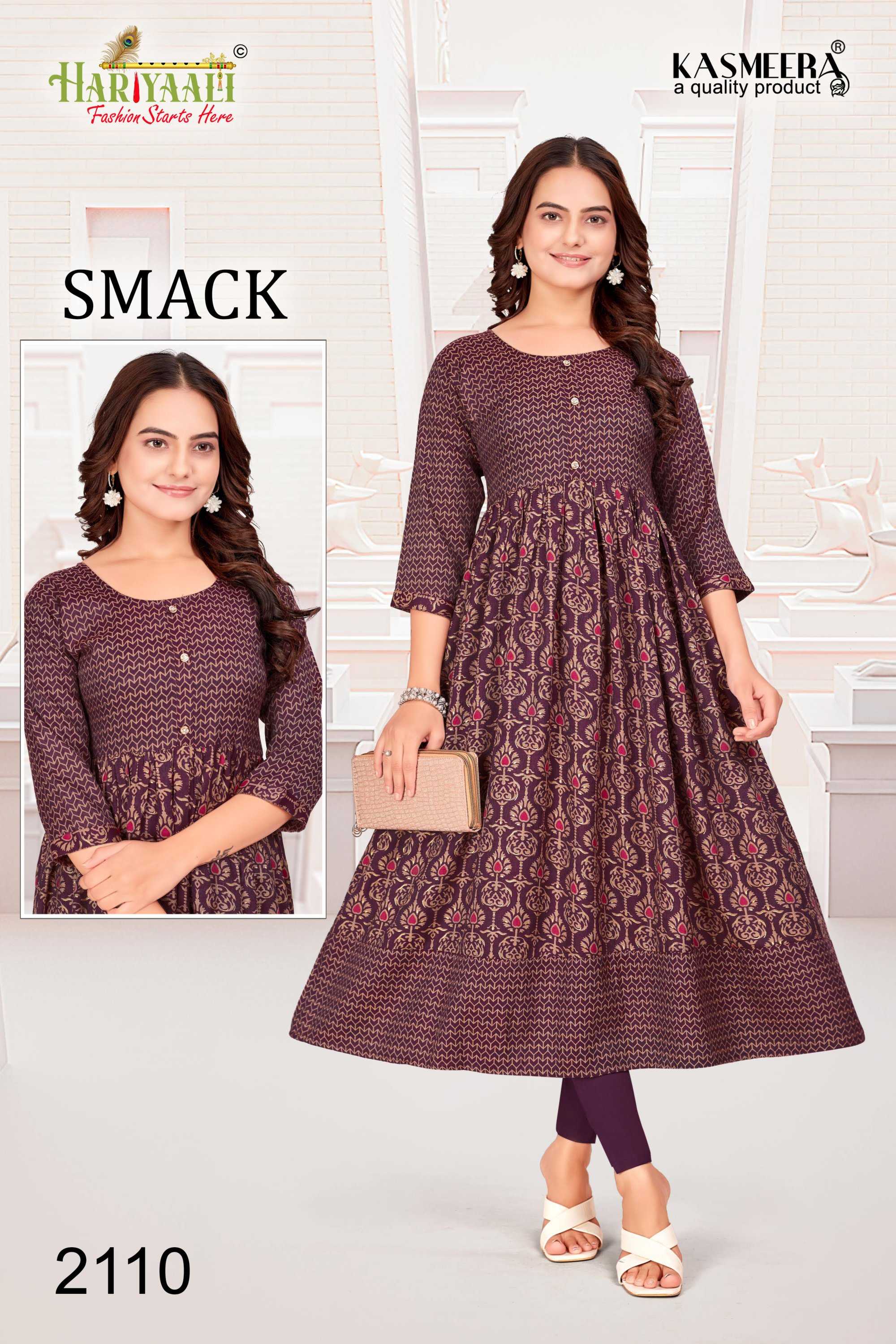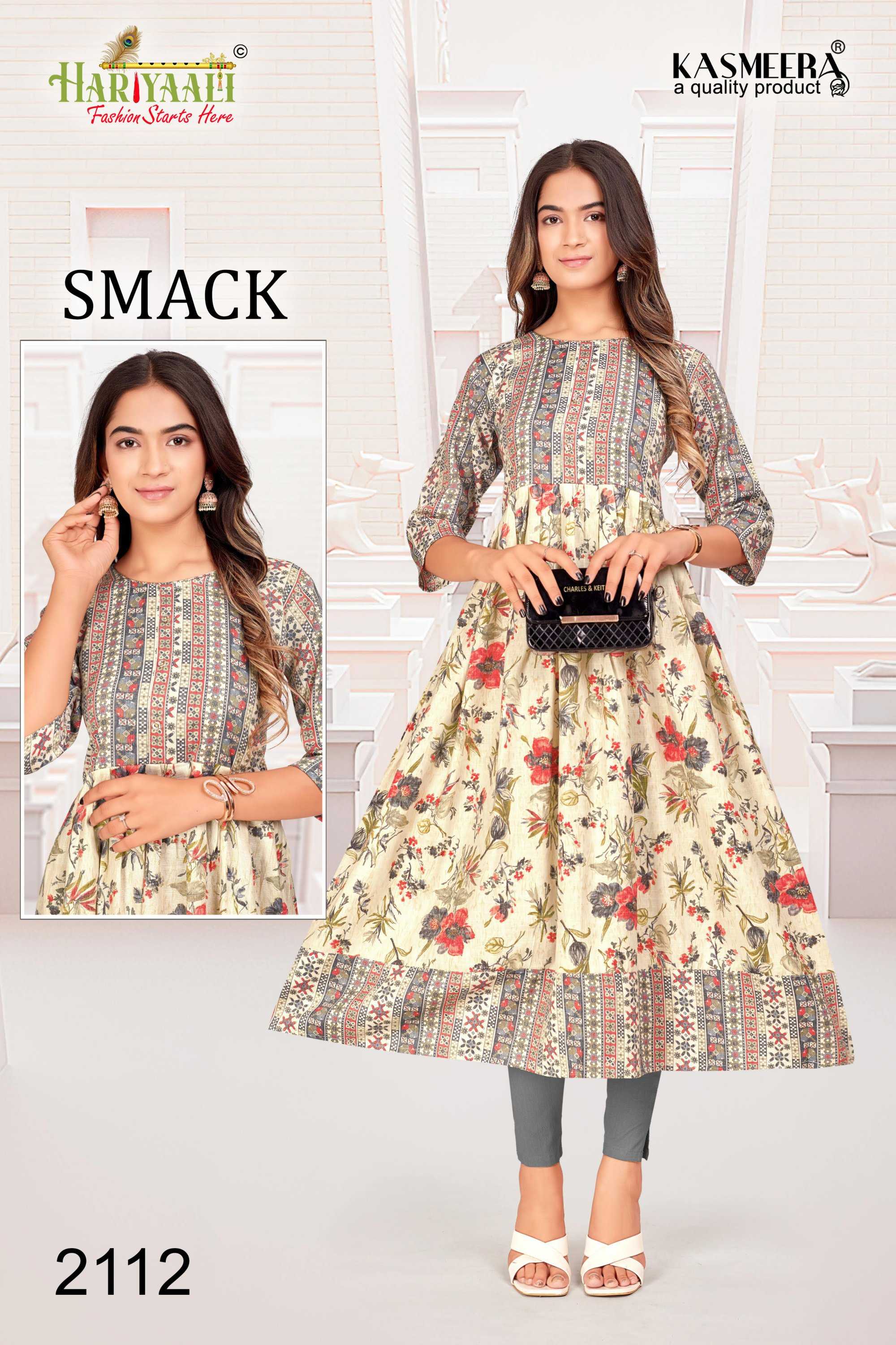 hariyaali smack vol 21 trendy design capsual foil print long kurti combo set