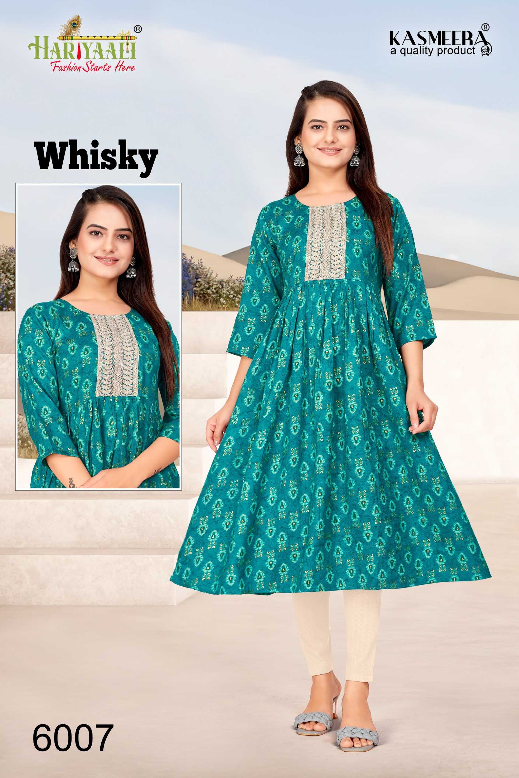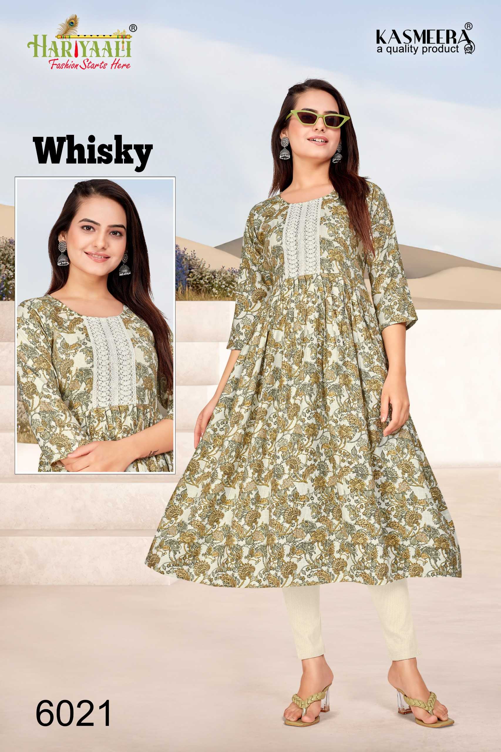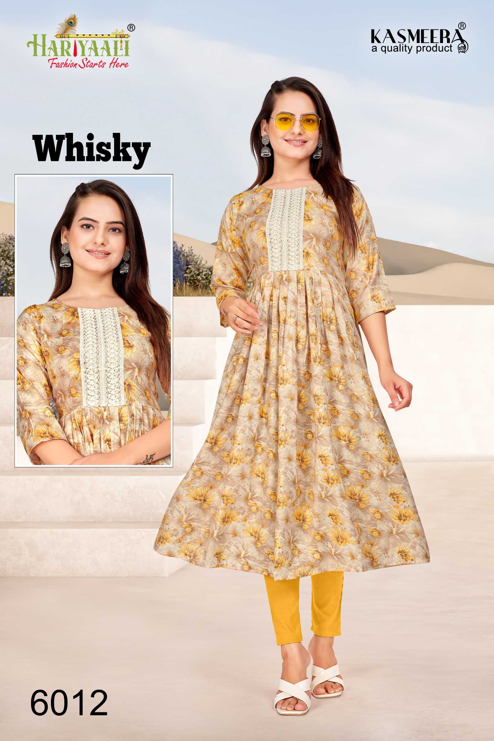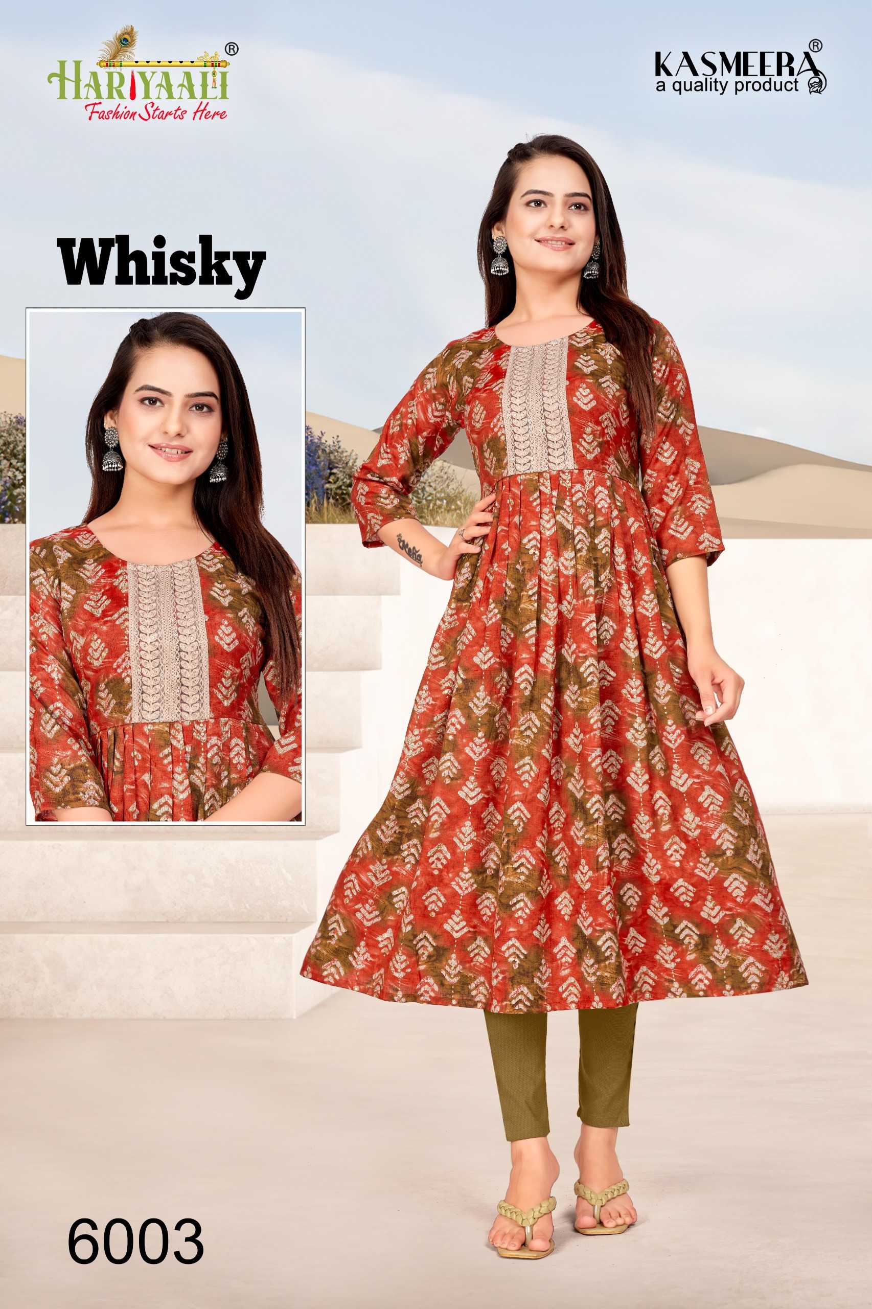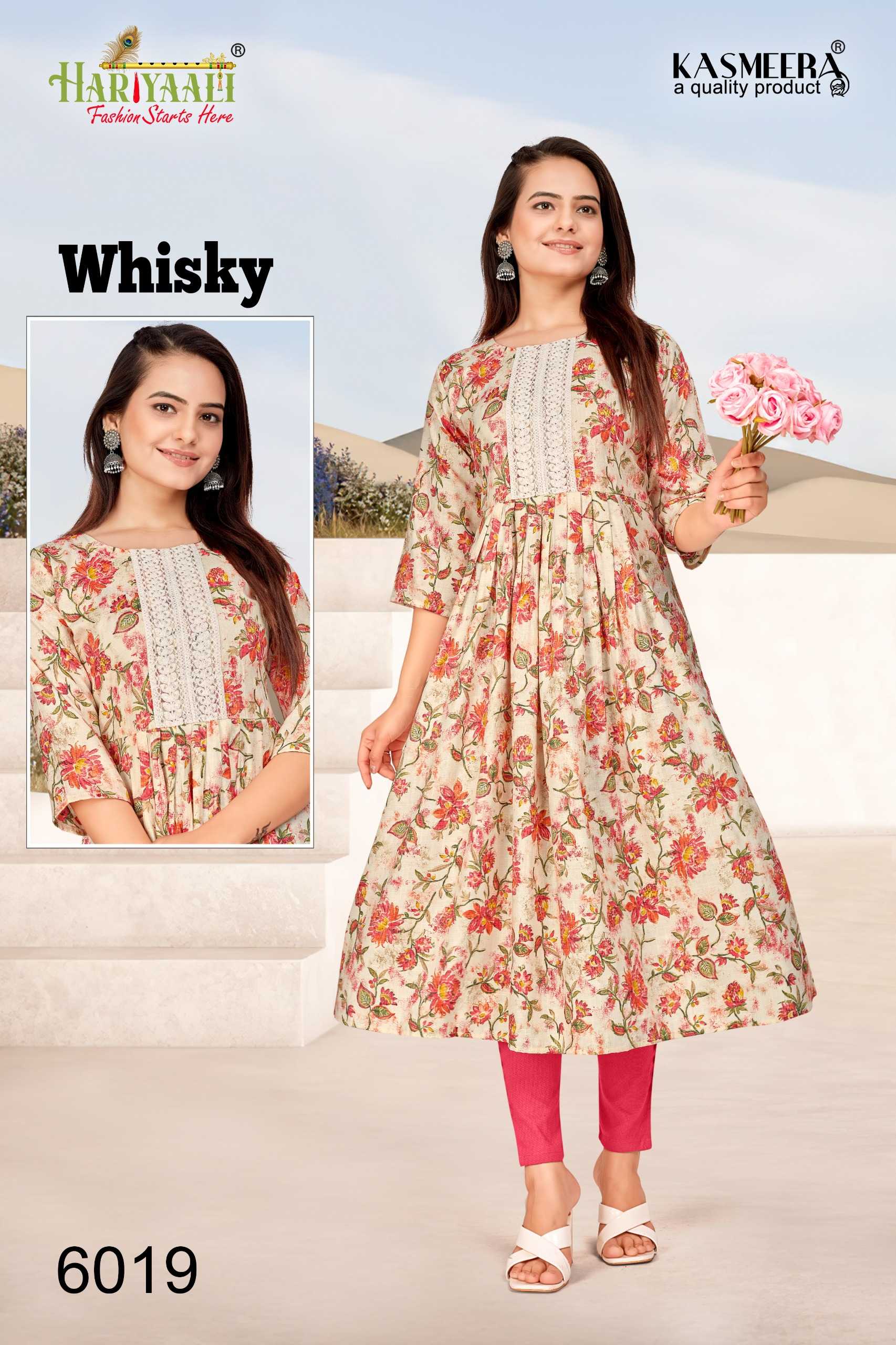 hariyaali whisky vol 6 readymade printed long flair kurti combo set