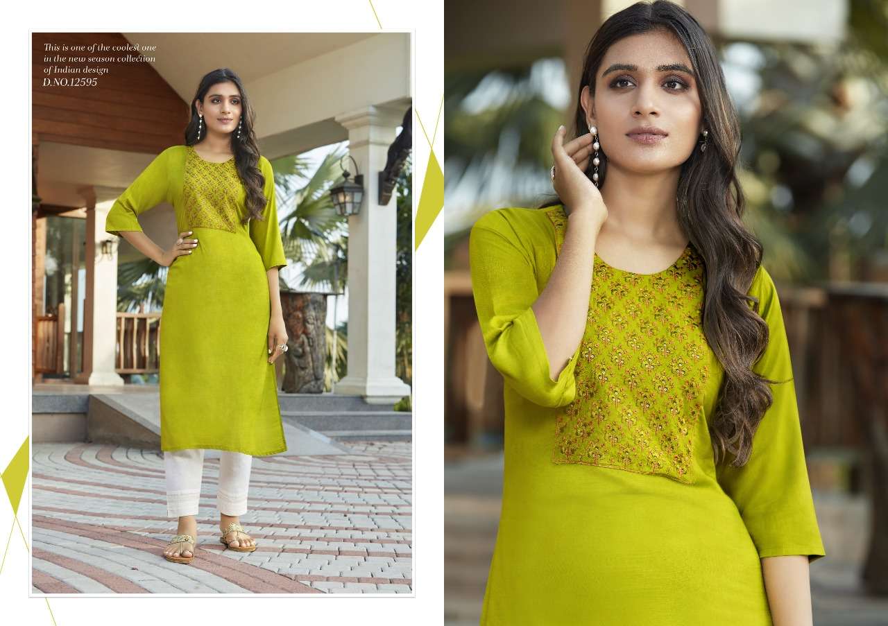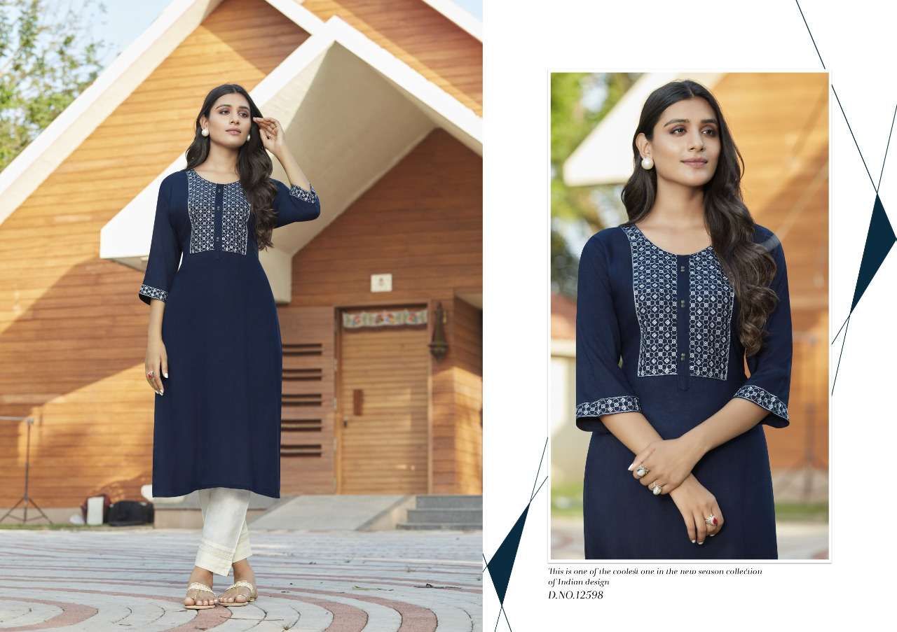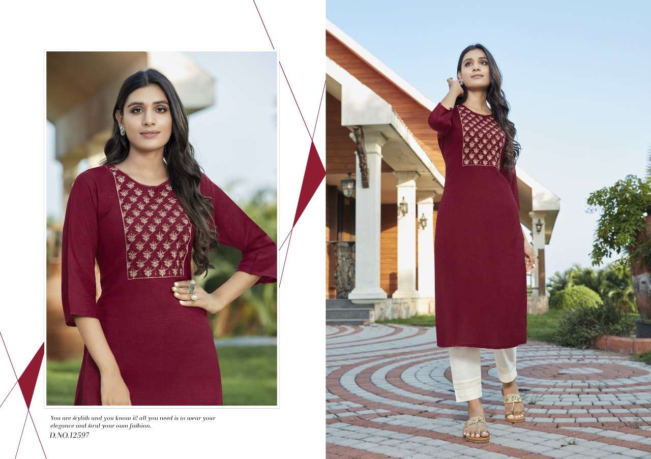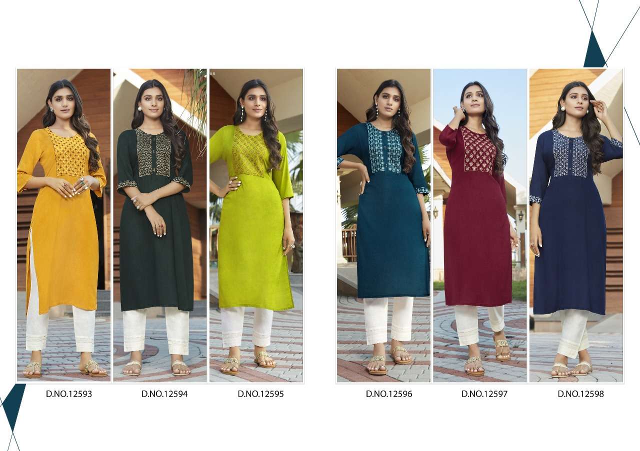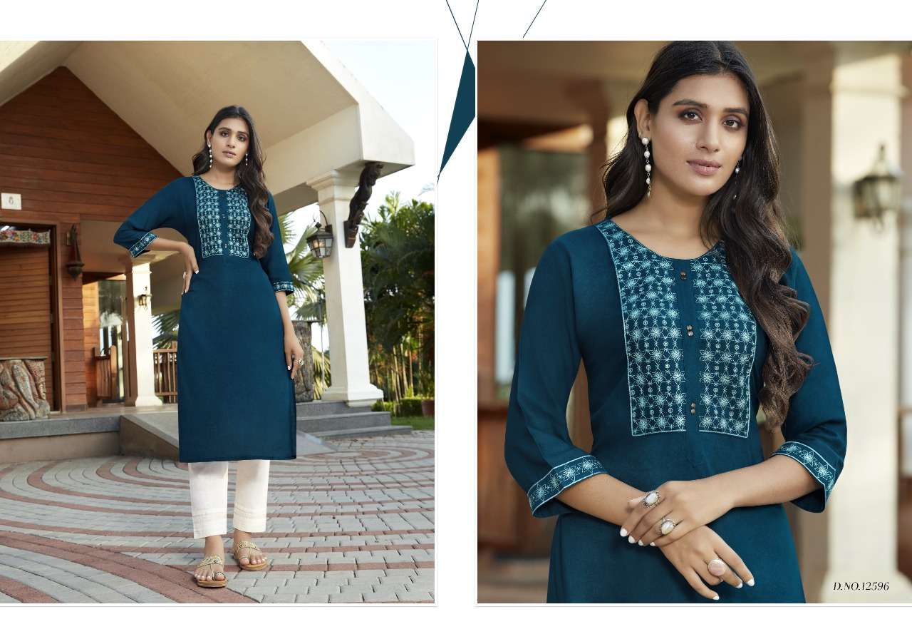 Harlee By Kalaroop Kivi Rayon Work Designer Kurtis