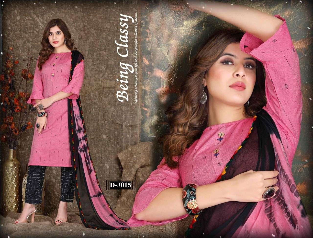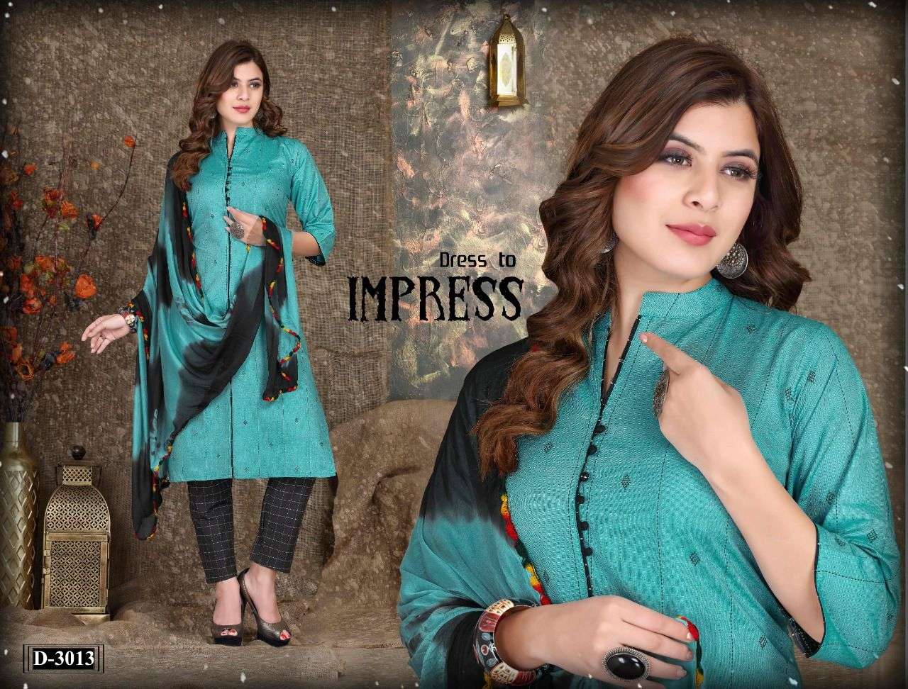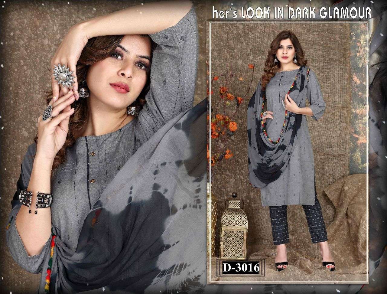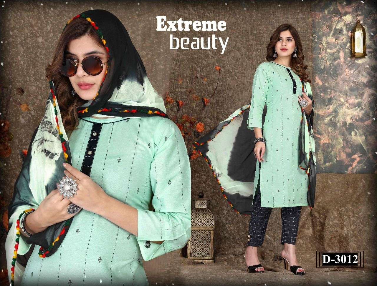 Name :-. Harline💎 Three piece Catlouge Fabrics:- Top:-. Cotton jekard Designs :- 06 Size:- M. L. XL. 2XL. 3XL LENGTH:- TOP :- 44 INCH Pattern:- Silia pattern STYLE:- Straight kurta, Rate :-. 481/- |