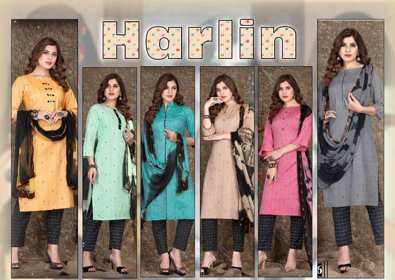 Harline HEAVY Top Cotton jekard Bottom :- Lurex 14 kg Rayon Duppata:- Nazmeen with 4 side fancy lace READYMADE SUIT CATALOG WHOLESALER BEST RATE