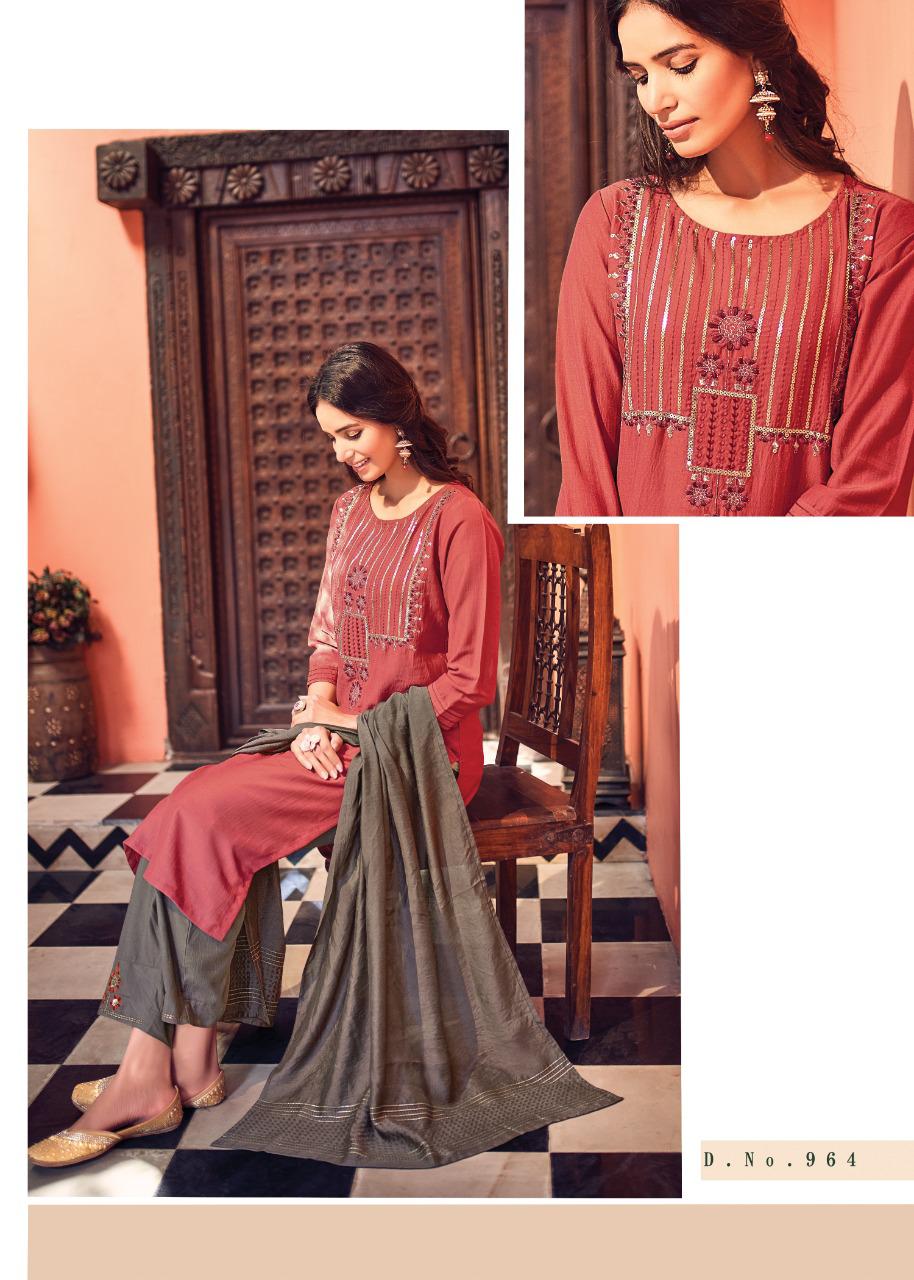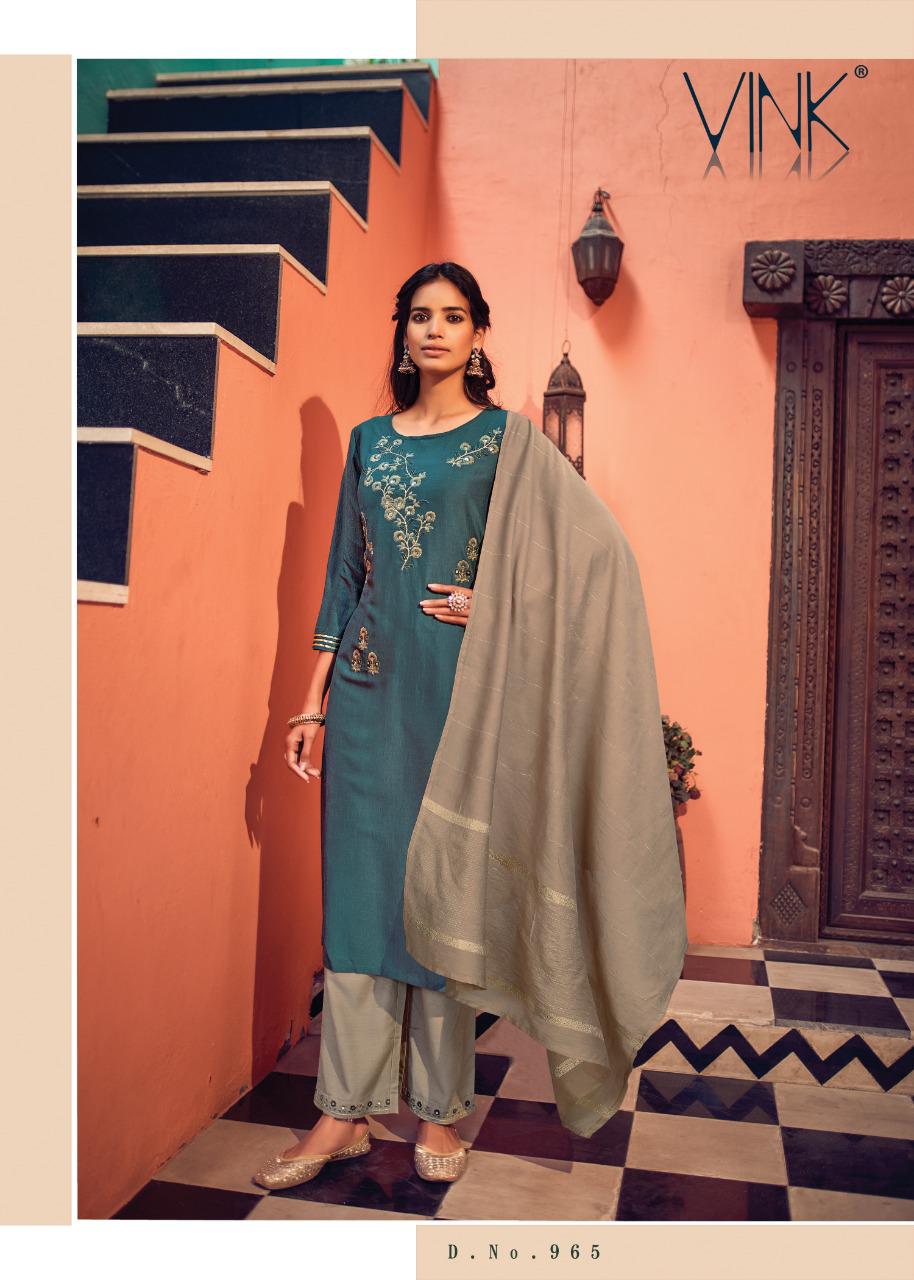 Harmony Vol 2 By Vink Viscose Silk Kurta With Muslin Plazzo And Dupatta Readymade Collection