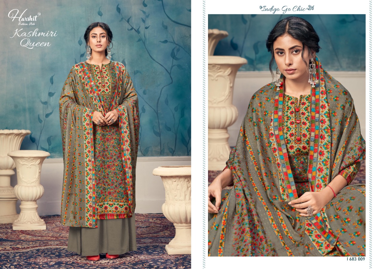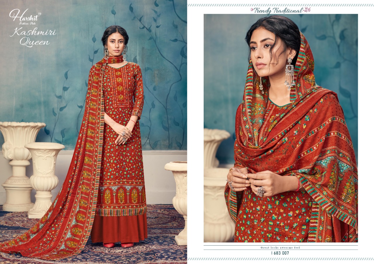 Harshit Fashion Kashmiri Queen Wool Pashmina Digital Print Casual Wear Dress Materials In Surat