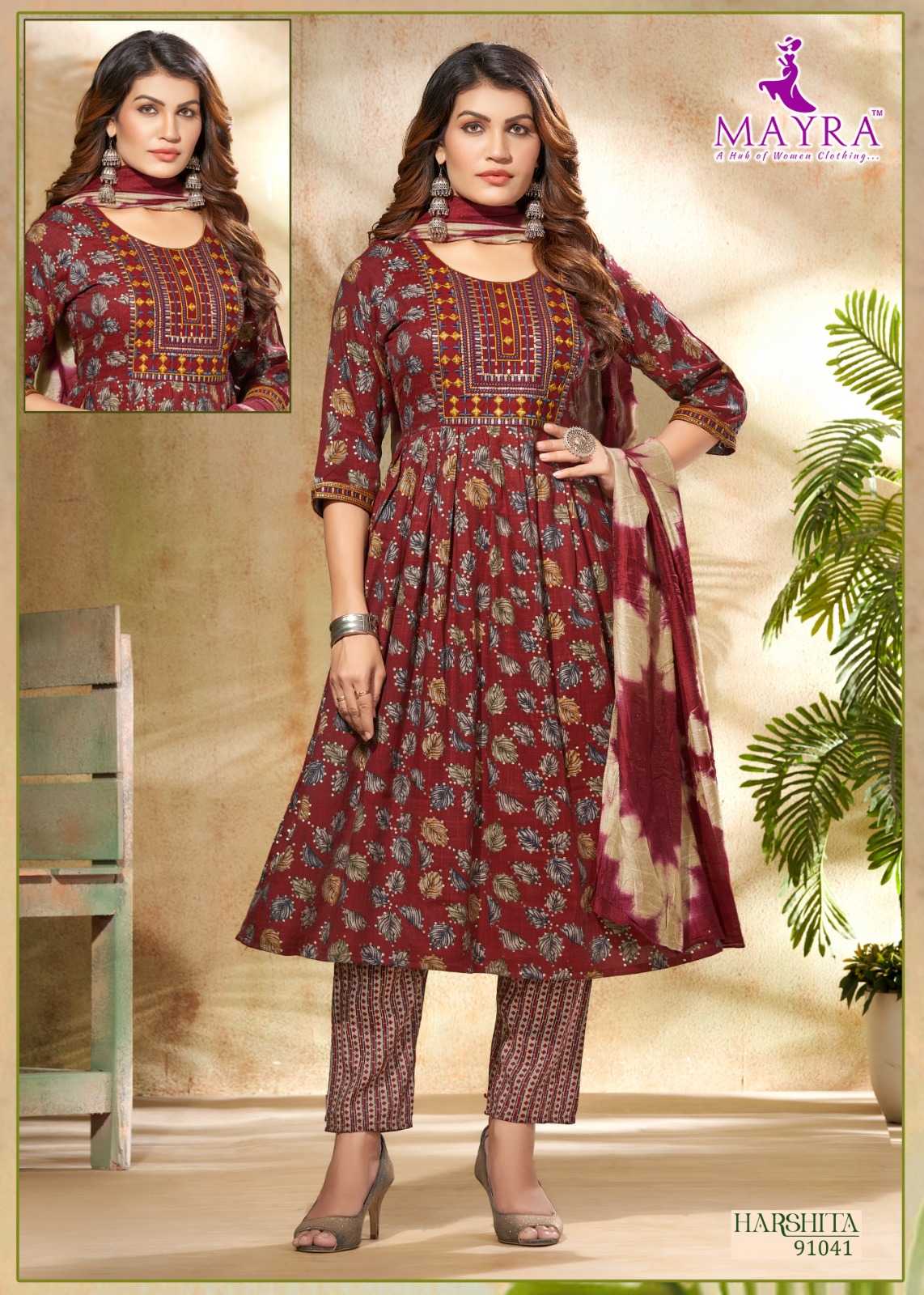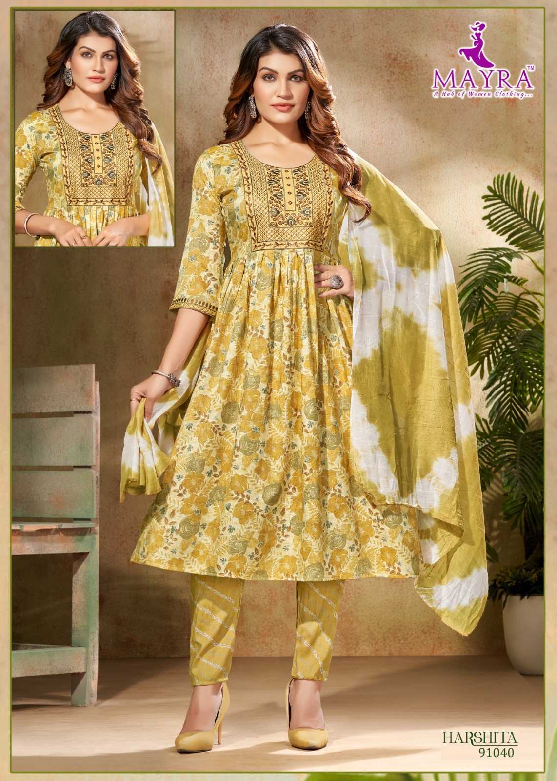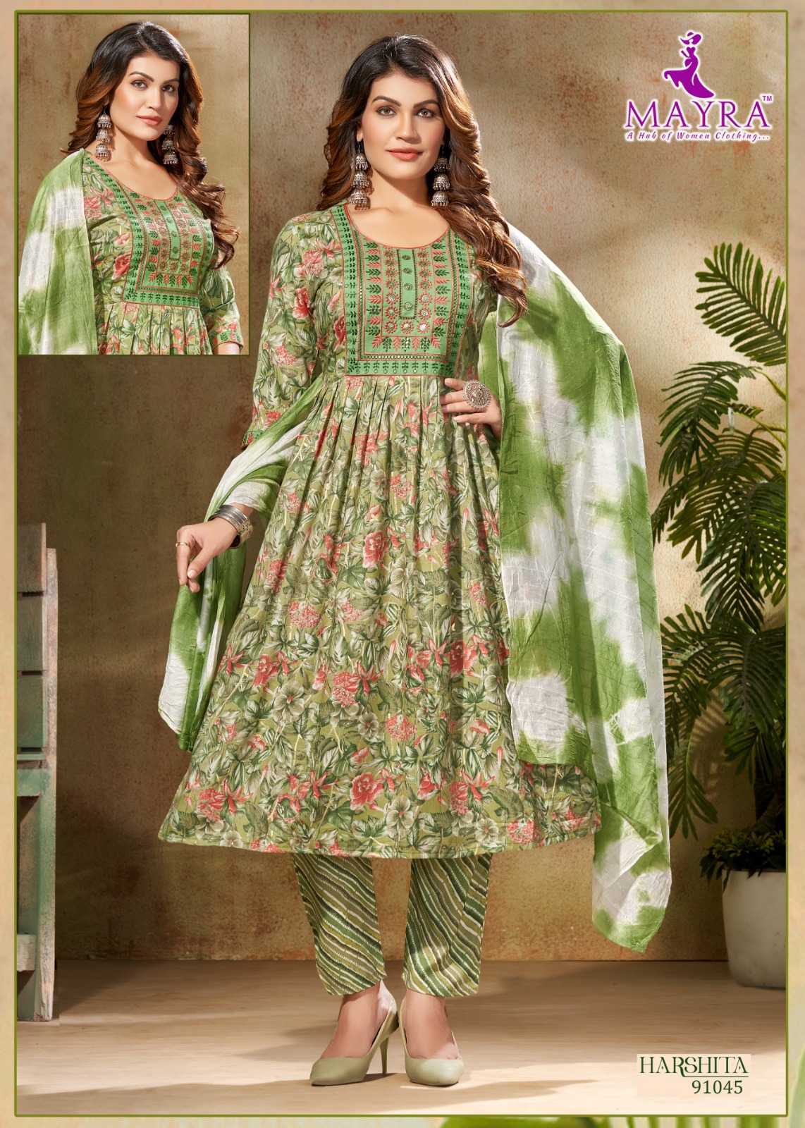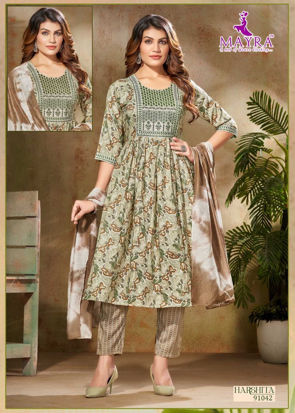 harshitha by mayra fashion capsule print full stitch elegant style 3pcs dress