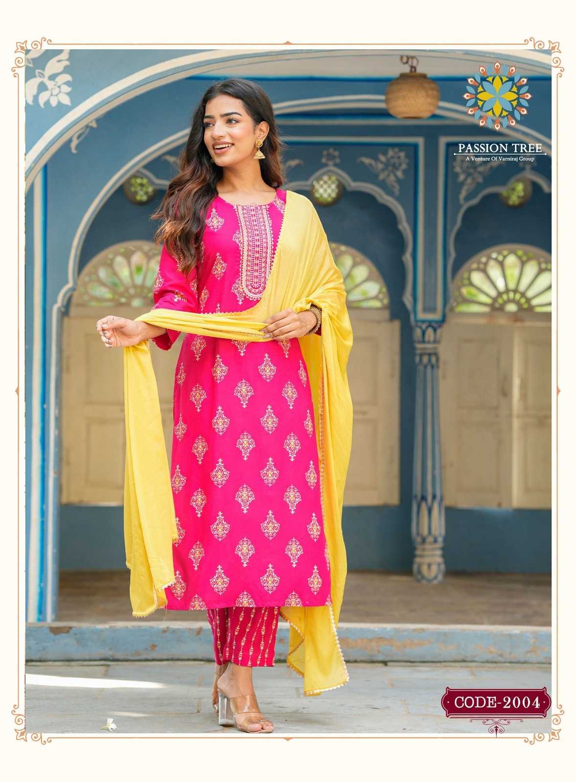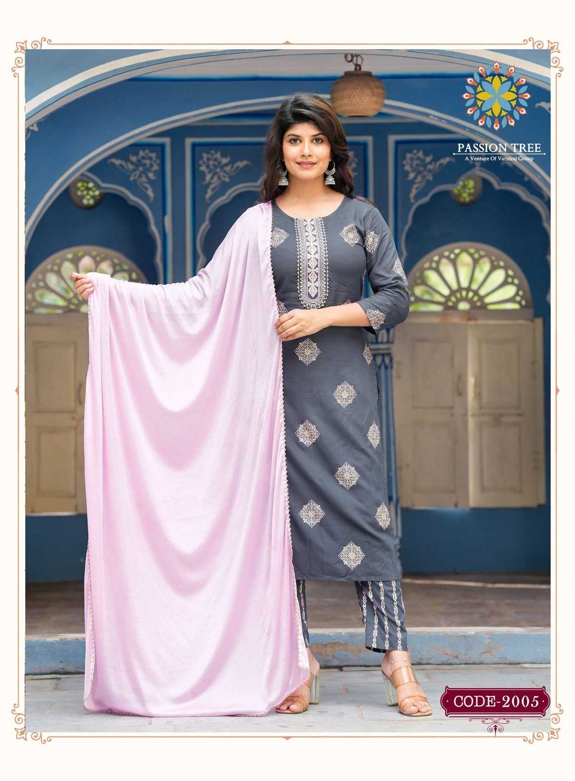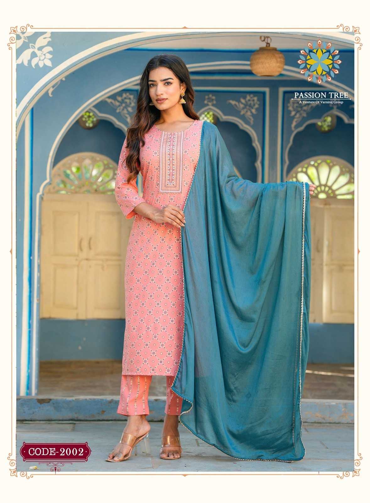 harvi vol 2 by passion tree classy straight kurti with pant and chinon dupatta catalog