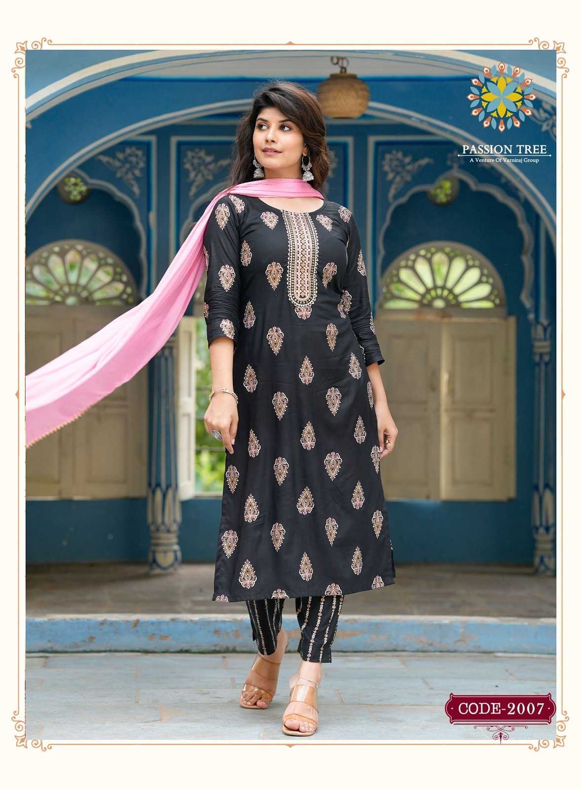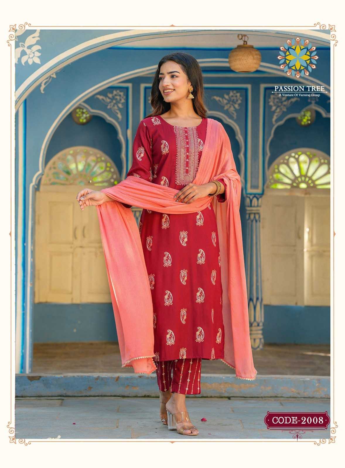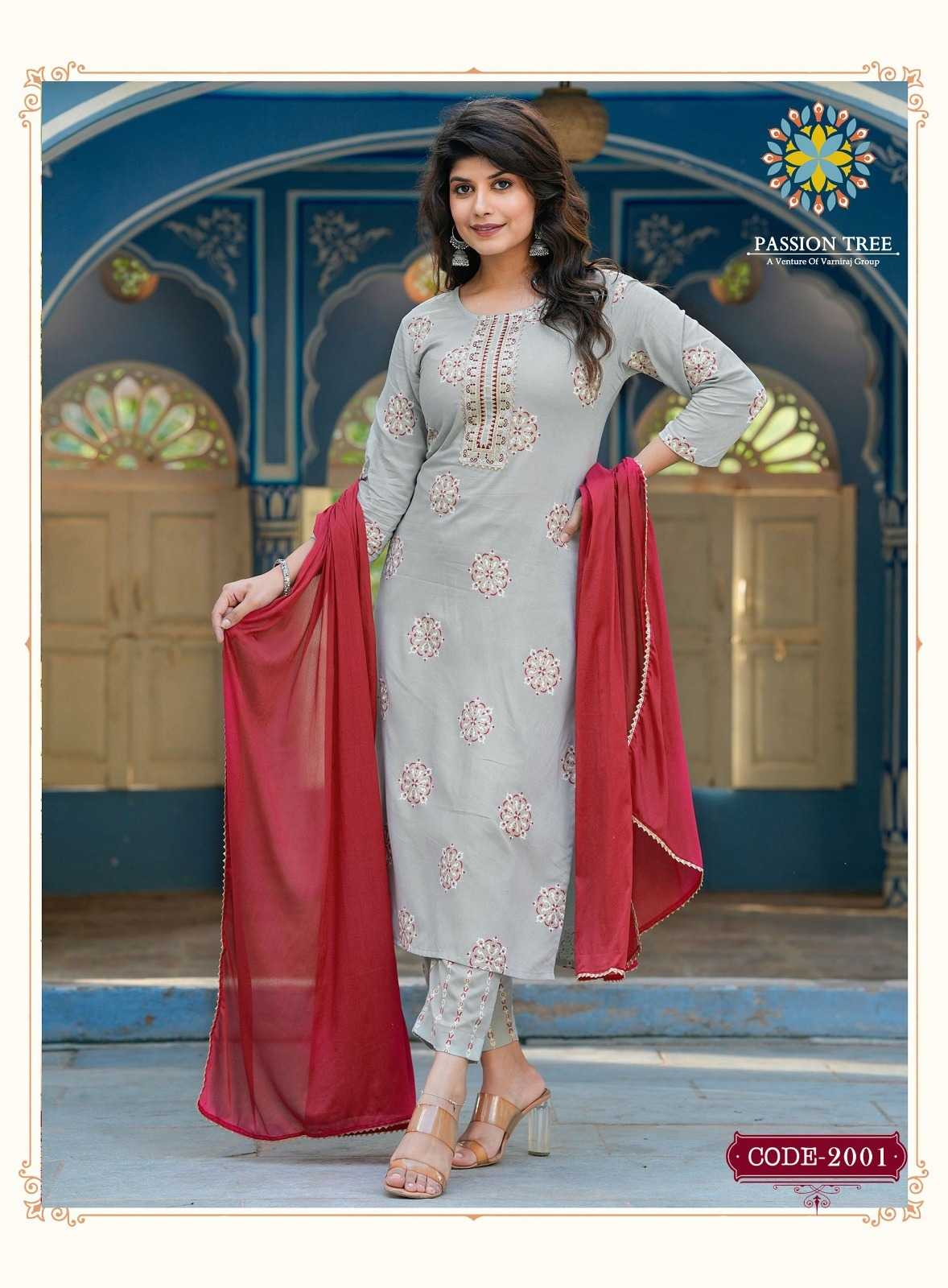 harvi vol 2 by passion tree classy straight kurti with pant and chinon dupatta catalog