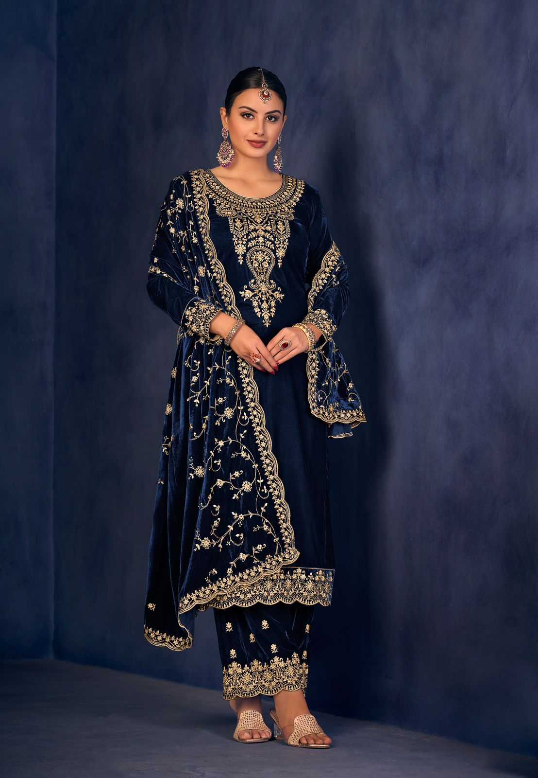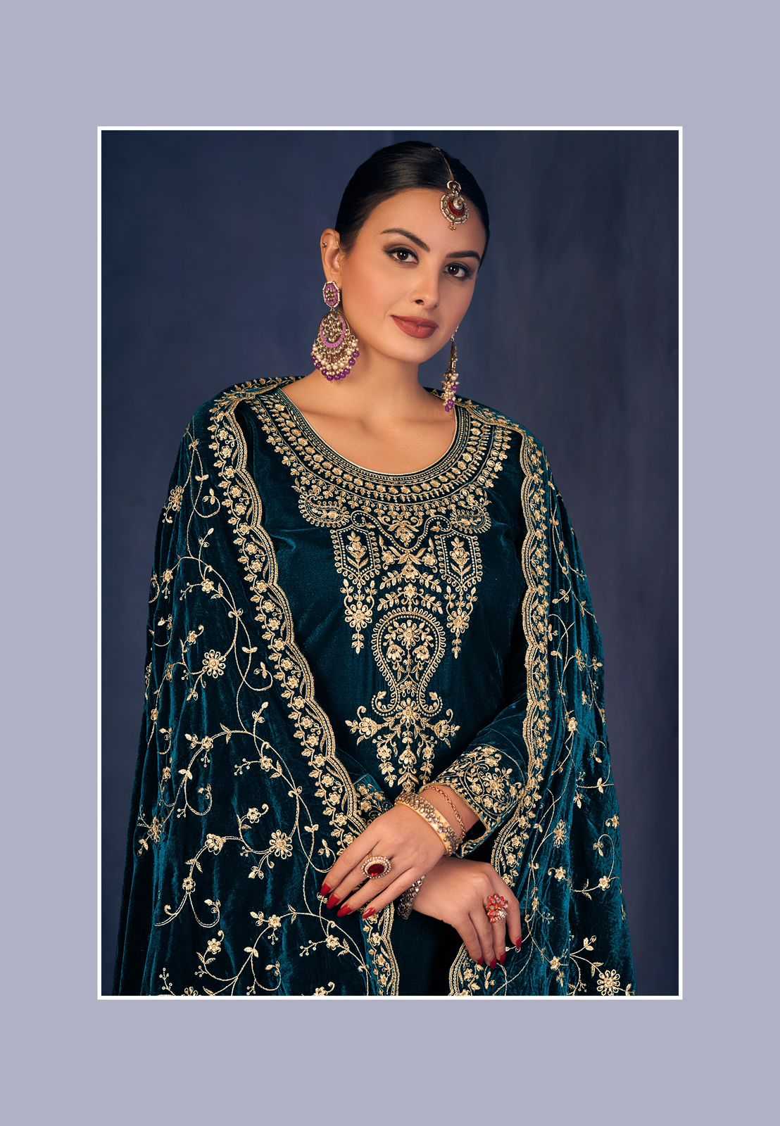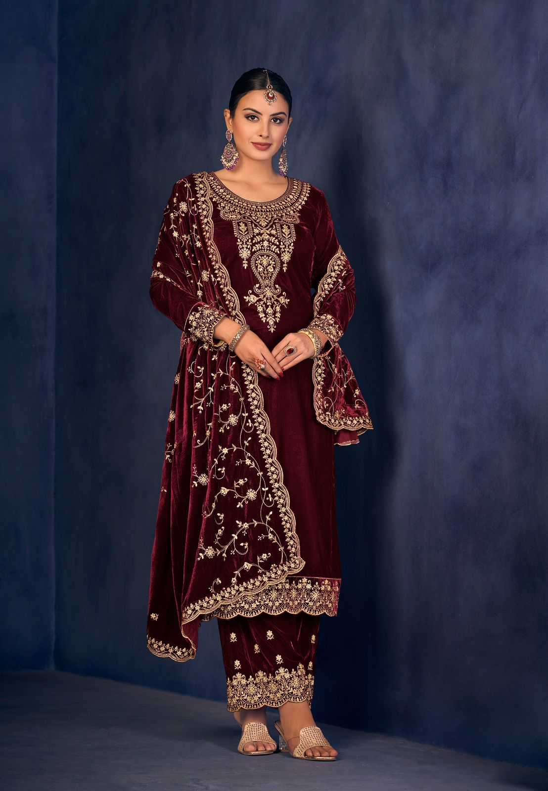 THANK YOU FOR YOUR SUPPORT, CATALOGUE NAME:- FABRIC DETAILS :- TOP :- PURE VELVET WITH HEAVY EMBROIDERY NECK DAMAN SLEEVES WITH CUTWORK DUPATTA :- PURE VELVET WITH HEAVY EMBROIDERY FULL DUPATTA WITH CUTWORK BIG WIDTH(44 PANNA) BOTTOM :- PURE VELVET DYED SOLID WITH HEAVY EMBROIDERY WITH CUTWORK PCS:-4 REGARDS |