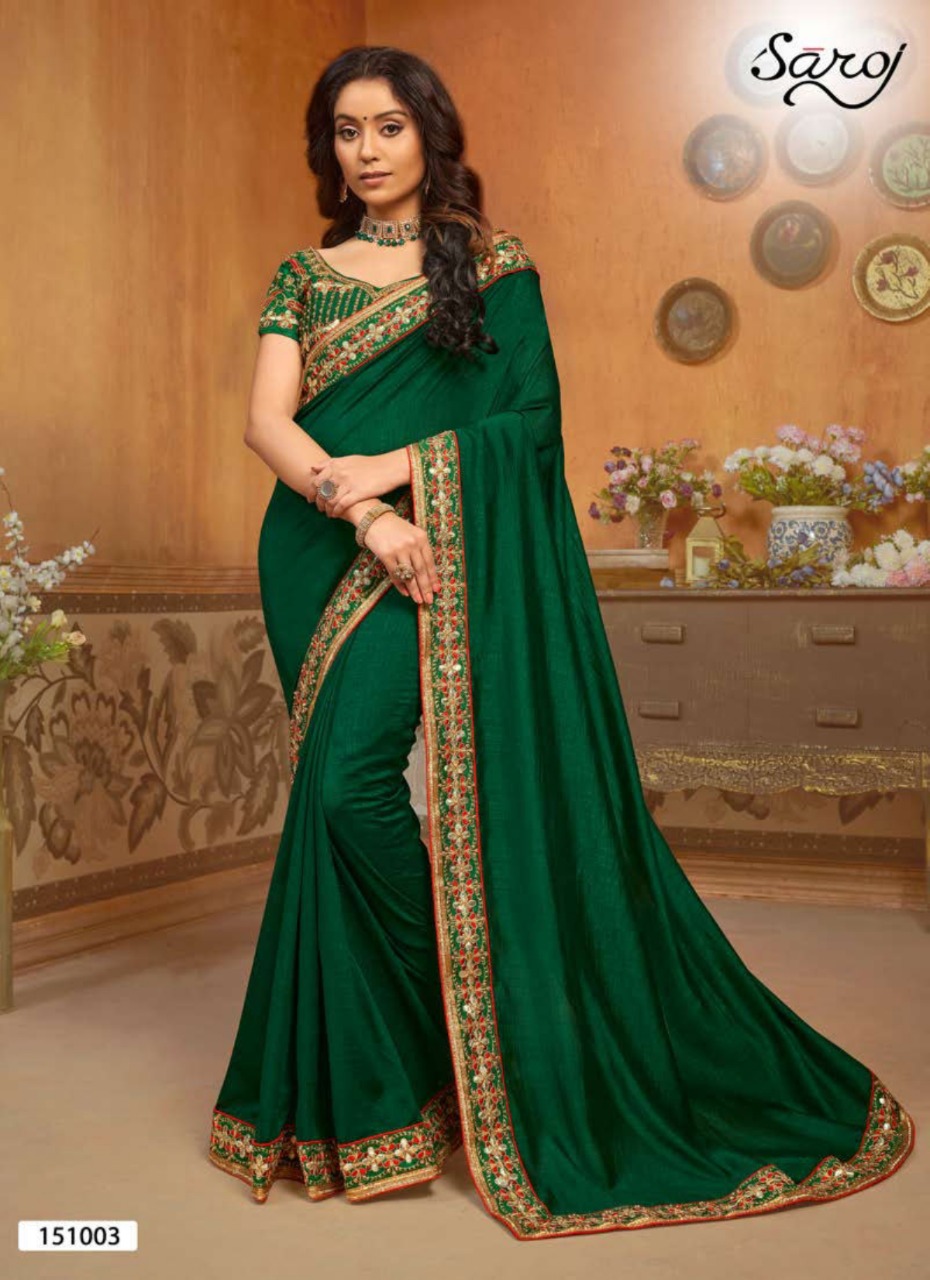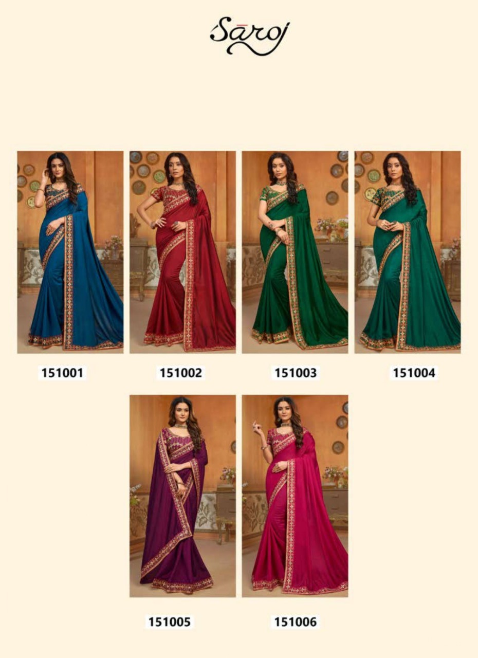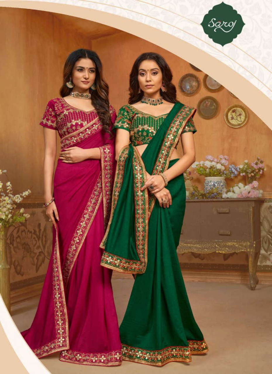 Rate- 1265 per pcs . Set to set . Fabric: Vichtra Silk with Heavy Border. Blouse: Silk, Heavy Emb. Work. 6 Designs in set . Delivery from tomorrow |