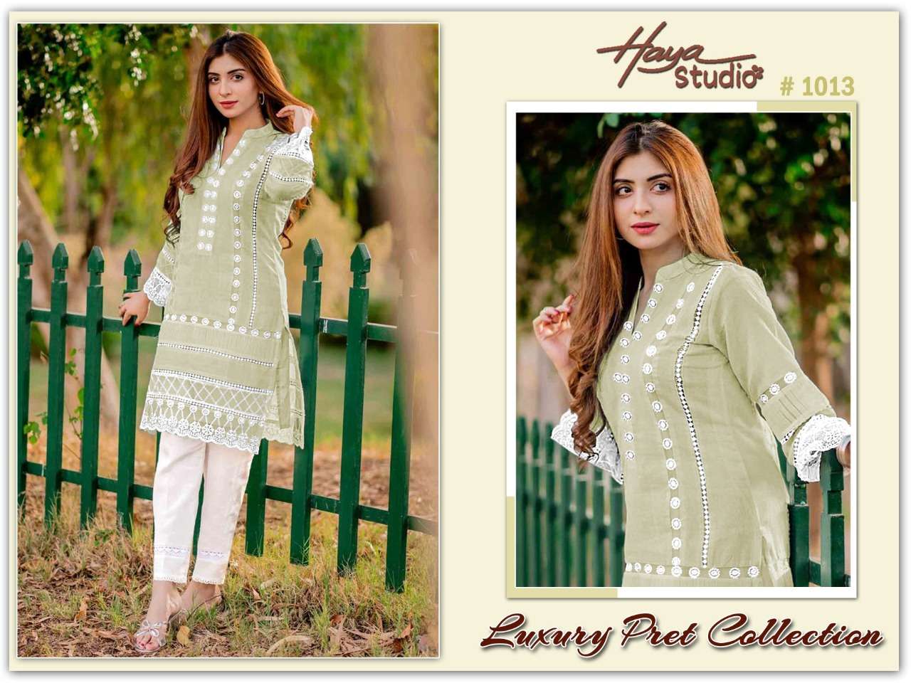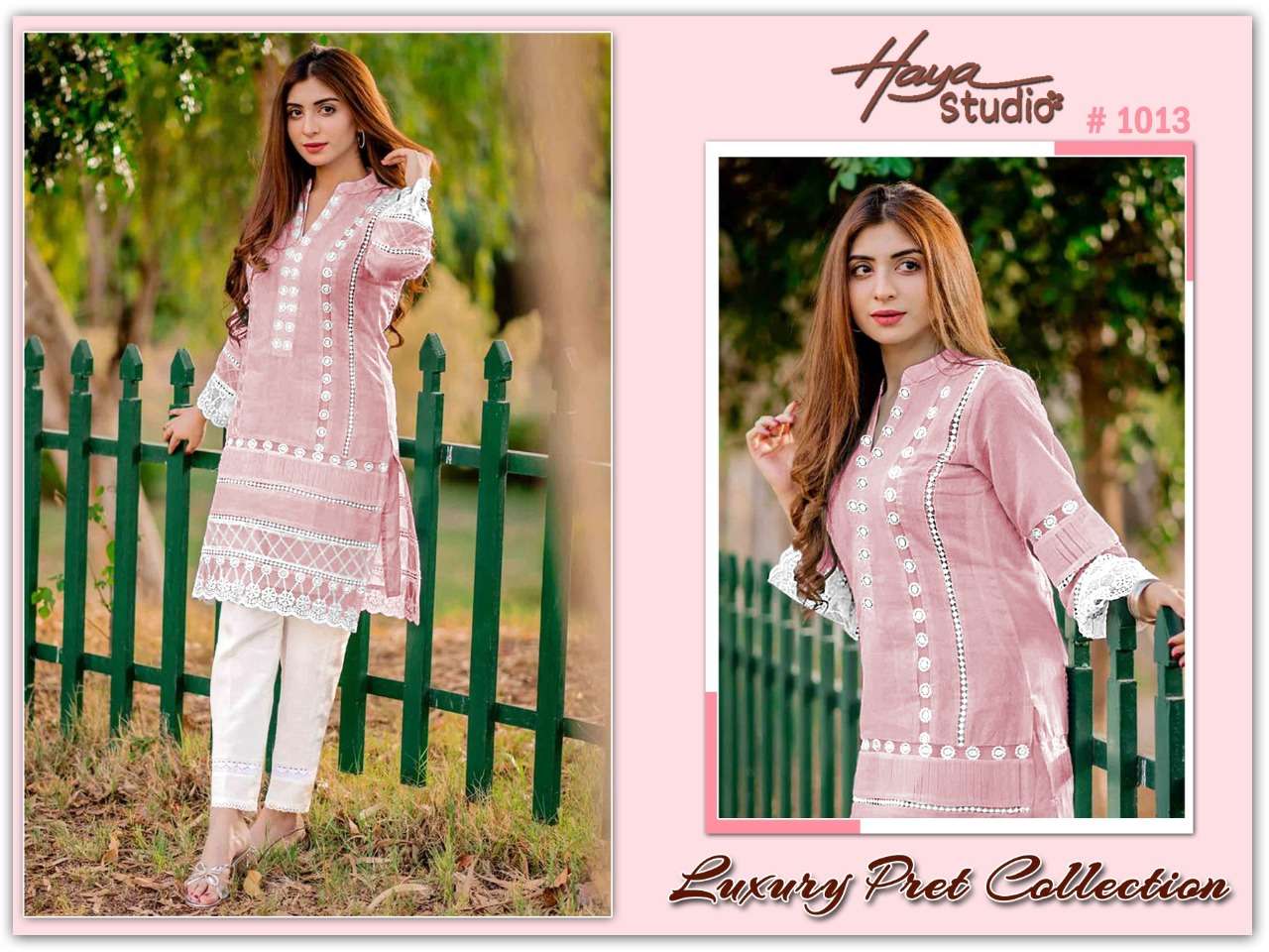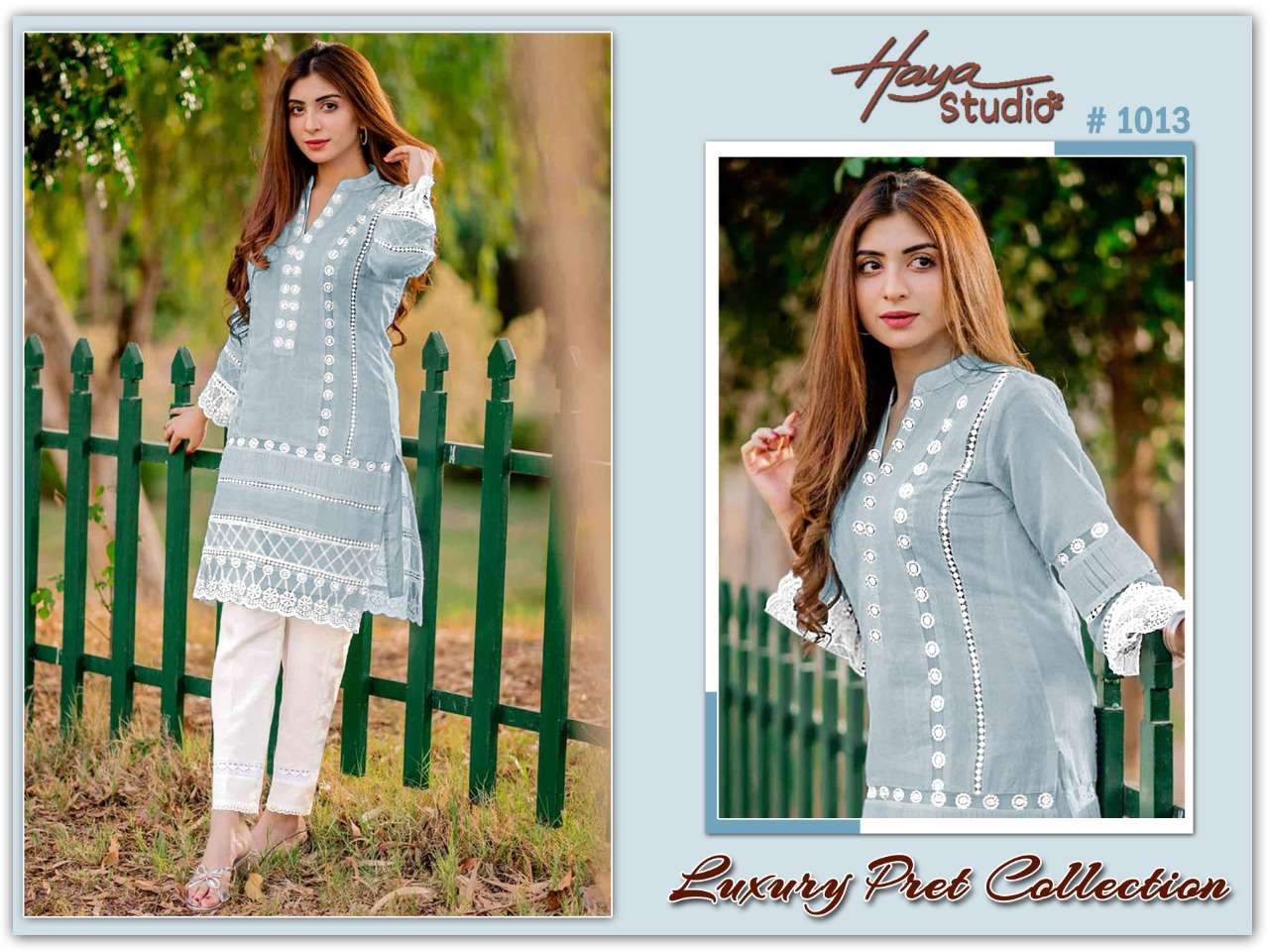 haya studio d no 1013 georgette pakistani readymade kurti with bottom