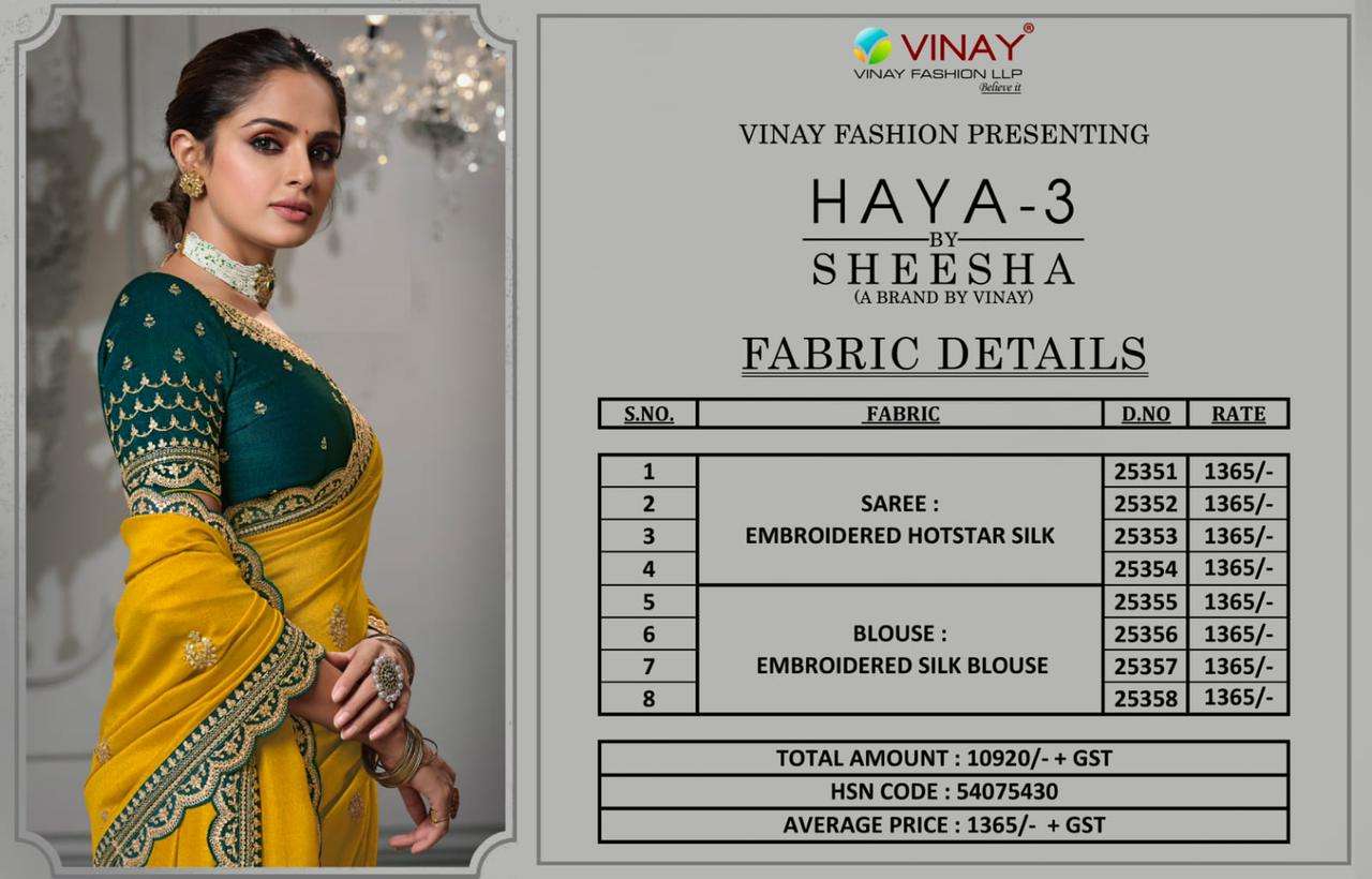 haya vol 3 by vinay fashion silk embroidery elegant fancy saree at kc