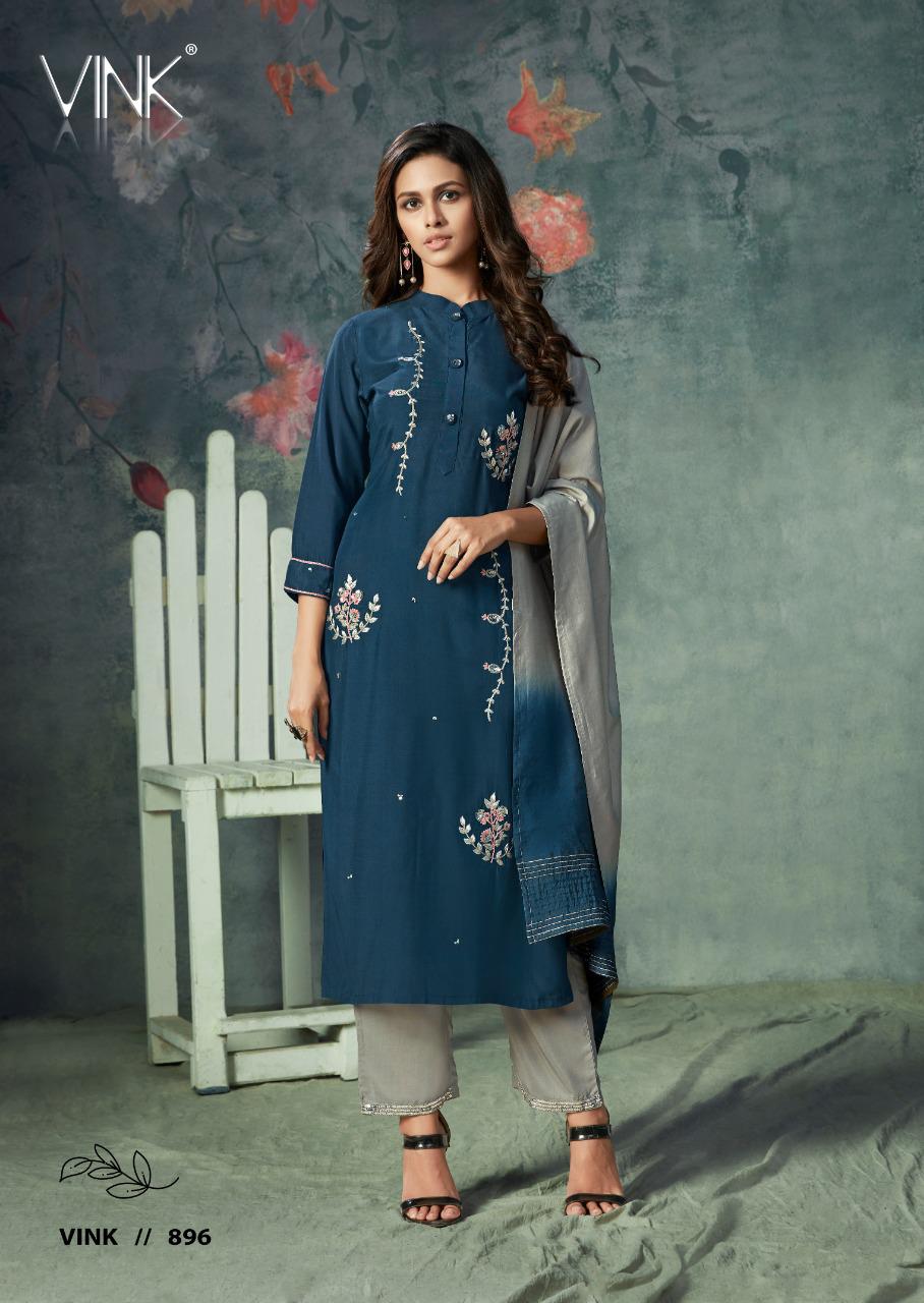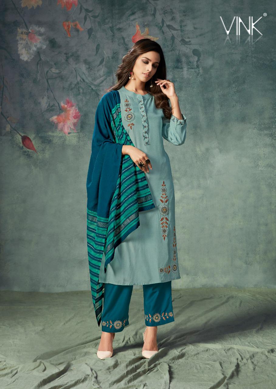 Hazel By Vink Pure Viscose Readymade Kurta Pant And Dupatta Combination