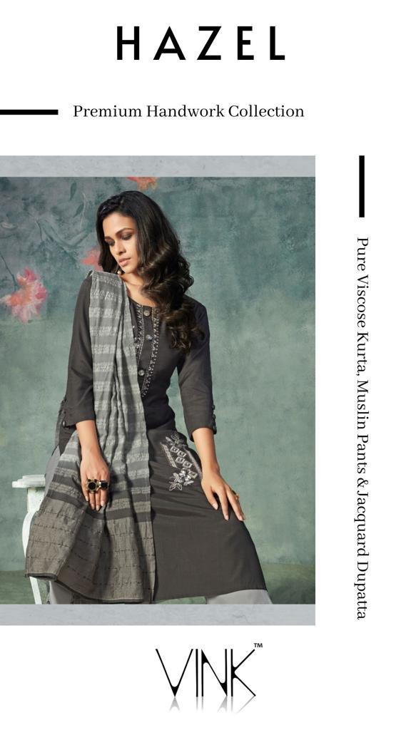 HAZEL BY VINK Kurta + Pants + Dupatta 6 DESIGNS Fabric - Pure Viscose Kurta with Handwork & Embroidery. Pants with Handwork & Embroidery. Pure Jacquard Dupatta Dyed & Shaded. Rate - ₹ 1199/- M, L, XL, 2XL. |