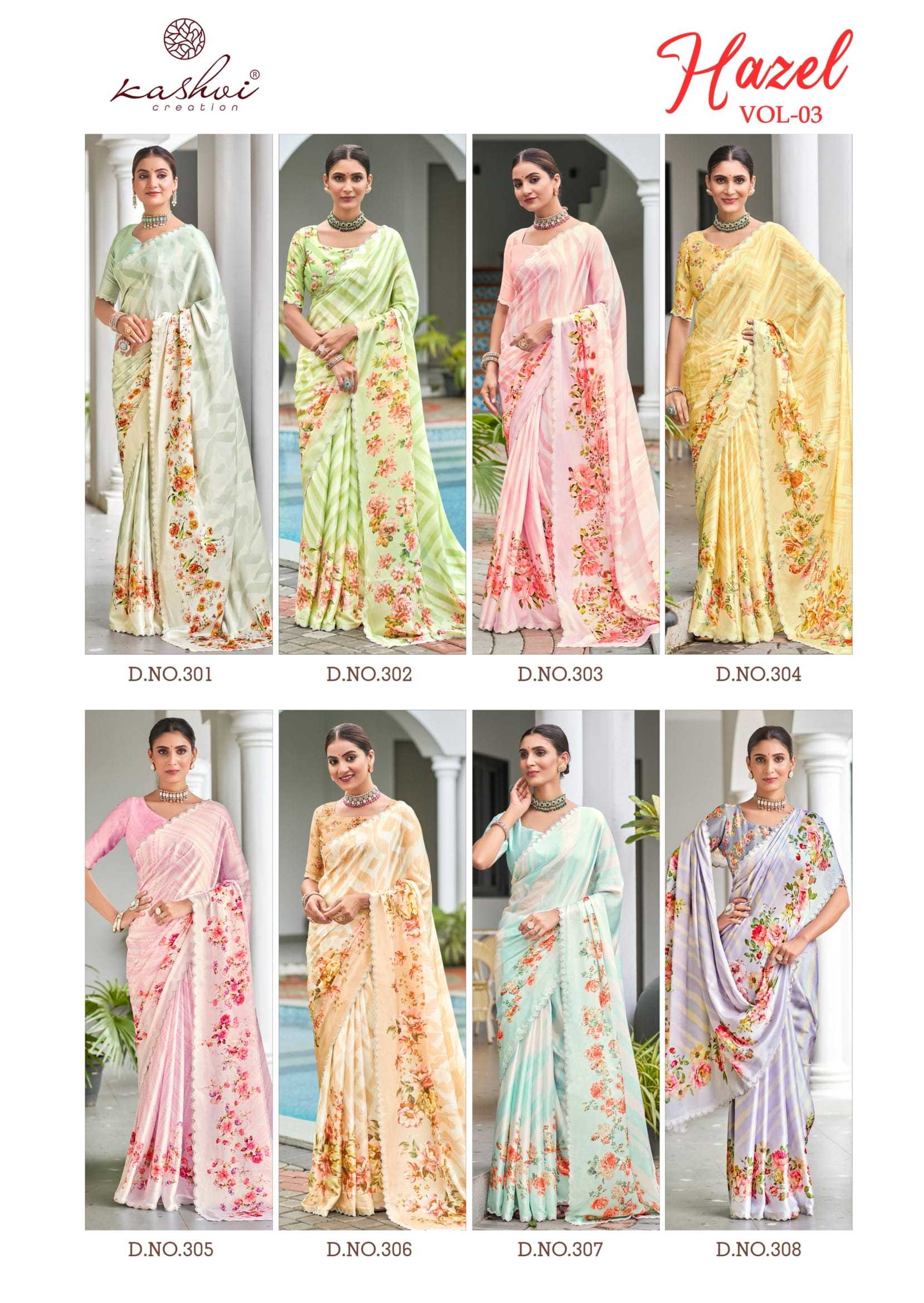 hazel vol 3 by kashvi creation 301-308 classic satin georgette saree