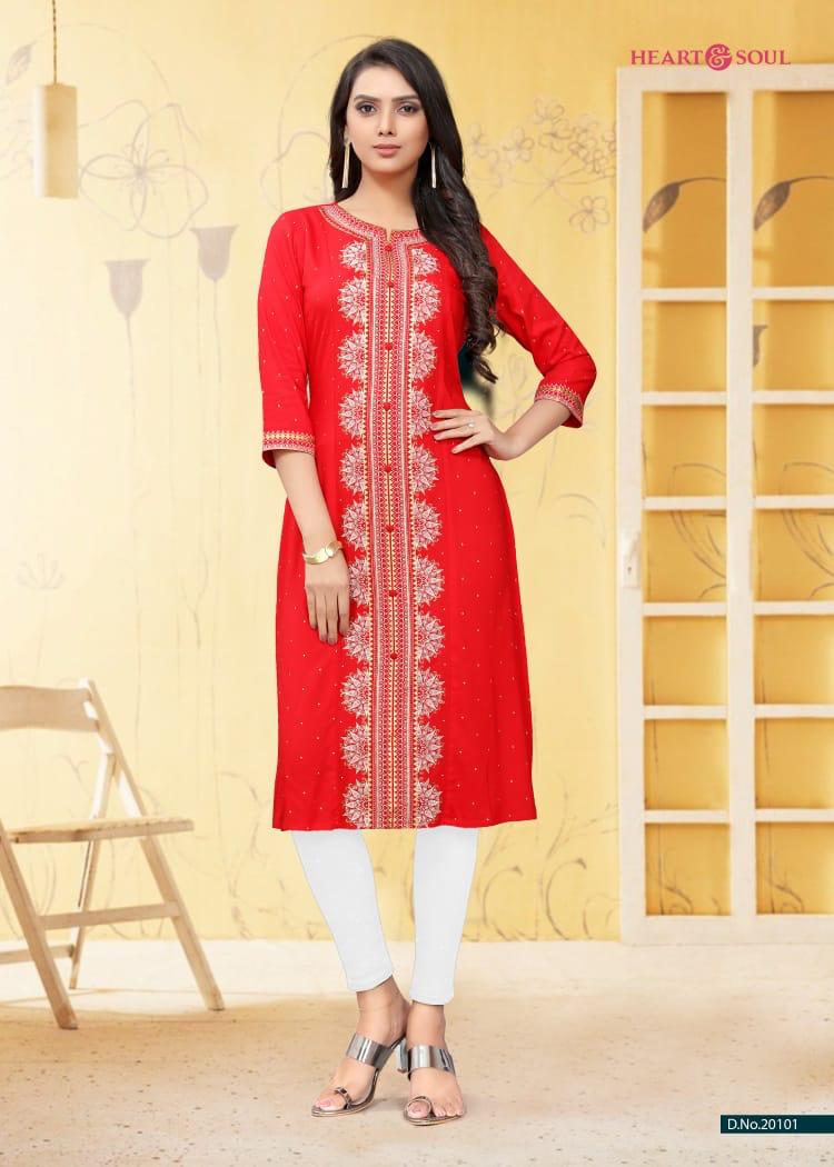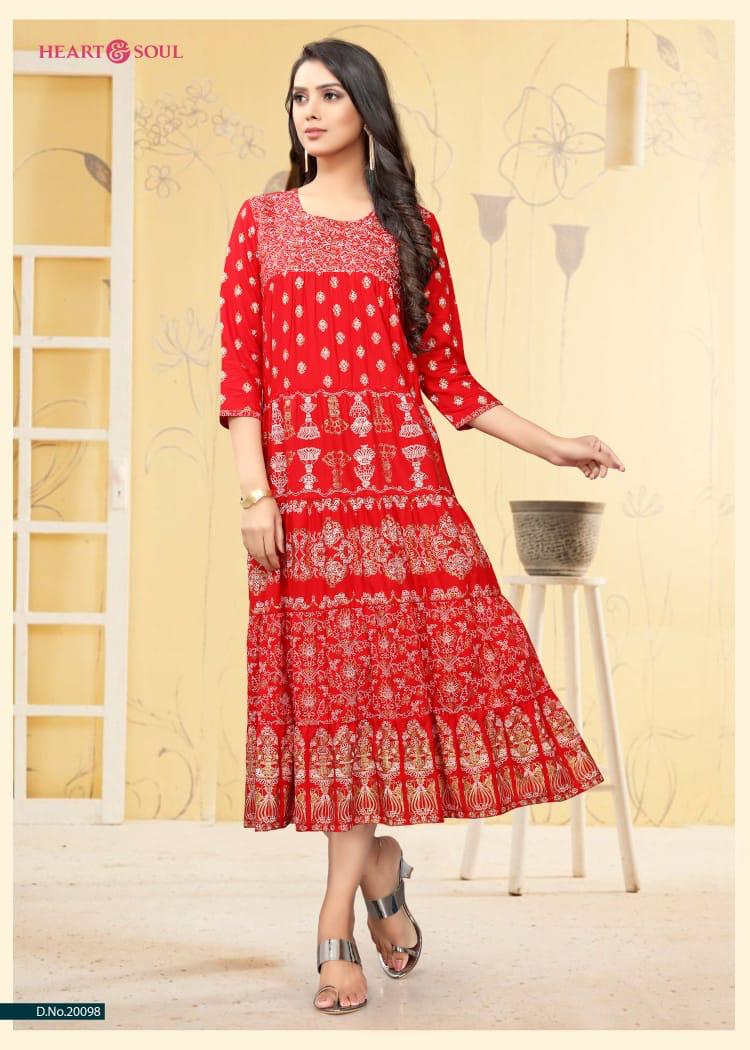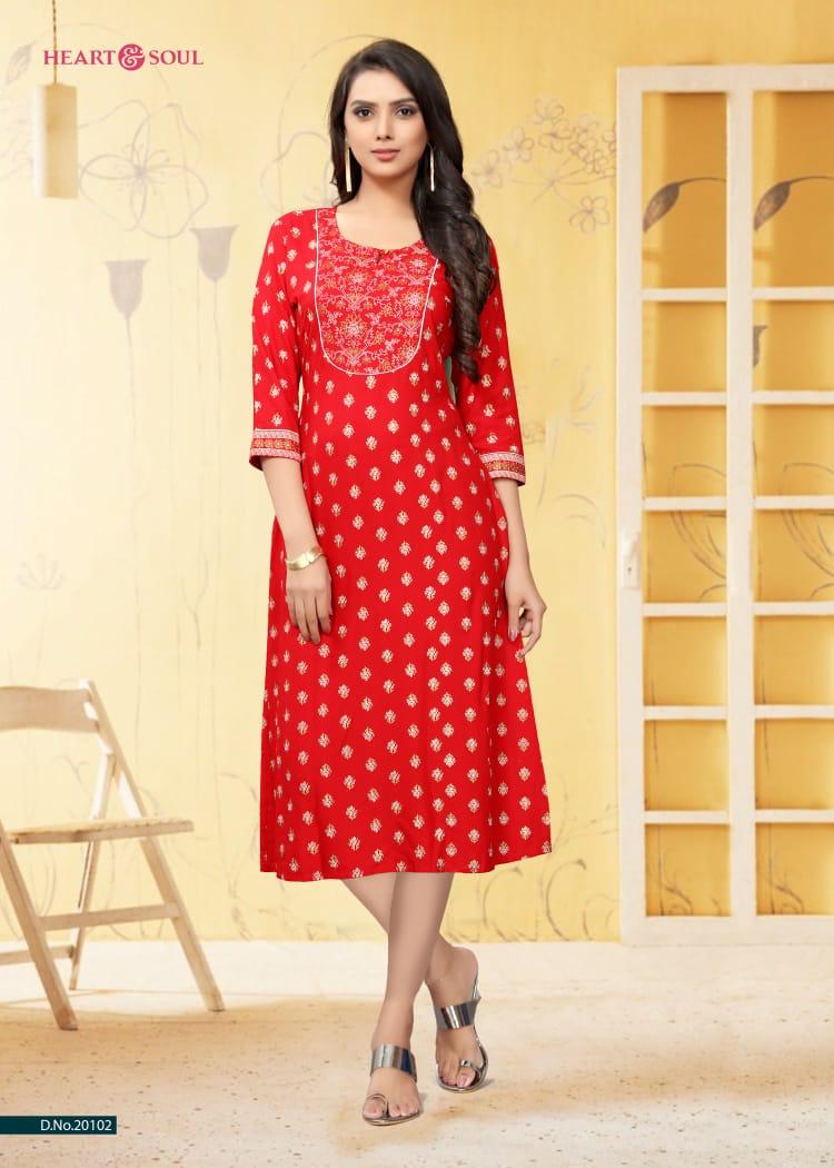 Heart And Soul Present Red Story Vol 15 Viscose Rayon Designer Kurti Wholesaler