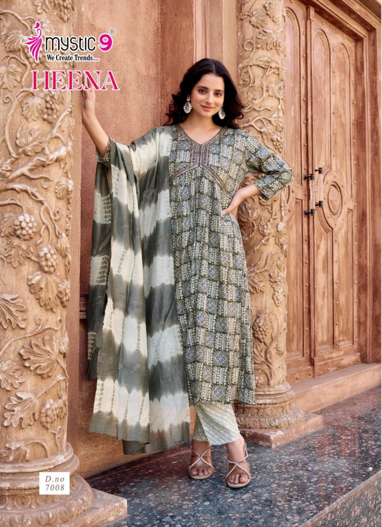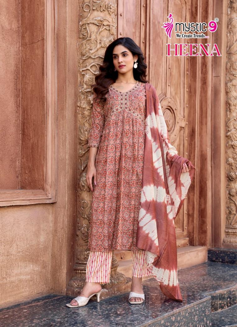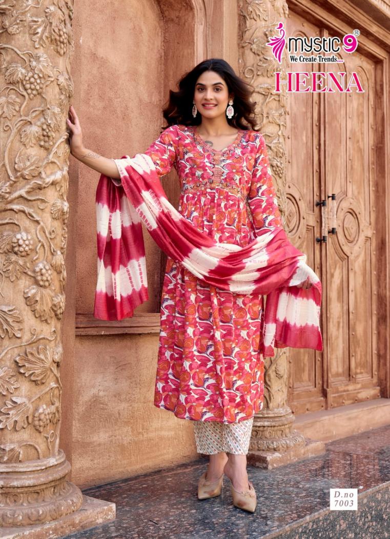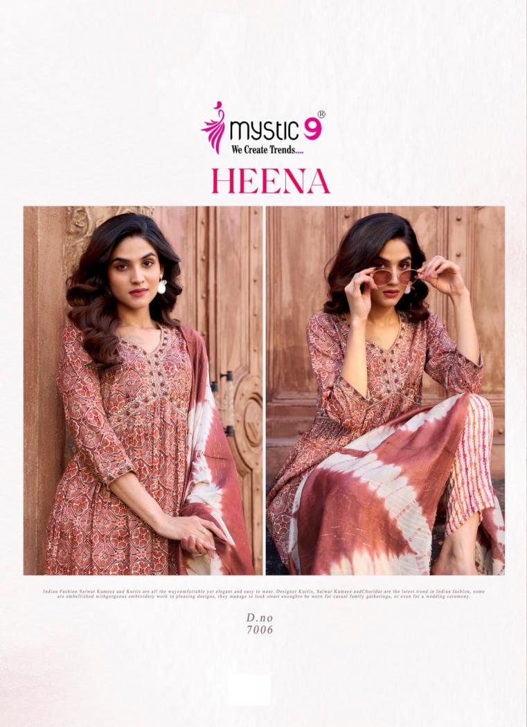 heena vol 7 by mystic9 rayon print readymade classic look suit for womens