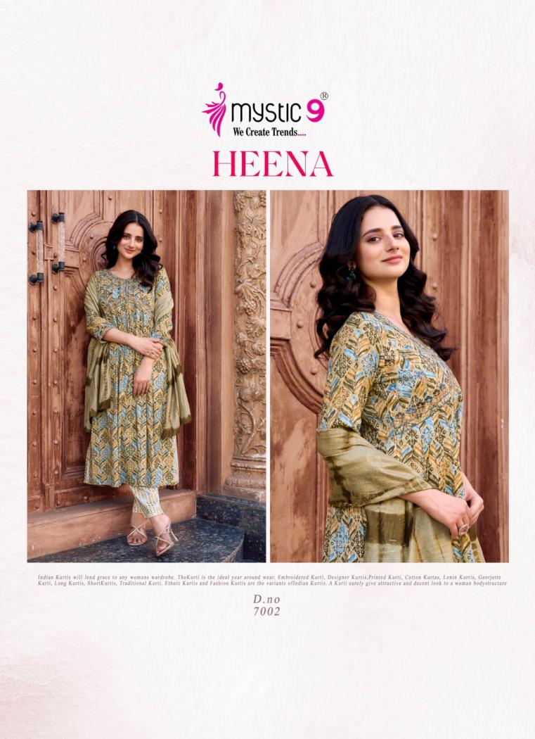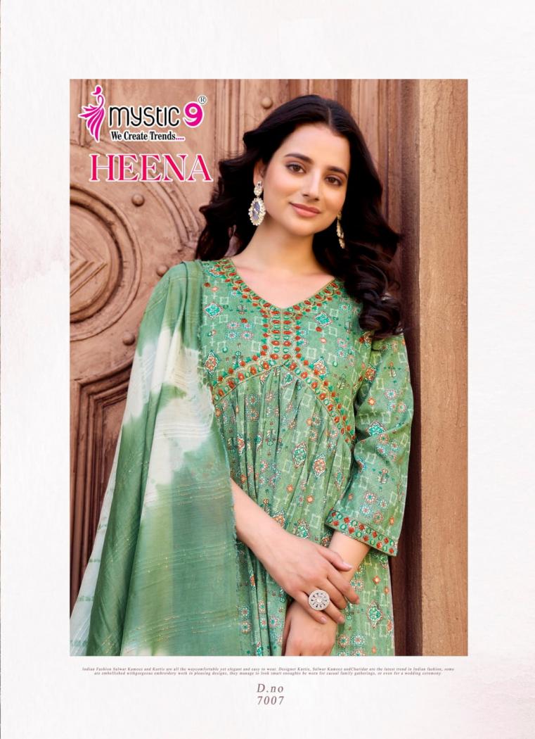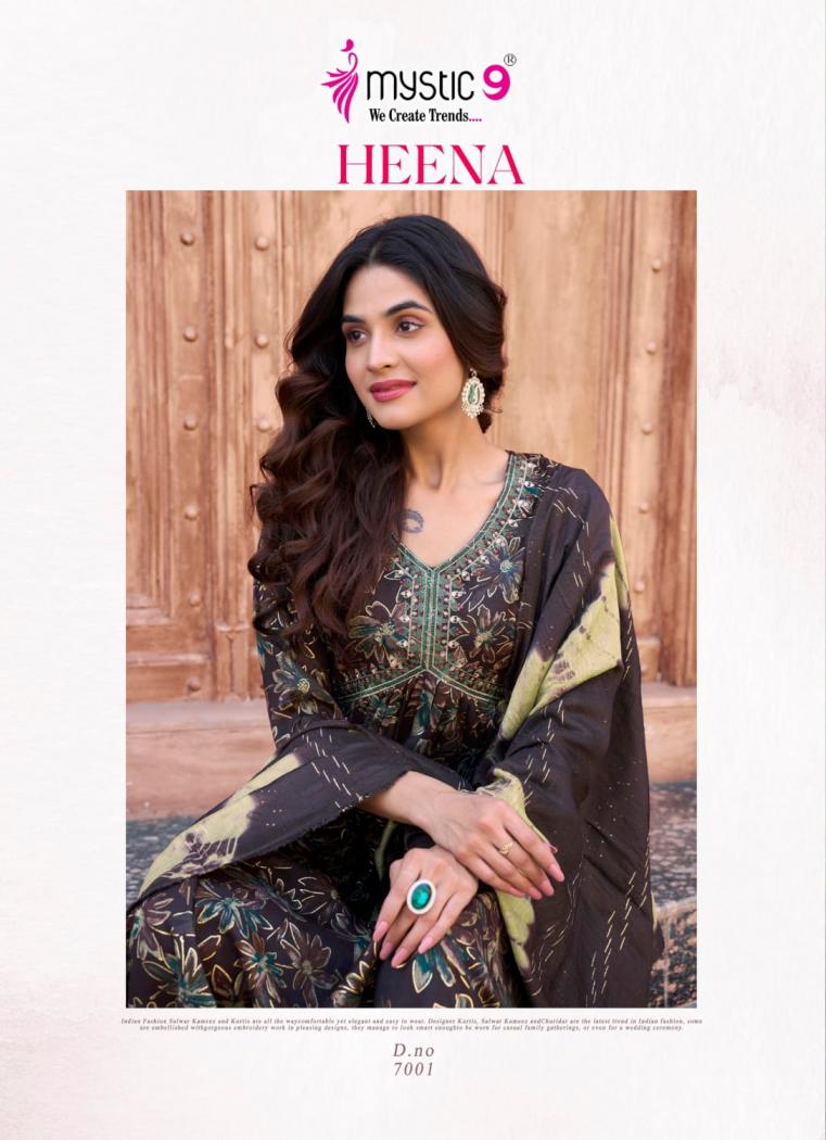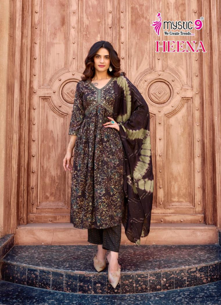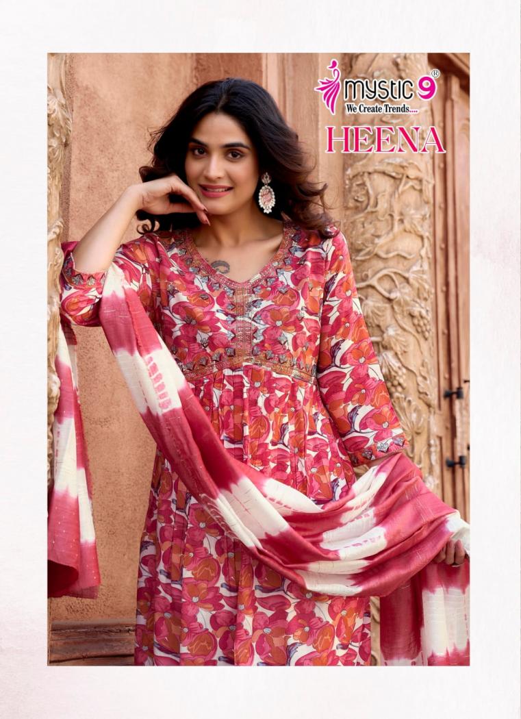 heena vol 7 by mystic9 rayon print readymade classic look suit for womens